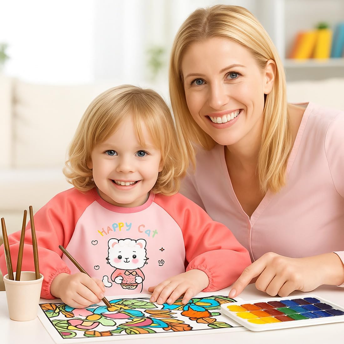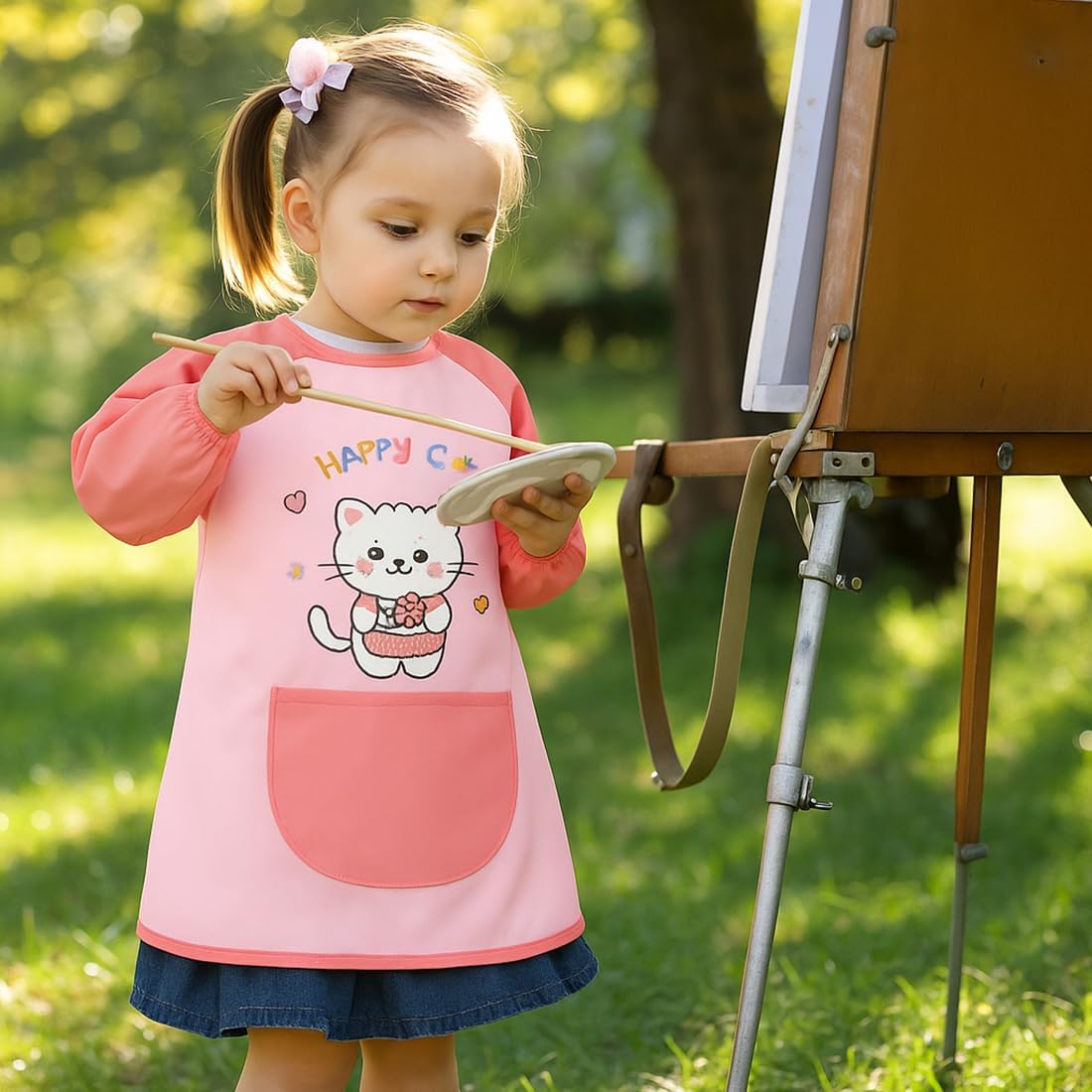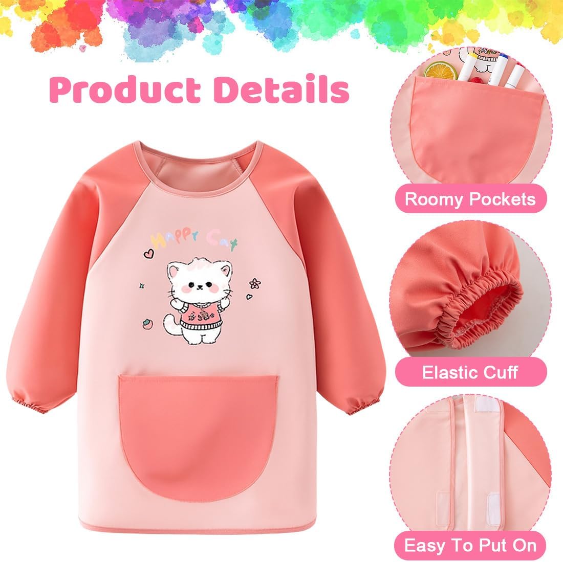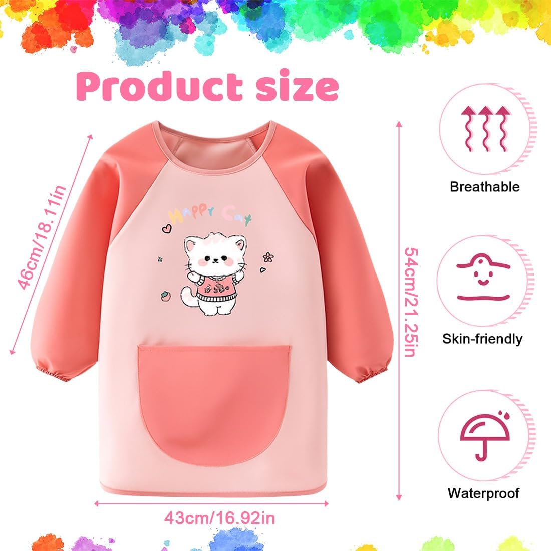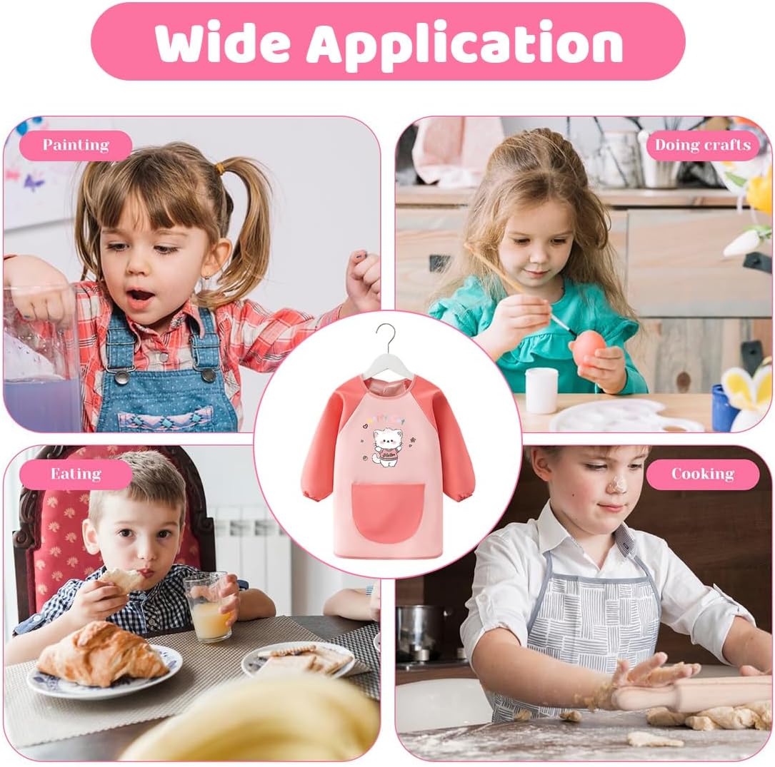 Materiale: In Poliestere, impermeabile, traspirante e delicato sulla pelle, blocca efficacemente pigmenti e acqua, protegge abiti e pelle dei bambini, confortevole da indossare. Design: Grembiule pittura bambini, rosa con motivo cartone animato del Happy Cat divertente, taglia 120 adatta, carina e adatta. Dettagli: Con grande tasca per strumenti di pittura per bambini, maniche elastiche, facile da indossare e togliere, dettagli premurosi. Scenario: Adatto per la pittura, il fai-da-te, la cucina e altre scene, protegge gli abiti dei bambini durante le attività, pratico. Vantaggio: Facile da pulire, macchie rimosse con un tocco di panno, durevole, un buon aiuto per fai-da-te bambino e pittura, anche da regalo.