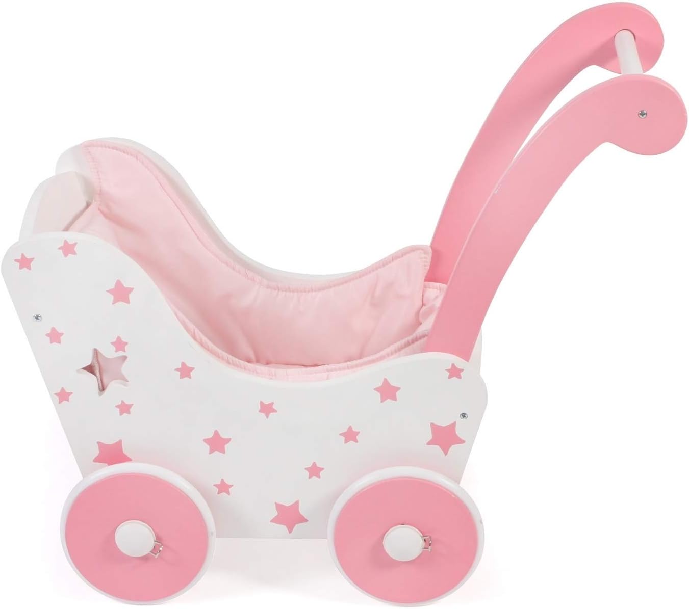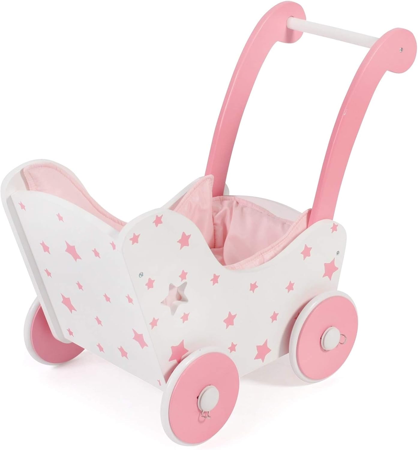 Carrozzina per bambole in legno robusta e antiribaltamento – accompagna il bambino a primi passi Carrozzina in legno di alta qualità con rivestimento in tessuto Pneumatici in gomma morbida su assi in acciaio Adatto per bambole fino a 54 cm Altezza del cursore: 43 cm, dimensioni: 55 x 31 x 45 cm, peso: 3,8 kg
