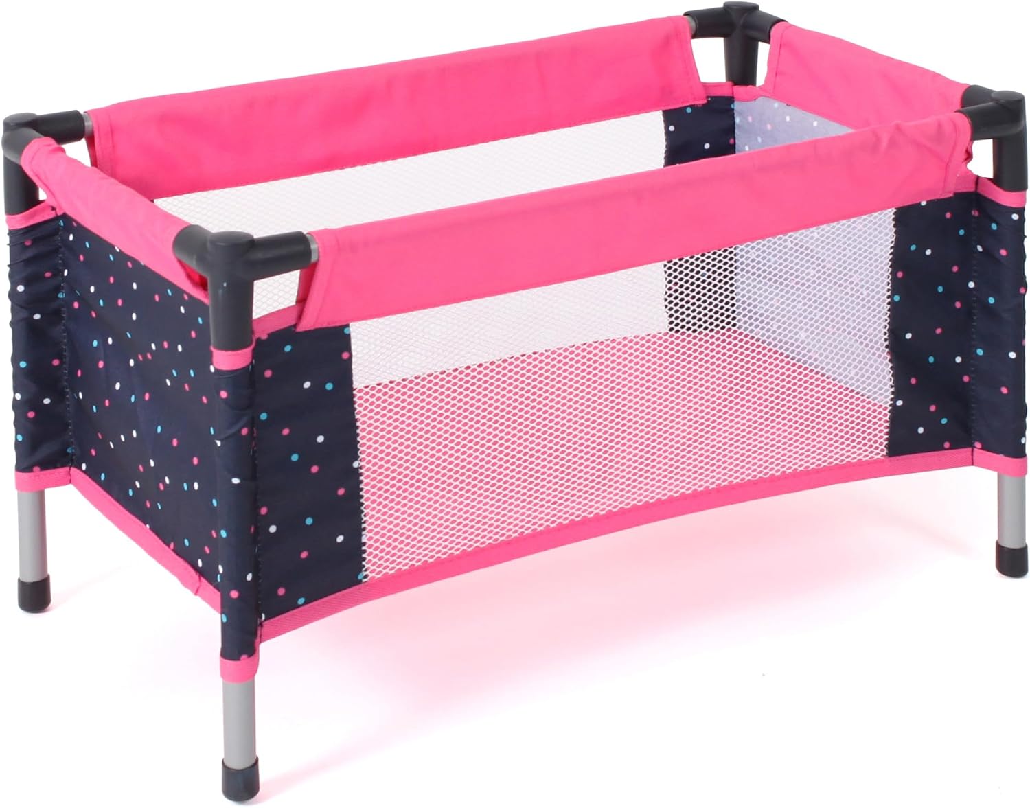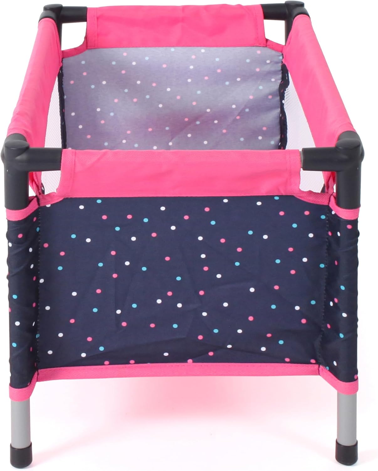 Lettino da viaggio per bambole con borsa per il trasporto in tessuto Letto per bambole compatto e facile da piegare Adatto per bambole fino a 50 cm Dimensioni articolo: ca. 54 x 31 x 32 cm - Peso: 1,2 kg Bellissimo letto per bambole dal moderno design a pois