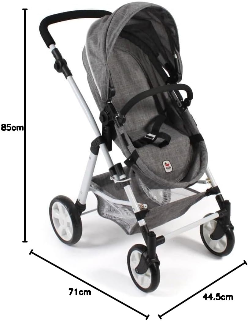 Carrozzina per bambole combinata con molte pratiche funzioni e telaio elegante La maniglia è regolabile in altezza da 45 a 84 cm e si adatta così all'altezza del bambino Il passeggino sportivo è dotato di una cintura di sicurezza a 3 punti e può essere utilizzato sia in direzione di marcia che di fronte alla mamma delle bambole Il seggiolino sportivo ha una staffa di sicurezza e può essere trasformato con pochi gesti in vasca da bagno con superficie piana. La copertura della navicella funge anche da copertura antivento per il seggiolino sportivo Adatto per bambole fino a 50 cm. Dimensioni: 71 x 44,5 x 85 cm, dimensioni da chiuso: 67 x 44,5 x 25 cm, peso: 4,2 kg