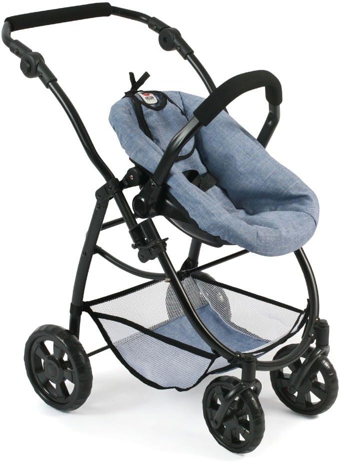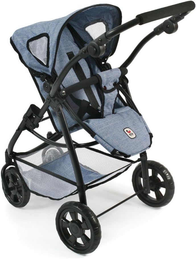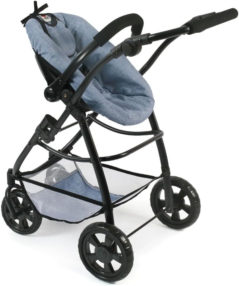Fantastica carrozzina per bambole con navicella, carrozzina sportiva e seggiolino per auto Il passeggino sportivo è dotato di una cintura di sicurezza a 3 punti e può essere utilizzato sia in direzione di marcia che di fronte alla mamma delle bambole La coperta antivento della navicella funge anche da coprigambe per il seggiolino sportivo Maniglione regolabile in altezza da 55 a 82 cm Adatto per bambole fino a 52 cm; dimensioni dell'articolo: 67 x 43 x 77 cm; peso: 6,2 kg