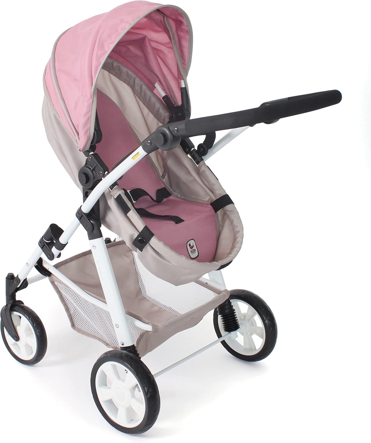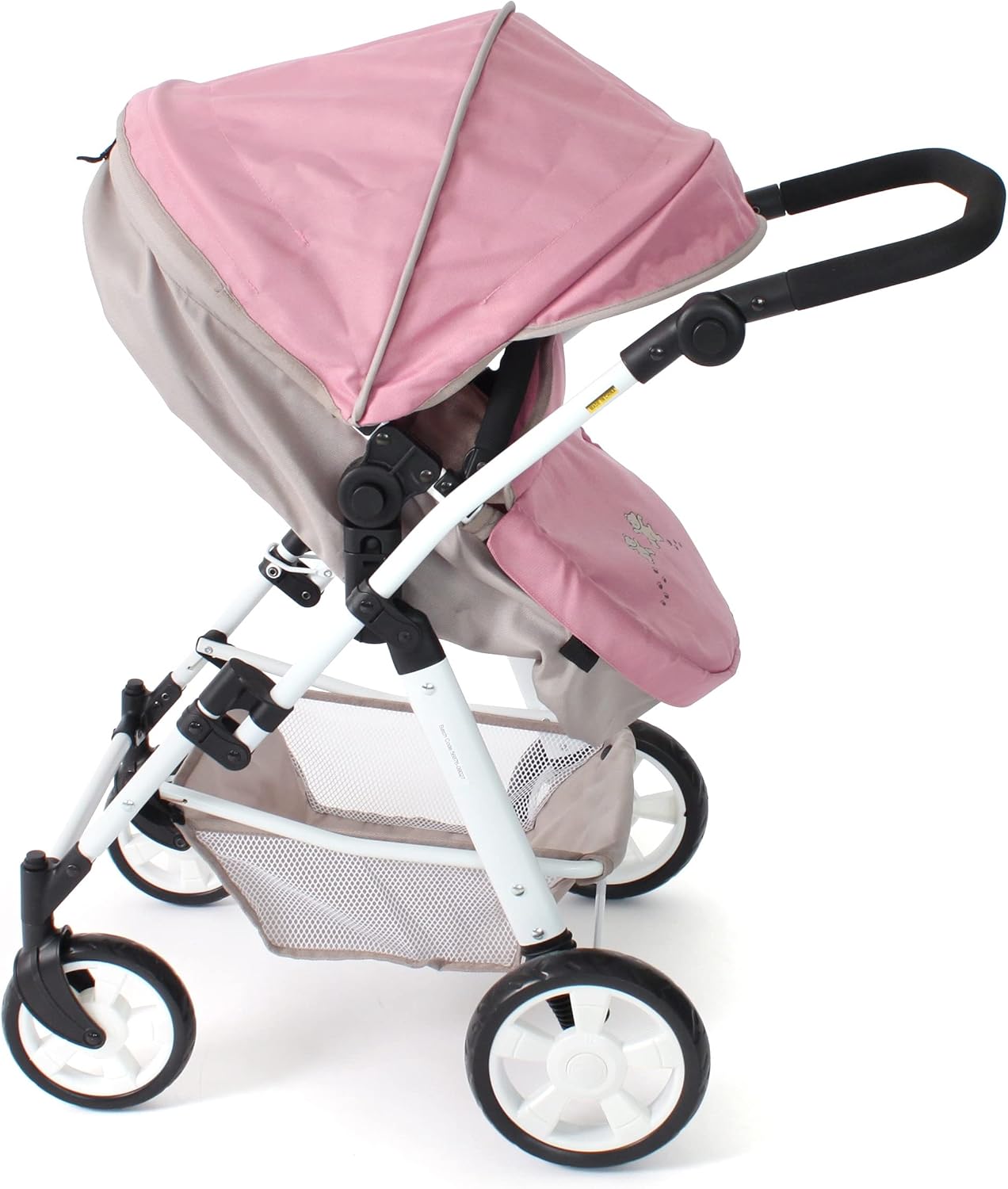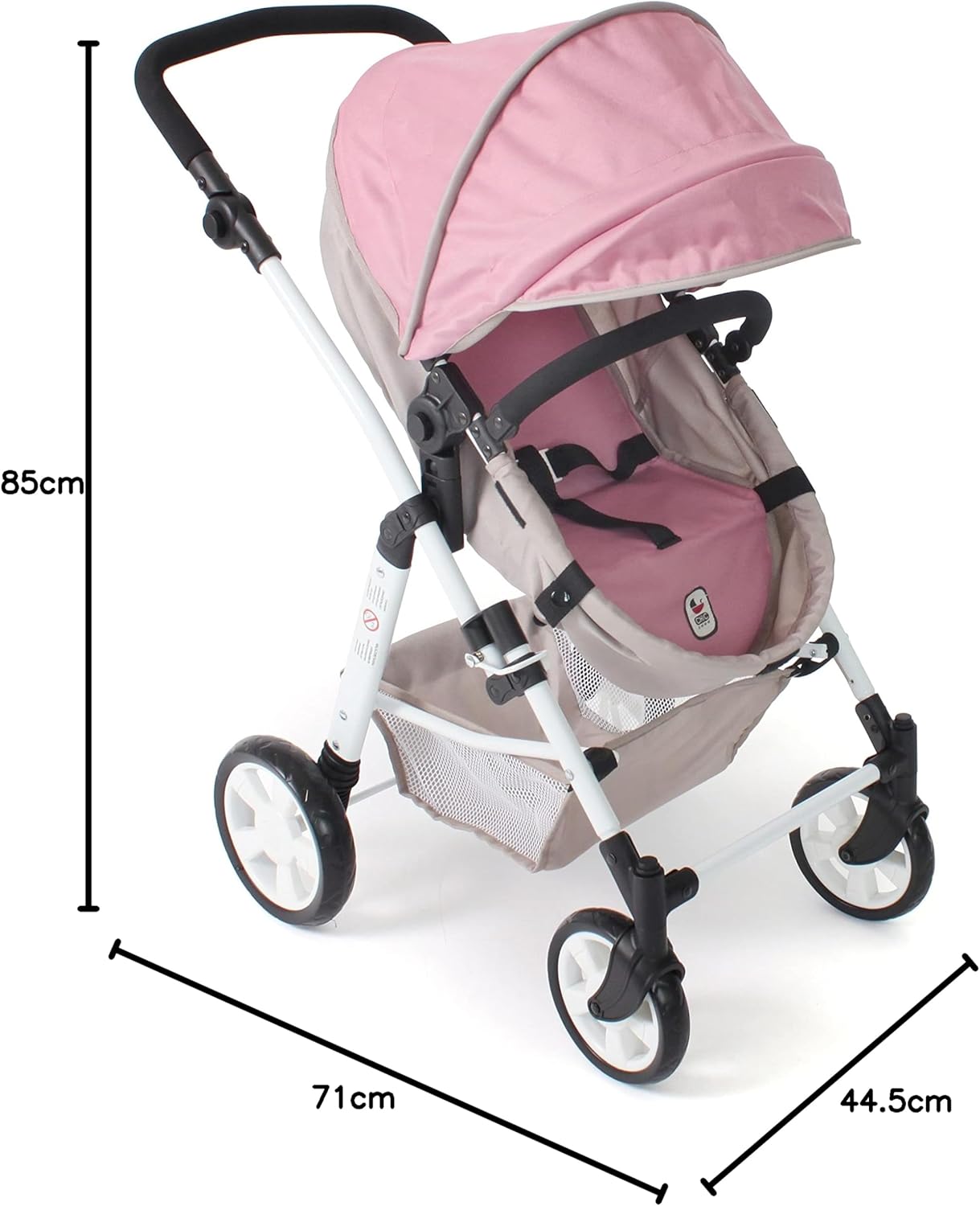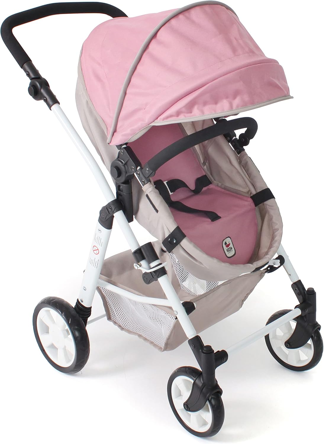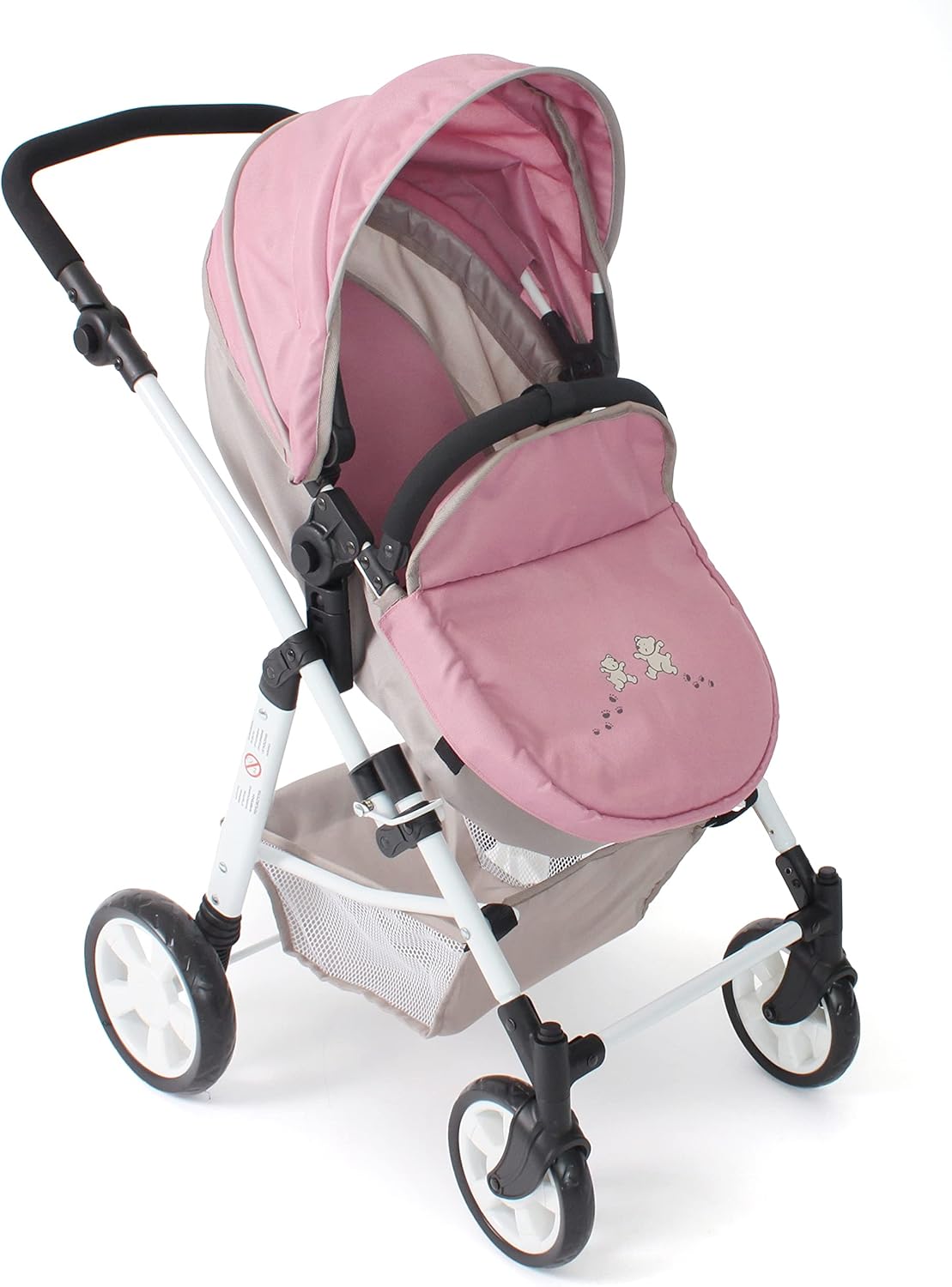 Bayer Chic 2000 - Passeggino per bambole Nele, passeggino combinato 2 in 1 per bambini dai 4 agli 8 anni, orsetto, rosa, 50 cm