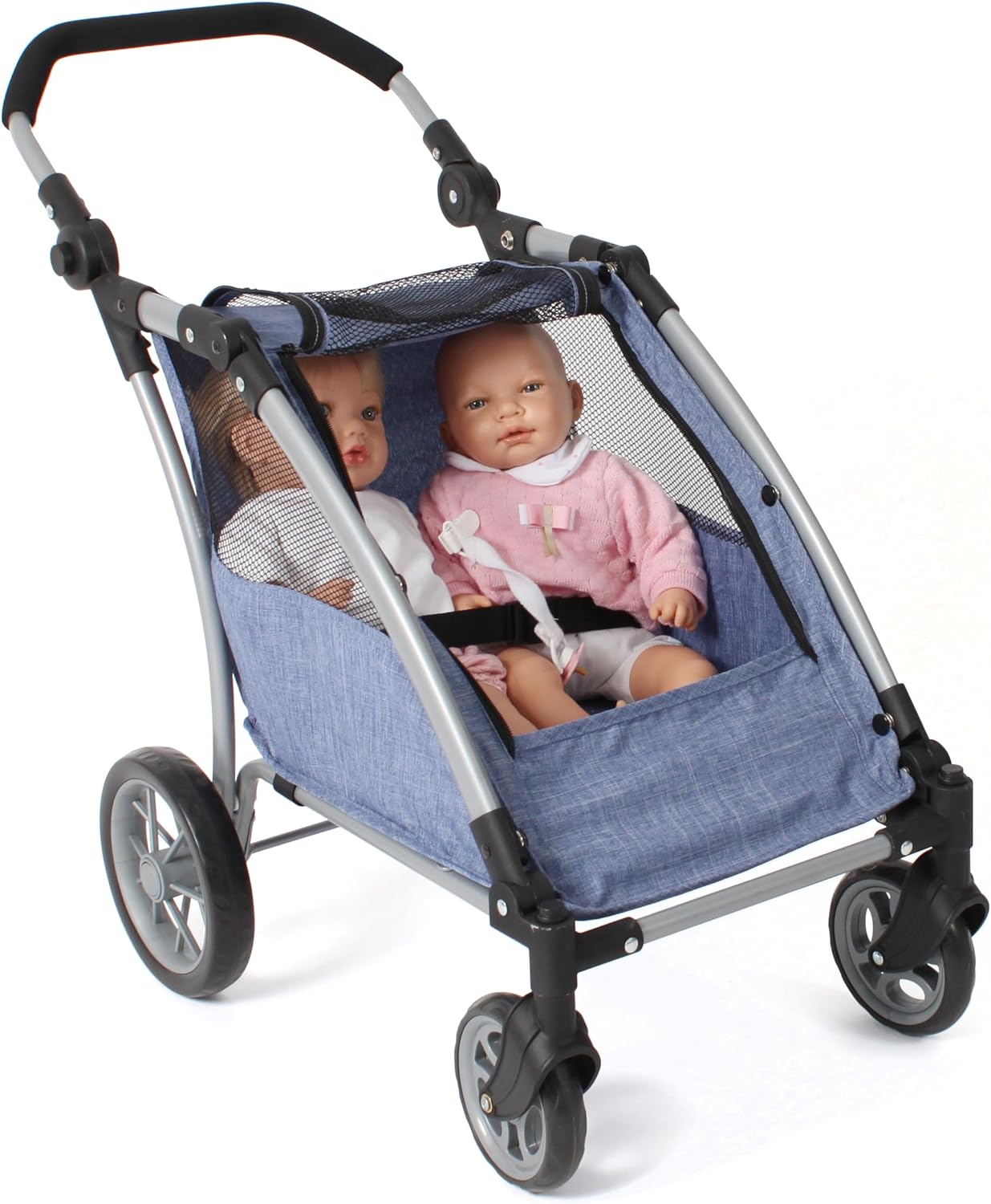 Divertimento senza limiti: il moderno passeggino per bambole combina un design elegante con un'elevata funzionalità e garantisce un sacco di divertimento Cresce con il bambino: la maniglia regolabile in altezza (33-71 cm) si adatta perfettamente alle dimensioni del tuo bambino, ideale per bambini dai 3 anni in su. Design moderno e funzionale: il design elegante e le ruote anteriori girevoli garantiscono un look realistico e una facile manovrabilità, sia all'interno che all'esterno. Il trailer Roadster può ospitare due bambole fino a una dimensione di 46 cm, ideale per giochi creativi e avventure. Azienda familiare in Francia: Bayer Chic 2000 è sinonimo di prodotti durevoli e di alta qualità che entusiasmano genitori e bambini da anni.