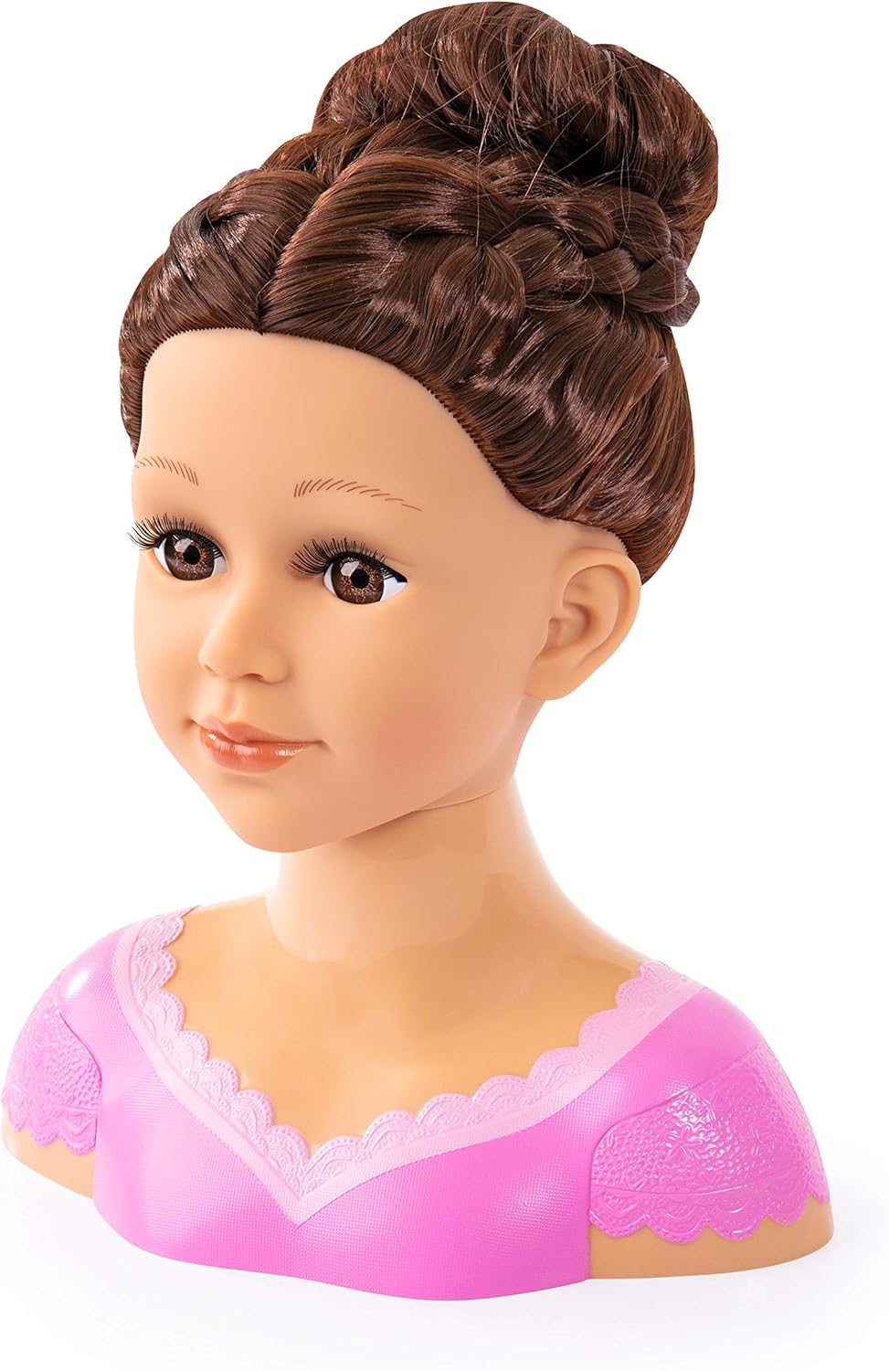 Testa da trucco per bambola Charlene Super Model (ca. 27 cm) con tanti accessori Testa da parrucchiere per bambini con ciglia extra lunghe e occhi grandi Testa da parrucchiere con lunghi capelli castani per acconciare e decorare Testa di bambola con tanti accessori (fermagli per capelli, bigodini, ecc.) Bambola da parrucchiere con trucco colorato per tanto divertimento