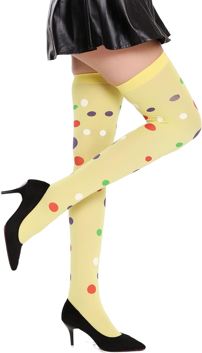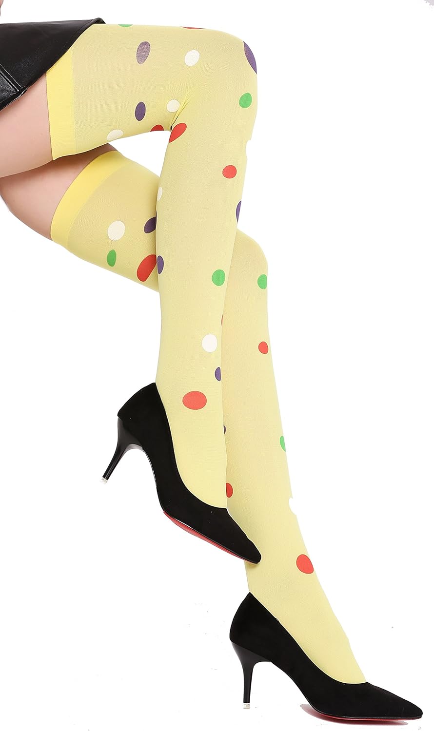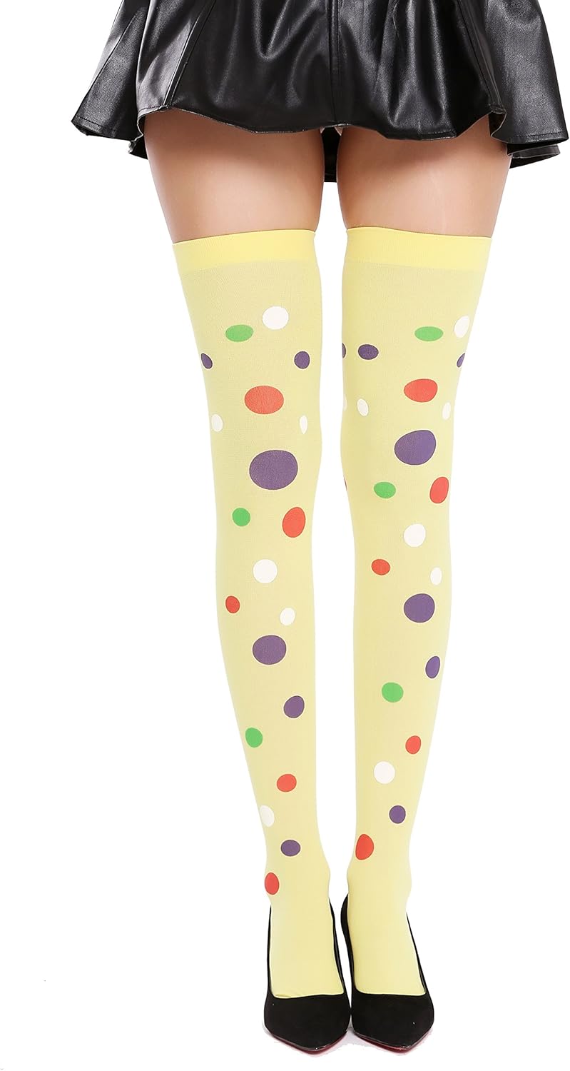 Calze autoreggenti da donna, stile clown, con colorati e grossi pois- non solo per party, Halloween e carnevale. Taglia unica (da S a XL). Nuova e con imballo originale. Marca: DRESS ME UP