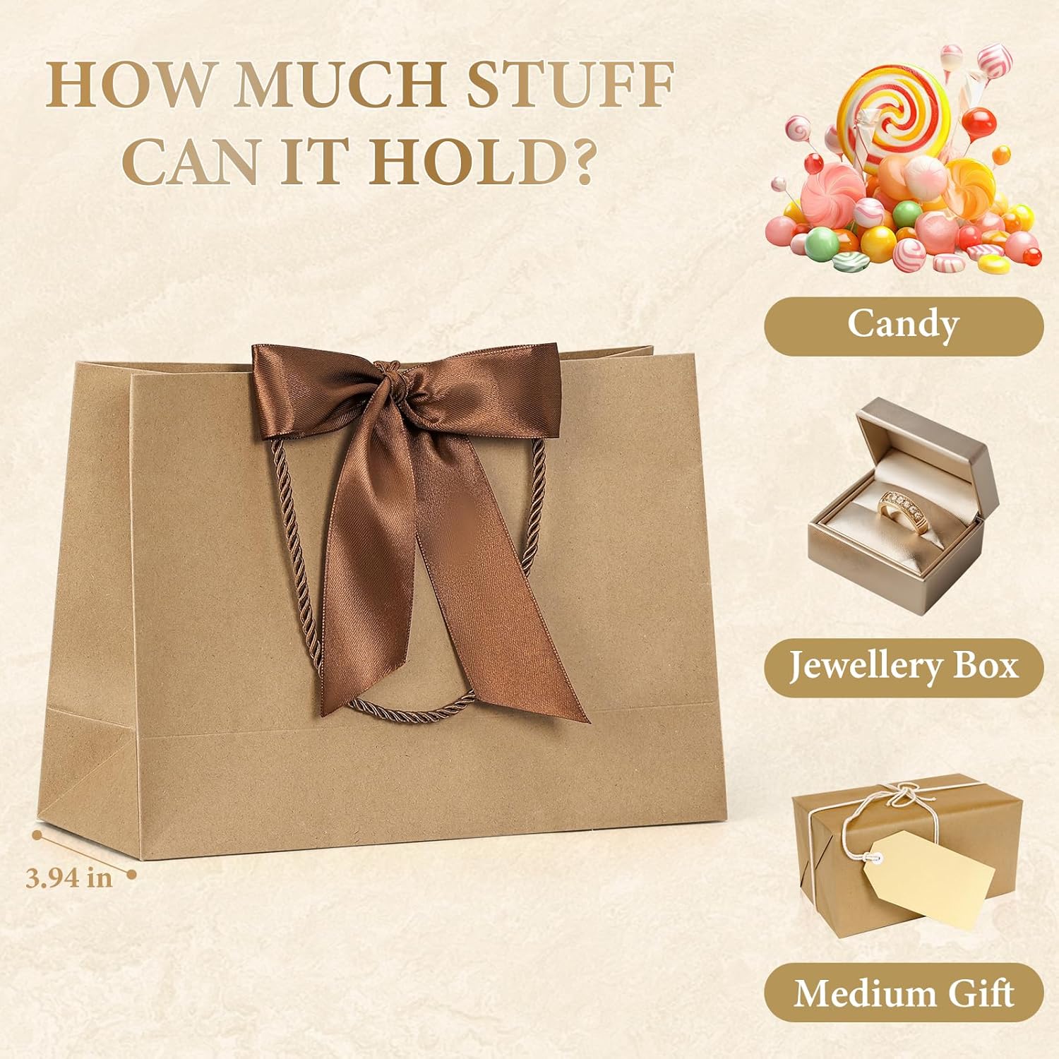 La dimensione della borsa regalo BBLIKE è 28 cm (L) x 20 cm (L) x 10 cm (A), colore: marrone, perfetto per regali di medie dimensioni. Riceverai 8 delicati sacchetti regalo. Inoltre ci sono 10 veline per decorare il tuo regalo e 8 biglietti per scrivere i tuoi auguri alle tue amate famiglie o amici. [🌟Qualità perfetta] I sacchetti regalo realizzati in materiale di alta qualità sono robusti e riciclabili. I regali di nozze sono abbastanza spessi da contenere bene e non sono facili da rompere, e la maniglia e la base robuste ne facilitano il trasporto. La superficie della confezione regalo è impermeabile e antipolvere. [🎁𝑷𝒆𝒓𝒇𝒆𝒌𝒕𝒆 𝑸𝒖𝒂𝒍𝒊𝒕ä𝒕] Il fondo di ogni sacchetto regalo di carta è rinforzato per migliorarne la durata. La struttura super stabile dei sacchetti di carta dispone di un fondo di riempimento aggiuntivo, durevole e affidabile. I sacchetti regalo di compleanno per bambini sono facili da riempire, conservare e trasportare e possono essere utilizzati a lungo. [🎁𝑺𝒄𝒉𝒍𝒆𝒊𝒇𝒆 𝑫𝒆𝒔𝒊𝒈𝒏] I fiocchi con sacchetti regalo di Natale non solo aggiungono un'atmosfera elegante, ma arricchiscono anche il tuo regalo e rendono il tuo regalo più lussuoso e speciale. Con il look chic e la qualità brillante, i sacchetti regalo di carta saranno apprezzati dal destinatario. La borsa regalo creerà dolci ricordi per te e il destinatario. I nostri sacchetti regalo di compleanno sono perfetti per confezionare regali di dimensioni standard o di piccole e medie dimensioni. I nostri sacchetti regalo sono perfetti per feste, compleanni, Natale, vacanze, festa del papà, festa della mamma, San Valentino, regali di ringraziamento, affari, addio al nubilato o qualsiasi occasione. [Alta qualità]: questi sacchetti regalo di nozze sono perfetti per i dilettanti e gli appassionati di fai da te. Possono essere colorati, stampati e decorati secondo le proprie idee. Personalizza la borsa per farla risaltare. Stampa il logo della tua azienda e usalo come sacchetto regalo di compleanno per la vendita al dettaglio. [💖️𝑮𝒆𝒔𝒄𝒉𝒆𝒏𝒌𝒆 𝒔𝒄𝒉ü𝒕𝒛𝒆𝒏]: i sacchetti di carta con manici possono proteggere efficacemente i regali da danni, graffi o contaminazione, garantendo che i regali vengano presentati al destinatario nelle migliori condizioni.