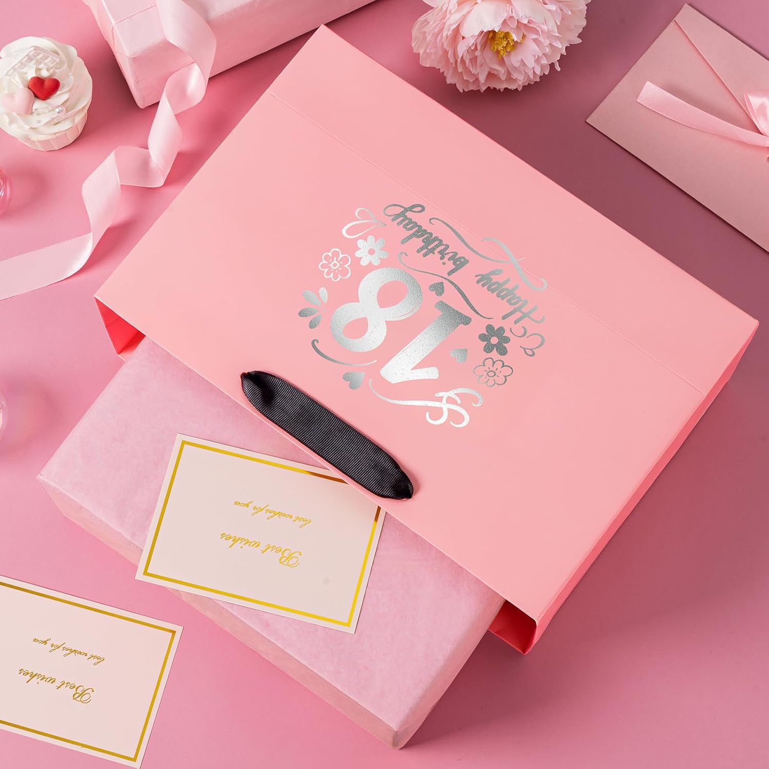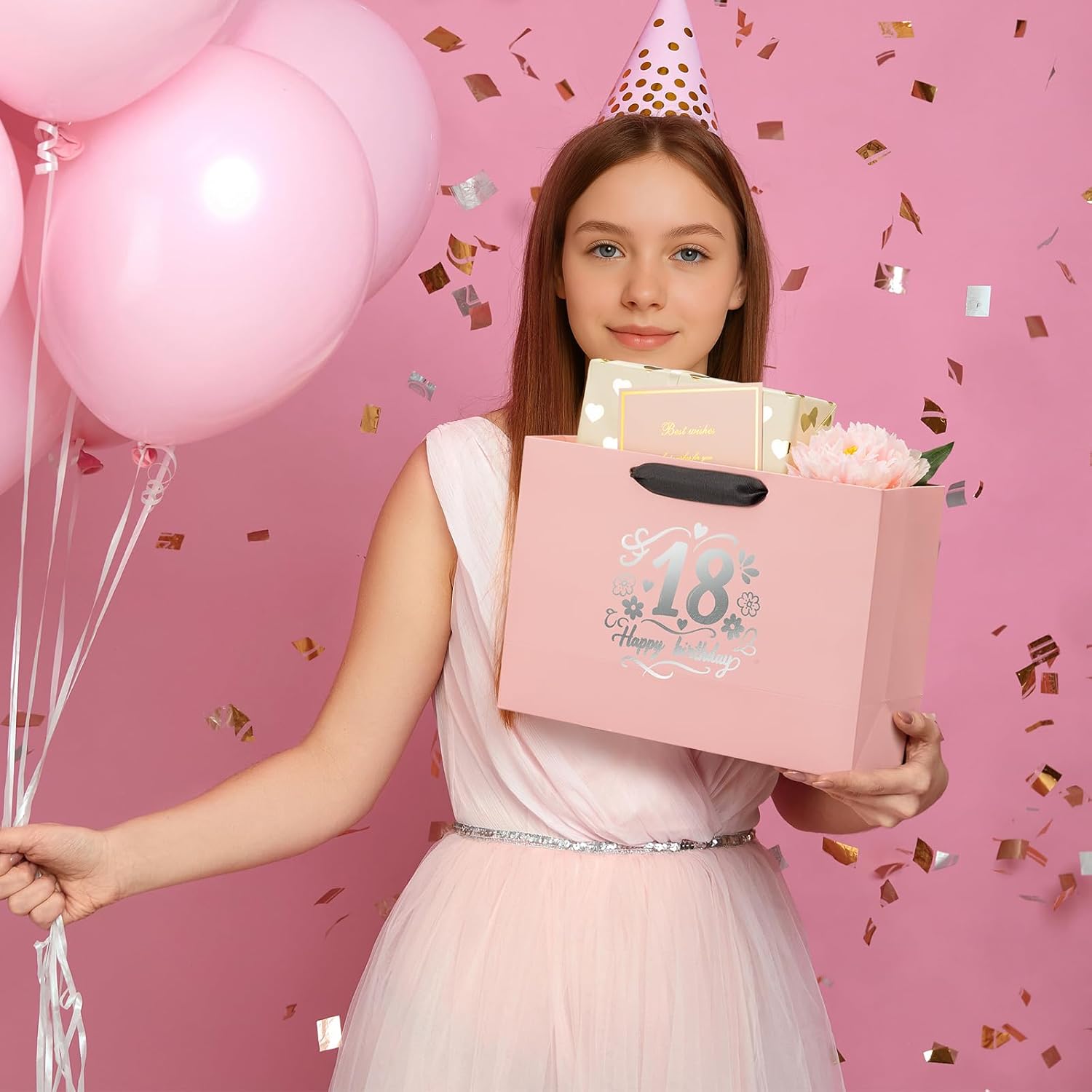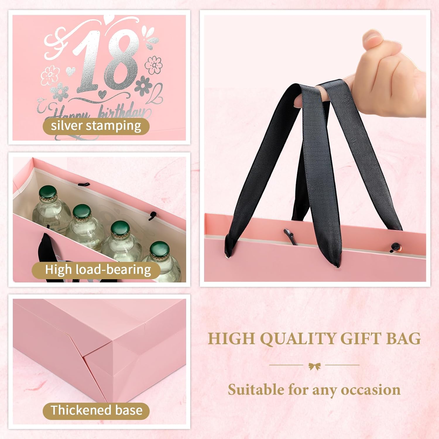[Bellissimo set di sacchetti regalo] Riceverai un sacchetto regalo bblike di alta qualità per ragazze con carta velina. Il sacchetto regalo rosa misura 32 x 22 x 11 cm ed è adatto per regali di piccole e medie dimensioni. Ogni set di sacchetti regalo viene fornito con un biglietto su cui puoi scrivere i tuoi migliori auguri alla tua famiglia e ai tuoi amici. [Design elegante] La combinazione di colori rosa e nero aggiunge un tocco artistico ai sacchetti regalo rosa. La carta rosa Sydney può essere utilizzata per decorare i regali, conferendo al set di sacchetti regalo un aspetto sofisticato ed esclusivo. [Ecologico] La confezione regalo è realizzata in carta ecologica e biodegradabile con una trama spessa. Il fondo e i manici dei sacchetti regalo sono rinforzati per una maggiore durata e possono essere facilmente piegati per essere riutilizzati. Può essere utilizzato sia come accessorio decorativo che pratico per la vita quotidiana. [Proteggi i regali] I sacchetti regalo di compleanno con manici proteggono i sacchetti della festa di compleanno da danni, graffi o sporco. La stabile confezione regalo di compleanno garantisce che il regalo raggiunga il destinatario nelle migliori condizioni. [Per ogni occasione] I nostri sacchetti regalo di compleanno sono perfetti per 18 anni, 18 anni, San Valentino, celebrazioni, regali di ringraziamento, addio al nubilato o qualsiasi occasione.