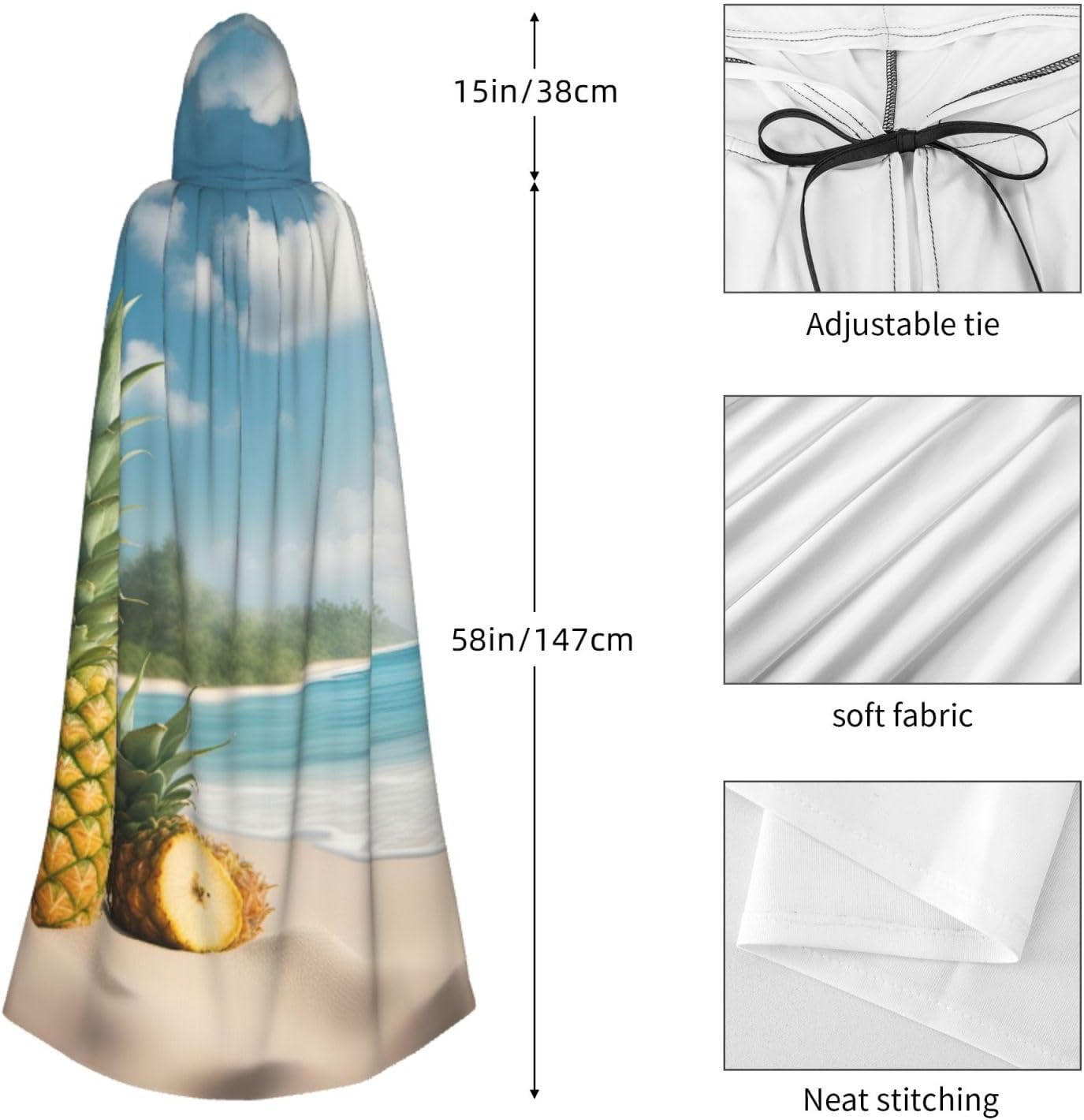 Realizzato in poliestere, questo mantello da spiaggia con due ananas mare stampa è comodo da indossare e senza prurito. Il suo design a tutta lunghezza lo rende una taglia A adatta a tutti per adulti e ragazzi. Distinguiti tra la folla ad Halloween, eventi di gioco di ruolo in costume, feste a tema, o in qualsiasi incontro o carnevale. Con design senza cerniera e colletto annodato, indossabilità è un gioco da ragazzi. Inoltre, è lavabile in lavatrice e facile da mantenere. Abbraccia lo spirito di Halloween con stile con il nostro mantello con cappuccio e fai un aspetto indimenticabile!