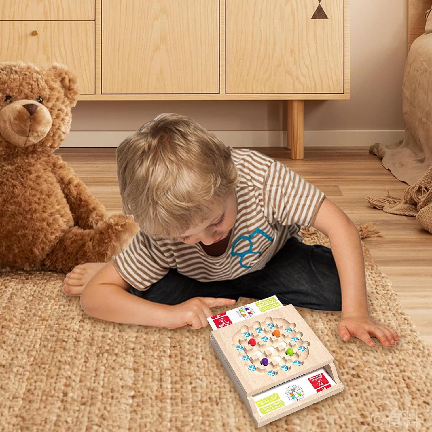 Boosts Logical Thinking: Encourages children to analyze patterns, match colors, and complete visual challenges that stimulate brain development and improve critical thinking through fun and engaging activities Fine Motor Skill Development: Designed to strengthen small hand muscles and enhance hand-eye coordination by allowing kids to grip, sort, and place beads with precision, improving dexterity and focus naturally Aligned Learning: Follows the philosophy of hands-on, self-directed learning, promoting problem-solving and concentration while developing core cognitive and motor skills Perfect Educational Gift: Ideal for early learners, this interactive puzzle game makes a thoughtful gift that combines fun with foundational learning, great for birthdays, classroom rewards, or homeschool supplies Multi-Color Matching Fun: Comes with vibrant, visually appealing beads and pattern cards that challenge children to recognize and recreate color sequences, supporting color identification and memory retention