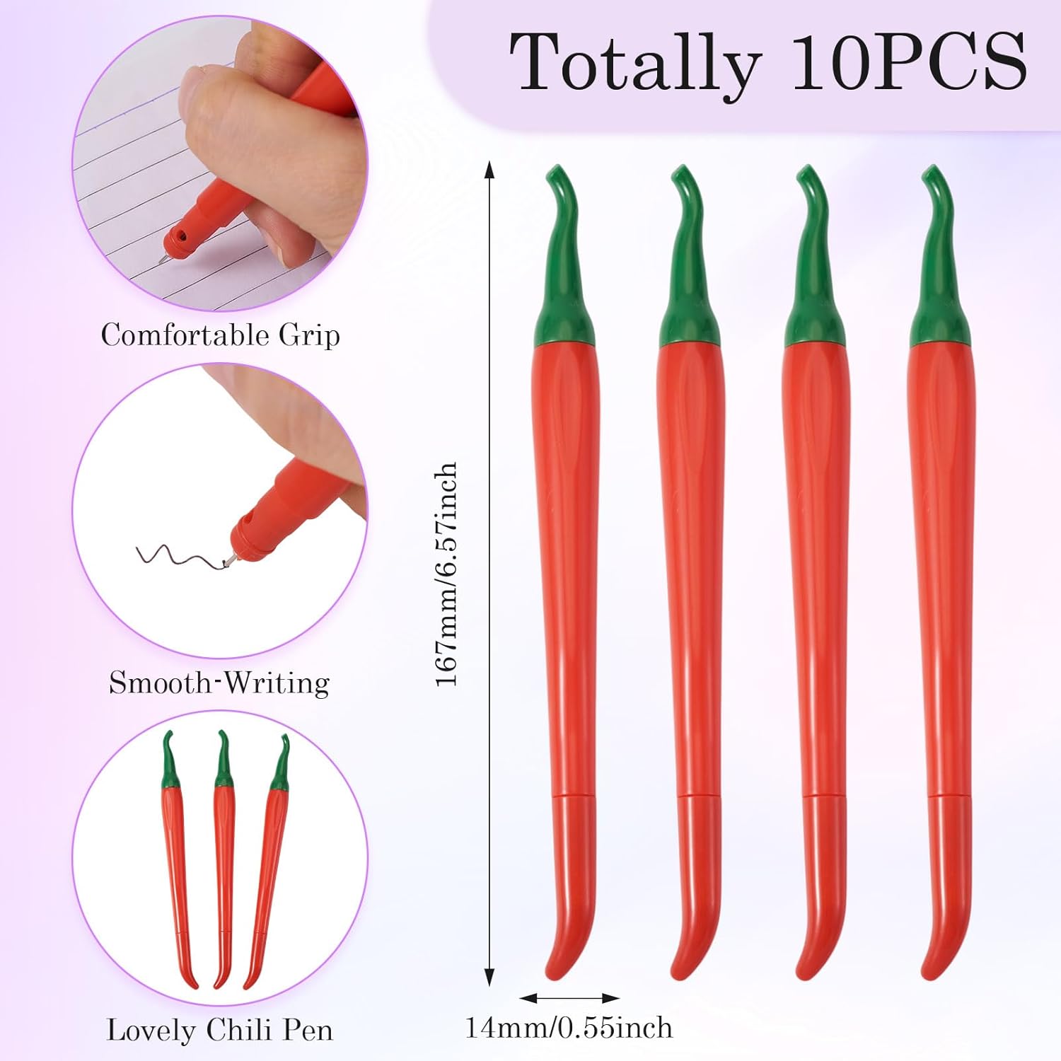 Contenuto della confezione: 10 penne gel a forma di pepe, circa 167 mm di lunghezza, 14 mm di diametro, quantità sufficiente per l'uso quotidiano e la sostituzione Impugnatura comoda: queste penne a forma di peperoncino imitazione hanno un diametro di 14 mm, sono comode da impugnare, le rendono facili da impugnare. Goditi un'esperienza di scrittura confortevole per ore e ore, giorno dopo giorno Design a forma di peperoncino: queste penne da scrittura sono progettate con una forma unica di peperoncino, una perfetta miscela di divertimento e funzionalità, rendendole un pezzo straordinario nella tua collezione di articoli di cancelleria Scrittura fluida: le nostre penne gel a punta fine sono leggere e comode consentono una scrittura fluida, adatte per un uso a lungo termine; l'inchiostro è facile da asciugare, sarai in grado di scrivere rapidamente su qualsiasi carta, non si sbava facilmente per causare macchie Penne affidabili per tutti i giorni: tieni queste penne gel a portata di mano nella borsa, nello zaino e oltre, questi strumenti di scrittura per pulcini sono perfetti per scuola, ufficio e uso familiare o ovunque sia necessario un libro degli ospiti