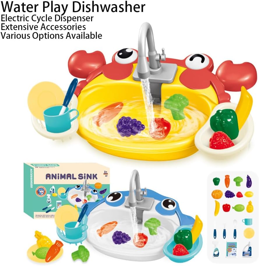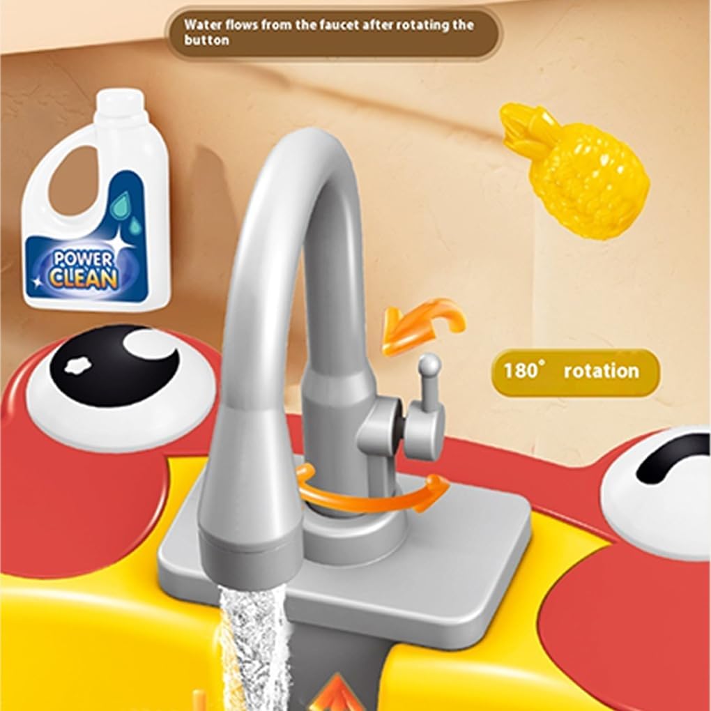 Gioco d'acqua interattivo: i bambini possono divertirsi a giocare con l'acqua che scorre in questo set di giochi con lavello elettrico e acqua Divertimento di ruolo: i bambini possono fingere di lavare i piatti e cucinare in cucina con questo set di giochi da cucina Apprendimento pratico: questo giocattolo per bambini aiuta i bambini a comprendere il concetto di riciclo dell'acqua mentre giocano Scelta regalo: il lavello elettrico a forma di cartone animato è un regalo per bambine e bambini che amano giocare a casa e in cucina Tempo di gioco creativo: lascia che la fantasia del tuo bambino si scateni mentre si diverte per ore con questo set di giochi con lavello da cucina per bambini