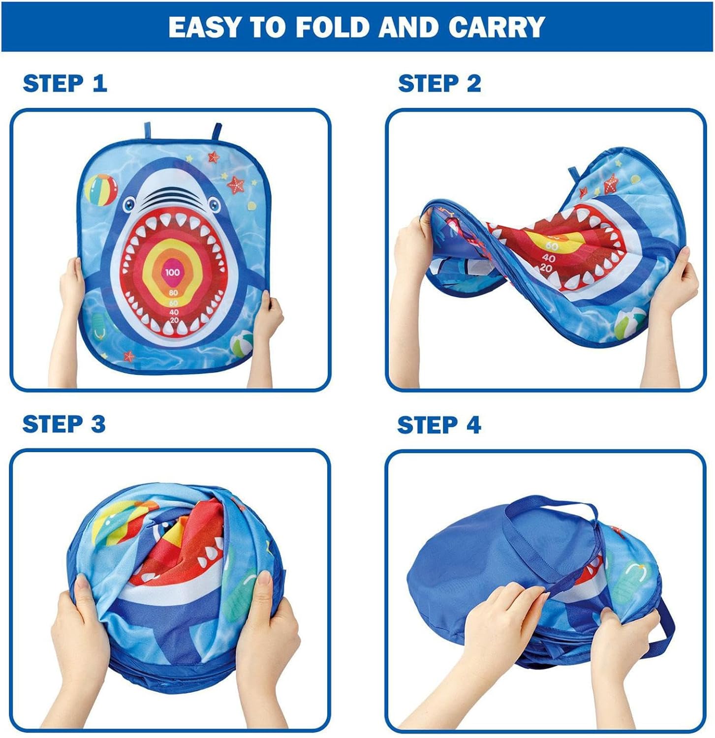 Intrattenimento flessibile: progettato per interni ed esterni, il gioco si adatta a giardino, salotto e camera da letto con facilità di trasporto e pronto all'uso in qualsiasi ambiente competitivo Promozione delle abilità: migliora la coordinazione del corpo attraverso esercizi di lancio mirati, affina la precisione della pista di lancio e affina la percezione spaziale per lo sviluppo completo delle abilità Esperienza di gioco senza preoccupazioni: i morbidi sacchetti antiscivolo garantiscono una presa sicura, mentre il materiale durevole garantisce un uso duraturo, così i bambini di tutte le età godono il gioco in modo sicuro senza rischio di lesioni Dettagli premurosi: perfetti come giochi di festa con manuale illustrato, accessori raffinati e sacchetti di sabbia sufficienti per composizioni di gioco variabili, che garantiscono divertimento cooperativo con gli amici. Esplorazione promozionale: Progettato per i bambini 3-5 anni. Il design colorato dello squalo stimola la curiosità e rimane sempre attraente grazie all'aspetto accattivante.