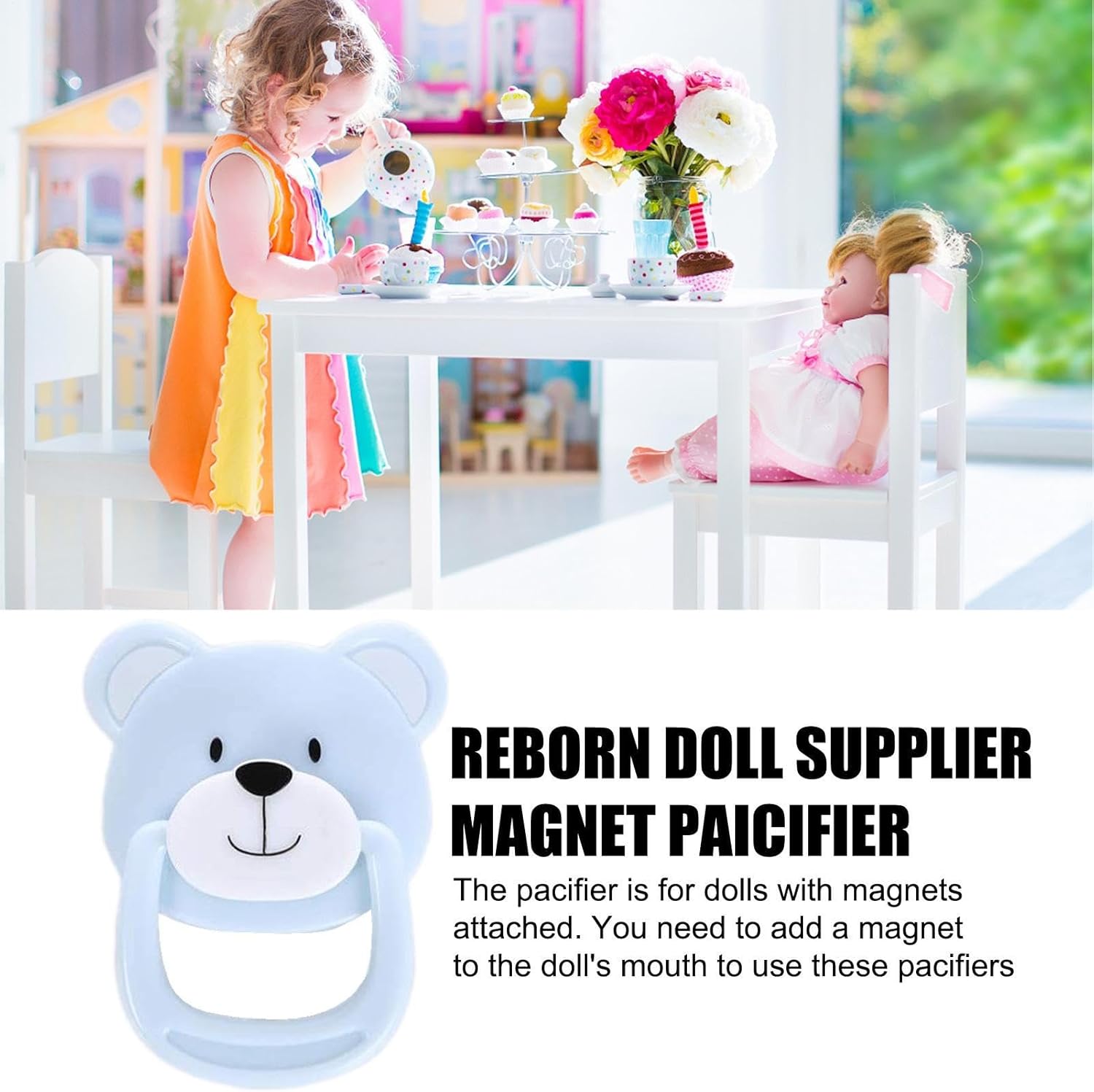 【Magnetic Design】Magnetic Pacifier is applied for the reborn baby dolls with magnet in the mouth, magnetic design, need to put a magnet in the doll's mouth 【Develop Social Skills】Kids can play Pacifiers together, at the same time, develop social skills and exercise hand-eye coordination and accuracy 【Bear Design】Magnetic Pacifier For Reborn Dolls is featuring cleverly designed cute little bear shape, kids will instinctively play with magnetic pacifier 【Interact with Kids】Baby Pacifier is a kind of classic pretend games so that parents can play with their children and interact with kids to enhance parent-child relationship 【Multi-purpose Gift】Good as Christmas gift, birthday gift, children's day gift, school activity gift, Magnet Pacifiers make a great addition to a preschool classroom, home, or playroom