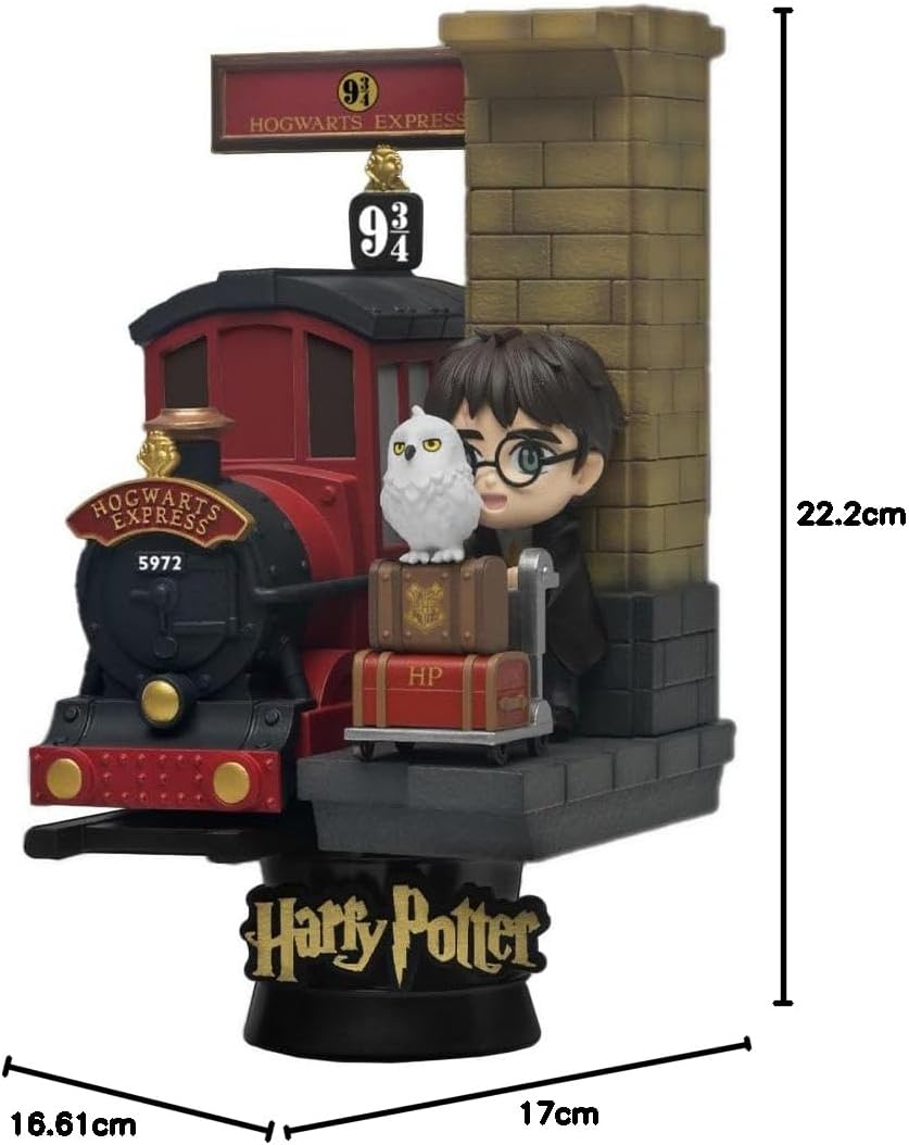 Beast Kingdom - Statuetta da collezione Dstage Harry Potter - Binario 9 e 3/4 - Statuetta Ufficiale da collezione - Harry Potter gadget,regalo Harry Potter l classico binario 9 ¾ è nascosto in un angolo della stazione di Kings Cross a Londra, dove conduce gli studenti all'Hogwarts Express, il treno che trasporta gli studenti da e verso la scuola magica! Quando Harry Potter entra sulla piattaforma, viene visto con indosso la sua veste scolastica, mentre trasporta il gufo Edvige e il suo bagaglio. Prodotti ed accessori progettati per soddisfare tutte le esigenze