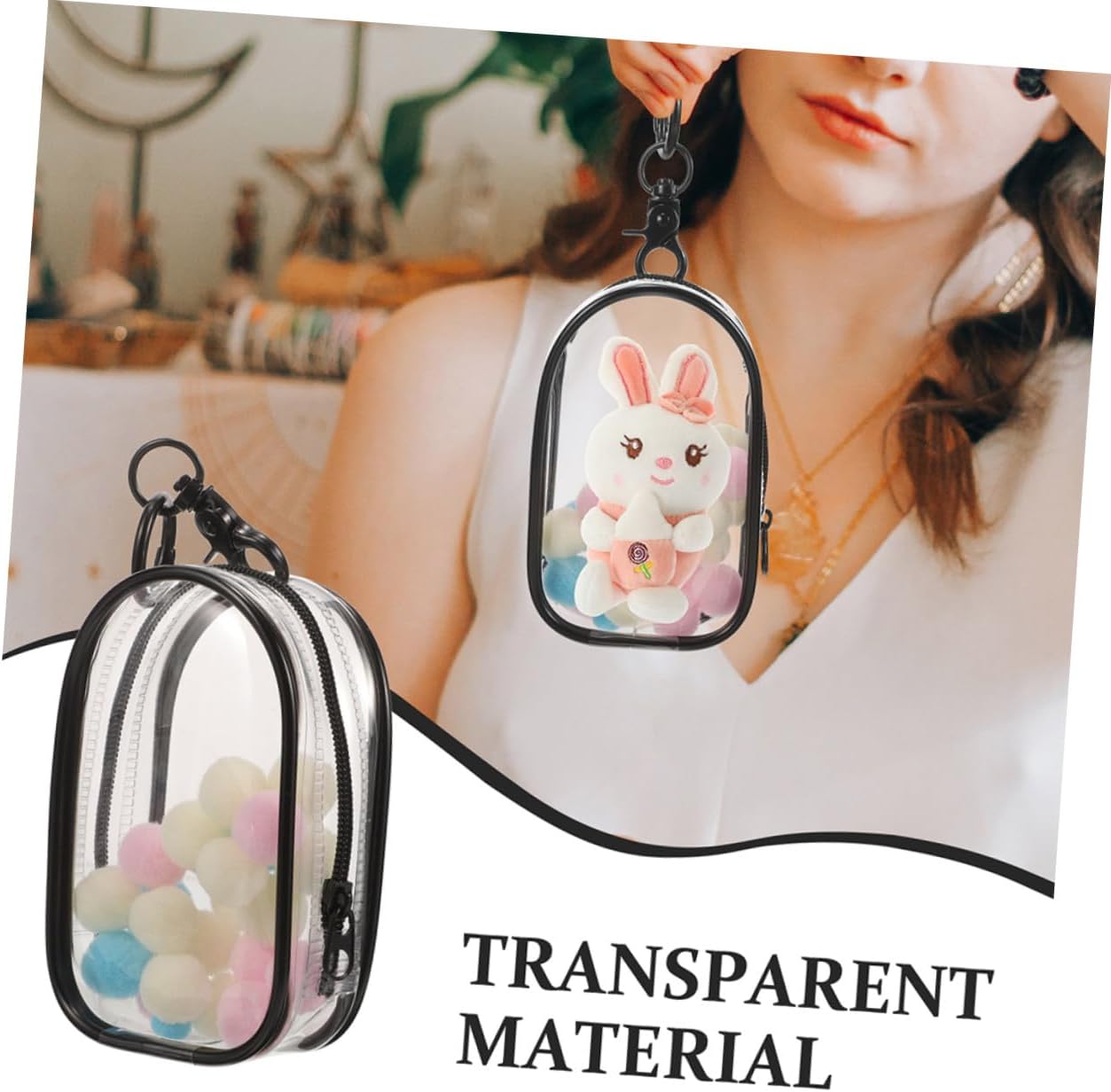 Portachiavi -giocattoli: l'accessorio a forma pallina soffice incluso aggiunge un tocco tenerezza alla borsa della , rendendola un'aggiunta elegante collezione, vetrina trasparente con cerniera Vetrina per : caratterizzata da un'elegante decorazione a forma soffice palla, prodotto aggiunge un tocco dolcezza , rendendolo un accessorio affascinante per gli appassionati bambole Design: design della scatola aggiunge un sorpresa e divertimento collezione bambole, portachiavi con vetrina trasparente per mini figure bambole, custodia con cerniera per organizer da appendere Lanterna portachiavi: dotata un pratico gancio, borsa ti consente attaccare tue bambole a borse, portachiavi e altri oggetti, rendendo trasporto , ciondoli portachiavi da appendere alla borsa Borsa trasparente per bambole con portachiavi: suo design e leggero ti consente trasportare e esporre facilmente tue bambole vada, contenitore per bambole da appendere
