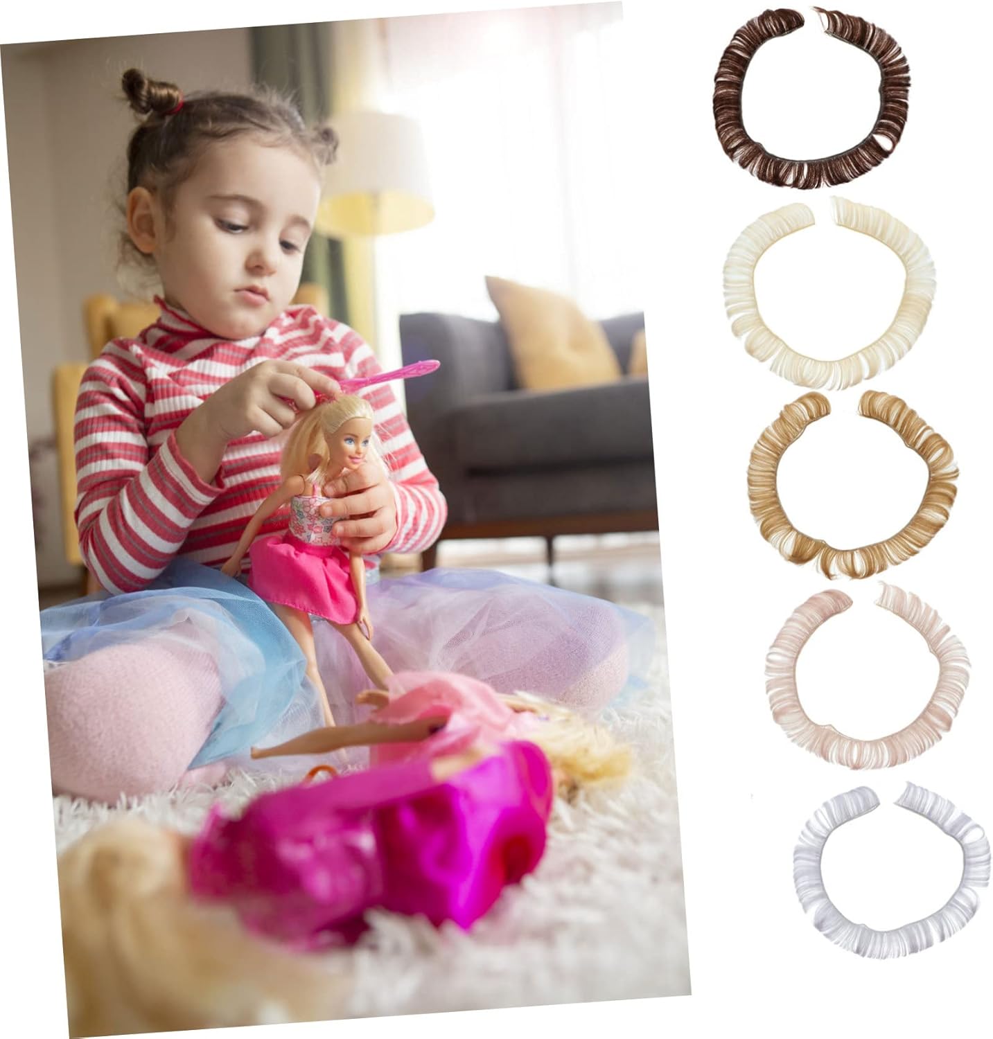 Finti: una buona lavorazione garantisce che i aderiscano saldamente tra loro, frangia finta Creazione artigianale: puoi realizzare una parrucca con frangia in base alla circonferenza della testa della bambola, con frangia finta Frangia finta: realizzata in filo ad alta temperatura, non facile da rompere, durevole per un uso prolungato, creazione artigianale Realizzato con , è sano, confortevole e delicato sulla pelle Parrucca con frangia corta e retina, facile da indossare per le bambole e difficile da togliere