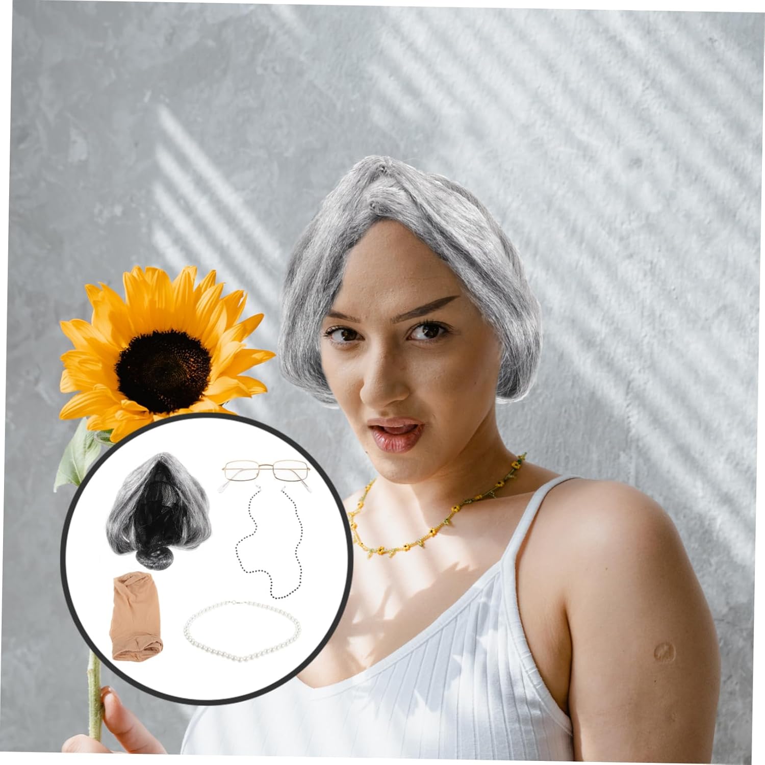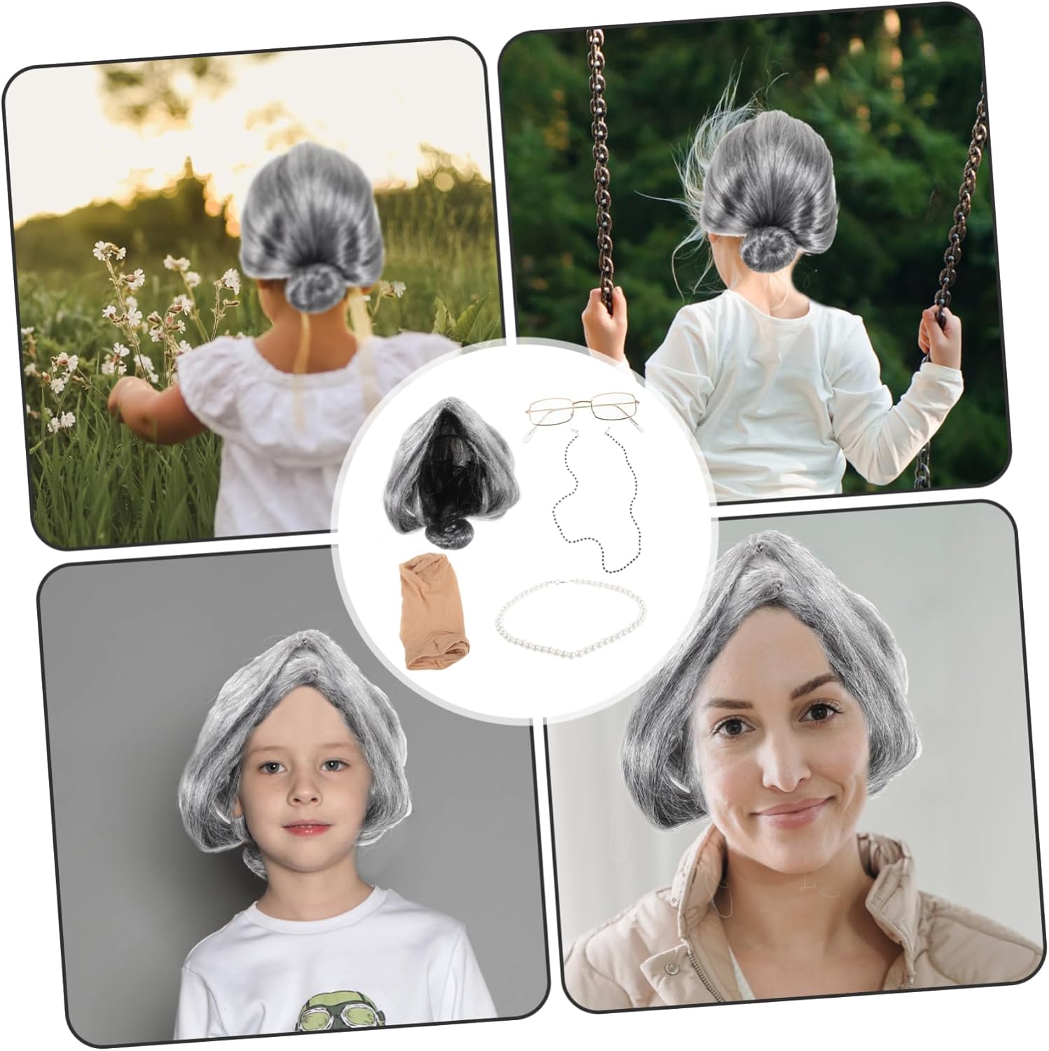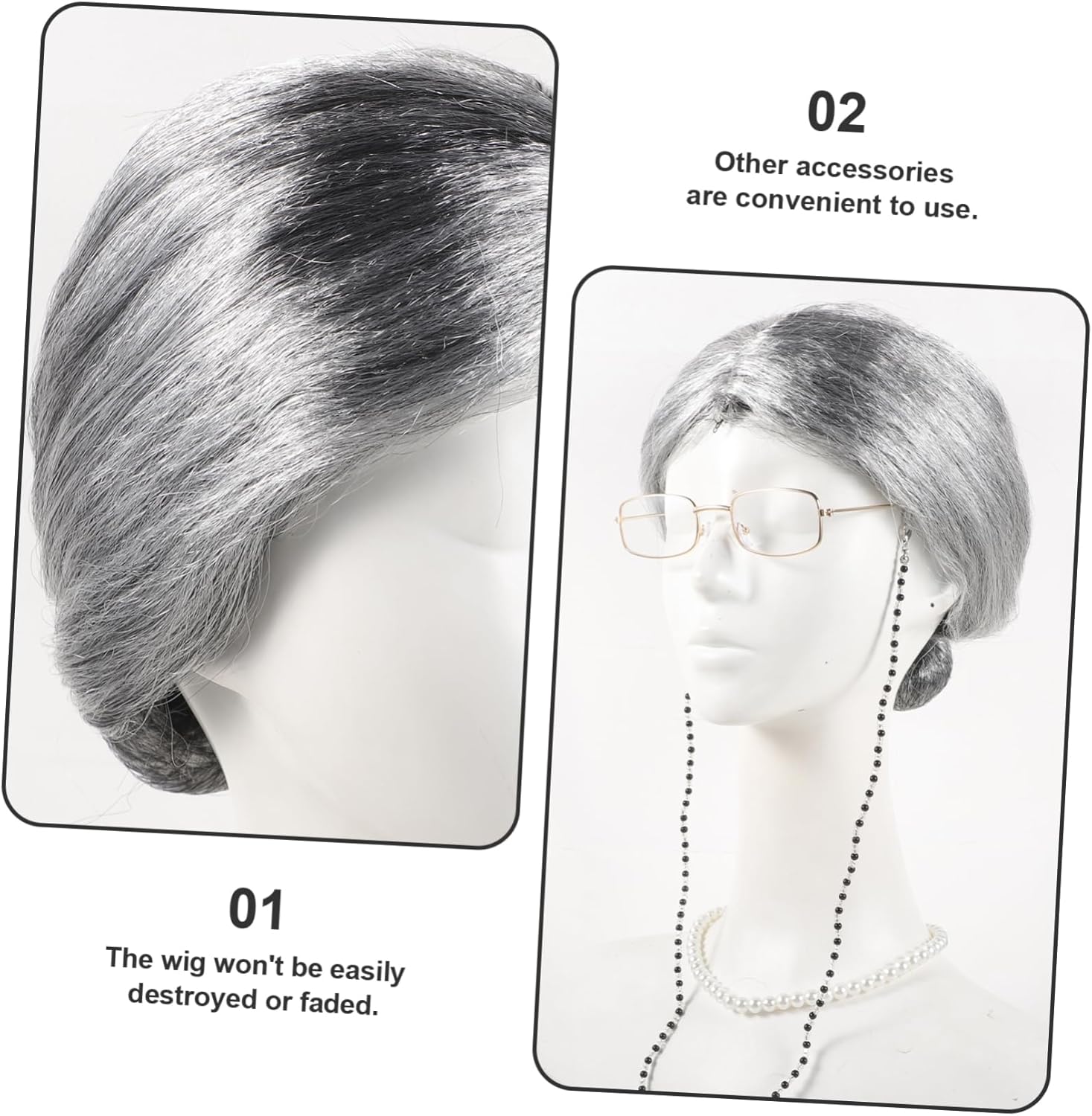 dei pacchetti 1 x parrucca 1 x rete per parrucca 1 x paio di occhiali 1 x collana 1 x catena per occhiali Caratteristiche -Colore: costumi cosplay assortiti -Dimensioni: 23,00X18,00X11,00 cm/9,04X7,07X4,32 pollici costume da vecchia nonna -Materiale: costume da donna anziana in filato -Informazioni sul prodotto: Vecchia parrucca da nonna - Questa parrucca estremamente dettagliata e realistica può rendere il tuo costume da vecchia signora perfetto per adulti. - Ottima fattura, massima attenzione ad ogni dettaglio, per creare facilmente un kit di costumi da vecchia signora dall'aspetto accattivante. - Aggiungerà sicuramente un effetto drammatico al tuo costume da vecchia signora e contribuirà a creare un'atmosfera più durante il cosplay da vecchia signora. - Sono perfetti per feste in maschera, feste a tema, cosplay, Halloween o qualsiasi altro evento speciale, accessori da anziana signora per le donne. - Accessorio adatto per costumi da vecchia signora per cosplay, adatto a , donne o anche uomini, soddisfa facilmente le tue esigenze di accessori per cosplay. Descrizione della merce cosplay nonna Ampie applicazioni. Kit costume da vecchia signora E questo set cosplay da vecchia signora è adatto a diversi gruppi di persone che vogliono fare cosplay da vecchia signora. Accessori da vecchia signora Questi accessori per costumi da vecchia signora possono essere usati nella maggior parte delle occasioni, come feste di Halloween, discoteche, feste in maschera, carnevale, festival, ecc.