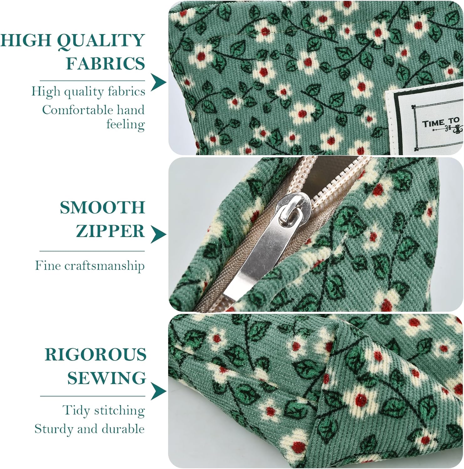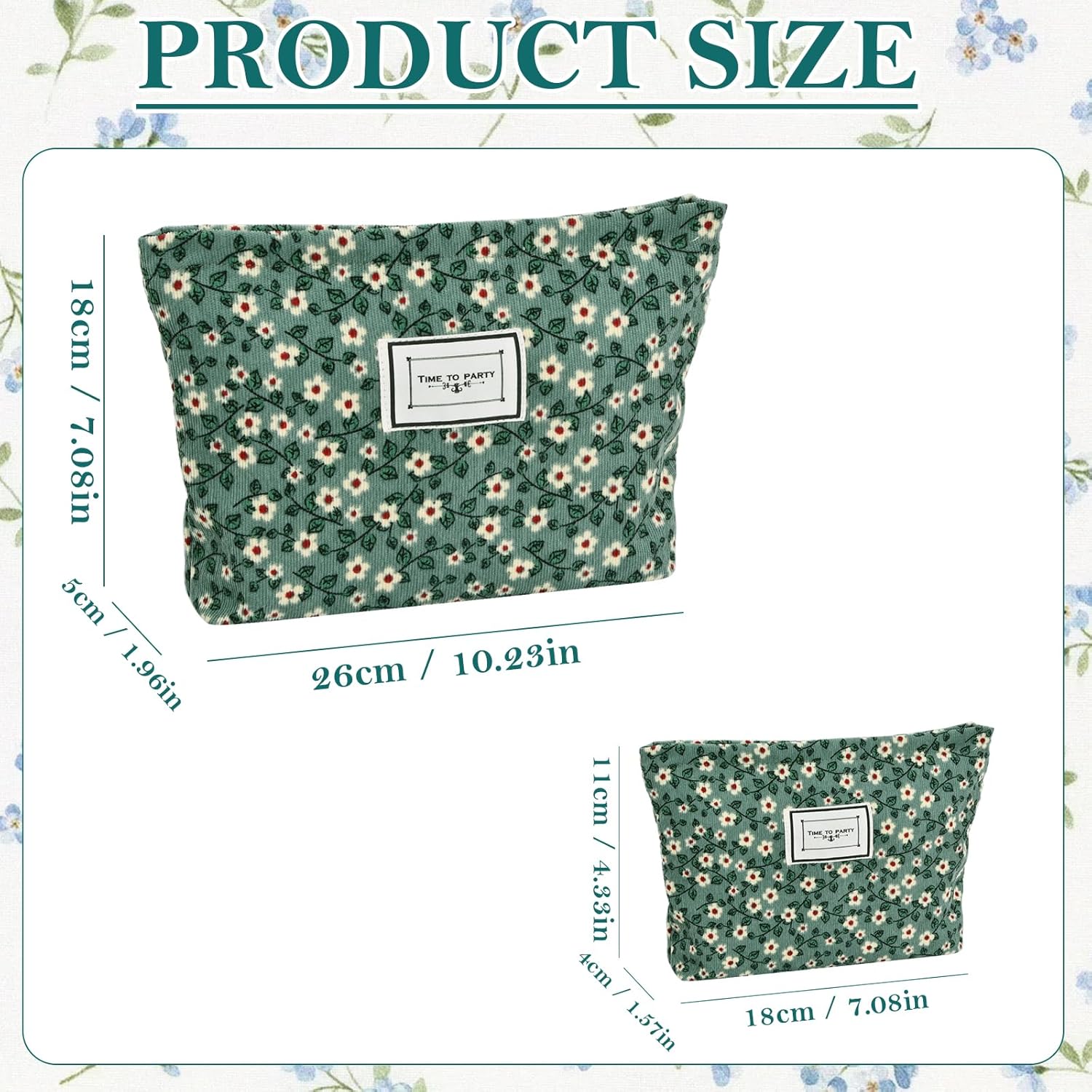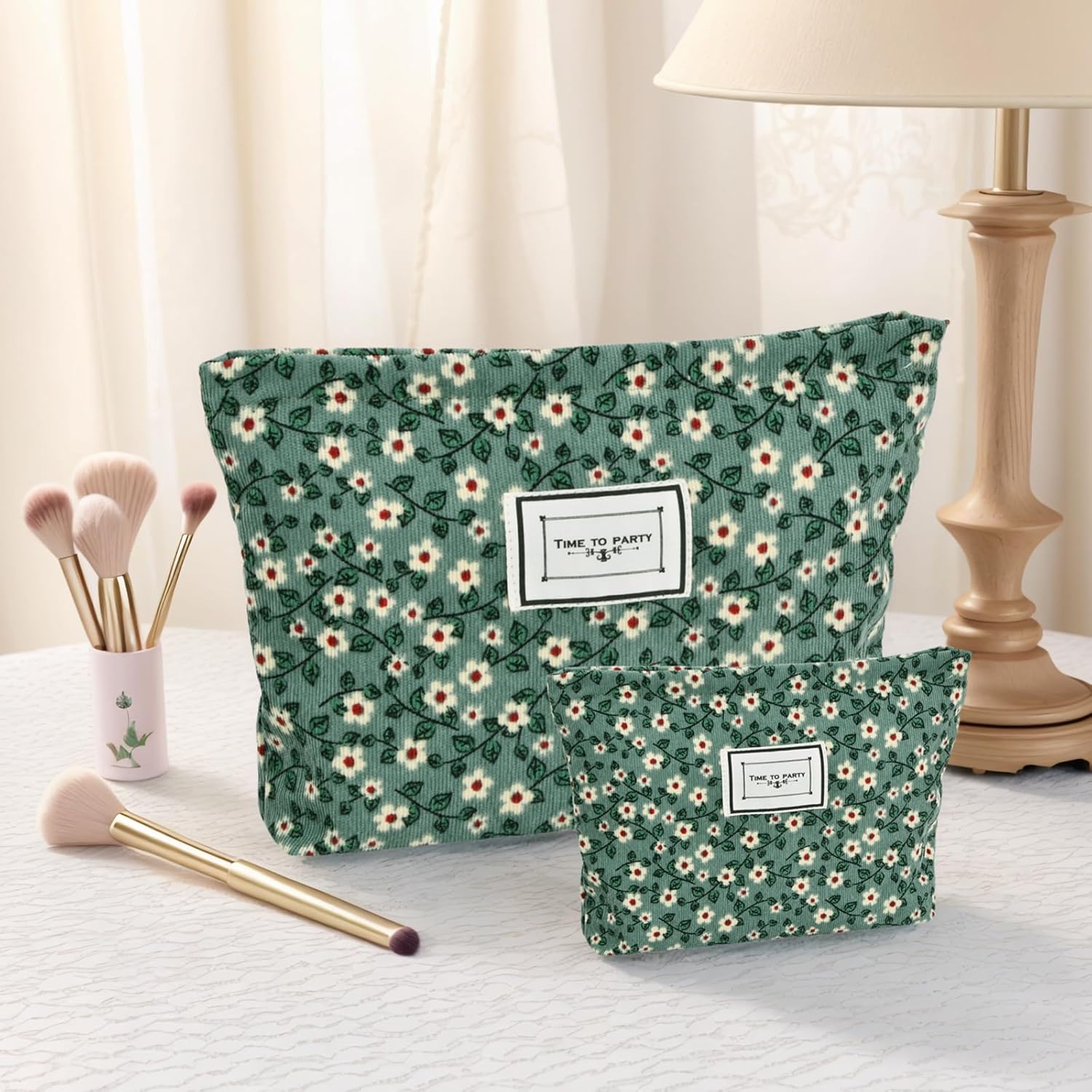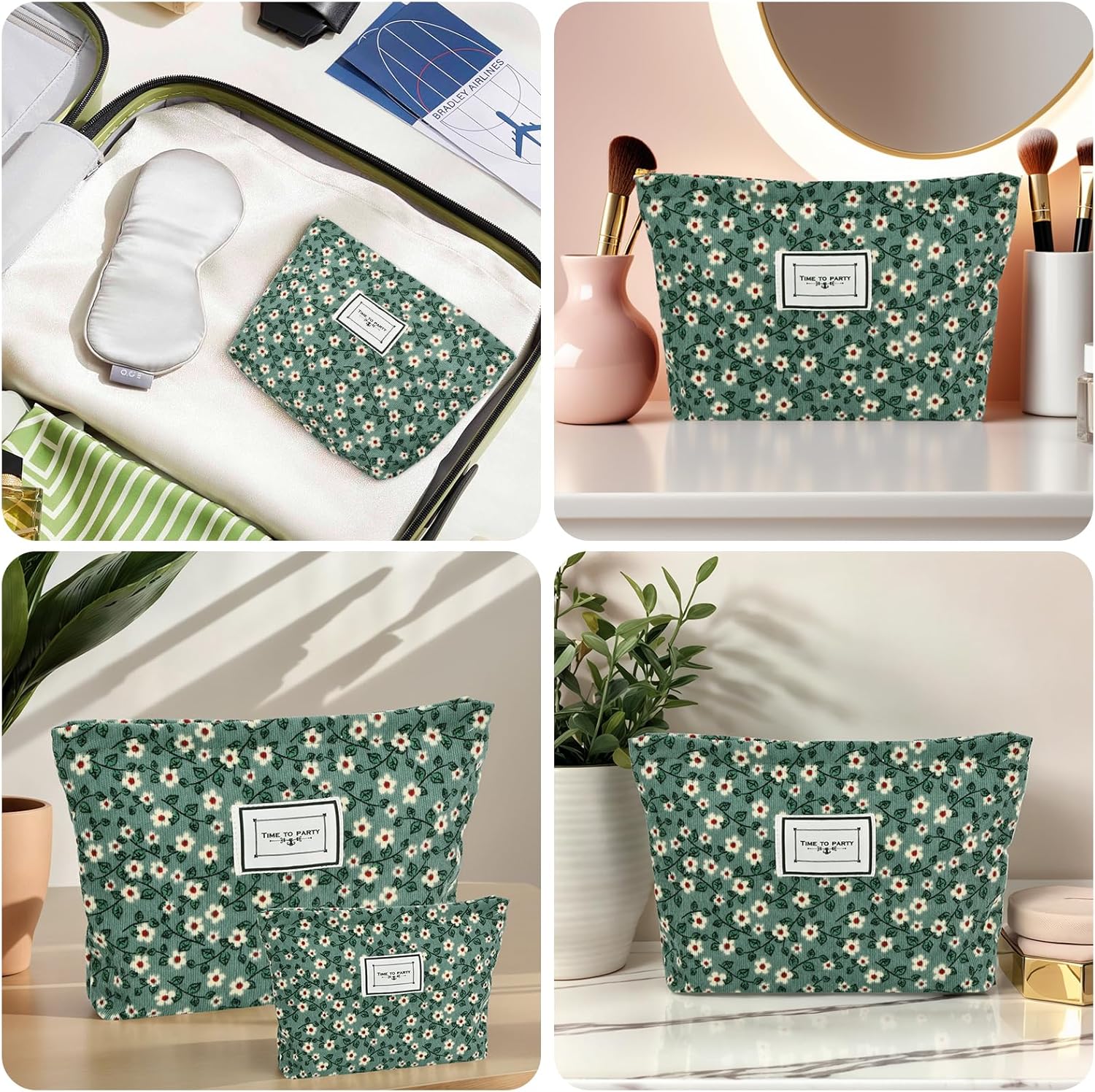 🔹【Set di borse da toilette】Include 2 sacchetti per il trucco: grandi (26×18×5,5 cm) + piccoli (16×10×4 cm). Leggero e portatile per organizzare in modo efficiente i tuoi effetti personali e mantenere la borsa in ordine! 🛡️【Morbido e Resistente】La borsa da toilette è realizzata con un esterno in velluto a coste e una fodera in tela, fornendo una consistenza morbida e confortevole. Resistente e solido, con cerniera liscia e cuciture rinforzate per tenere i tuoi effetti personali sempre al sicuro! 🔹【Design pratico】Pieghevole e realizzato in tessuto morbido e inodore, facile da riporre in valigia senza occupare spazio! Grande capacità, ideale per l'uso quotidiano e i viaggi, per viaggiare senza preoccupazioni! 🌿【Elegante e raffinato】Motivo floreale verde fresco e minimalista, che dona un tocco di eleganza al tuo stile! Conserva facilmente specchio, pettine, rossetto, eyeliner e altri cosmetici, con una cerniera liscia per un accesso rapido e conveniente. 🔄【Versatile e multifunzione】Borsa per il trucco, borsa da toilette, borsa da viaggio o custodia quotidiana, tutto in uno! Adatto per viaggi, shopping e lavoro. Con il suo design trapuntato in cotone, può essere utilizzato come borsetta o per organizzare i tuoi prodotti per la cura e gli effetti personali: un compagno ideale per i tuoi viaggi!