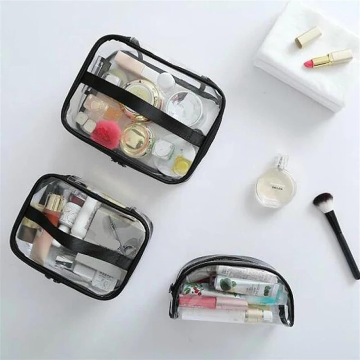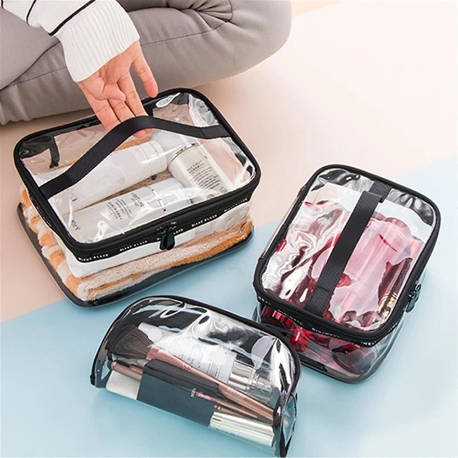 Design Elegante: Questa pochette è un accessorio chic, perfetto per ogni occasione, dal viaggio di lavoro a una serata fuori. Aggiunge un tocco di stile al tuo look, rendendola un must-have nel tuo beauty case donna Praticità Incredibile: Ideata per un utilizzo quotidiano, la nostra pochette da viaggio offre ampio spazio per riporre cosmetici e accessori, mantenendoli organizzati e facilmente accessibili. Rappresenta la soluzione ideale per il tuo beauty da viaggio Facile da Trasportare: Leggera e compatta, si adatta facilmente a borse di diverse dimensioni. La pochette da viaggio è perfetta per le avventure, permettendoti di portare con te tutto il necessario senza ingombrare troppo Versatilità Assoluta: Non solo per trucchi! Questa pochette può essere utilizzata anche come beauty case uomo, per riporre articoli da toeletta o accessori tecnologici, soddisfacendo le esigenze di tutti Rifiniture Curate: Ogni dettaglio è pensato per offrire un'esperienza d'uso piacevole. I materiali selezionati e il design funzionale rendono questa pochette un accessorio pratico e raffinato per ogni viaggiatore Questa borsa da viaggio trasparente è realizzata in materiale PVC, è più duratura e rende i tuoi cosmetici o articoli da toeletta da viaggio ben organizzati. È adatta for i viaggi e l'uso quotidiano. Le cerniere robuste scorrono fluidamente e si chiudono in modo sicuro. L'estremità della cerniera è rinforzata for evitare che il cursore cada. Assicurati che i tuoi oggetti non cadano.