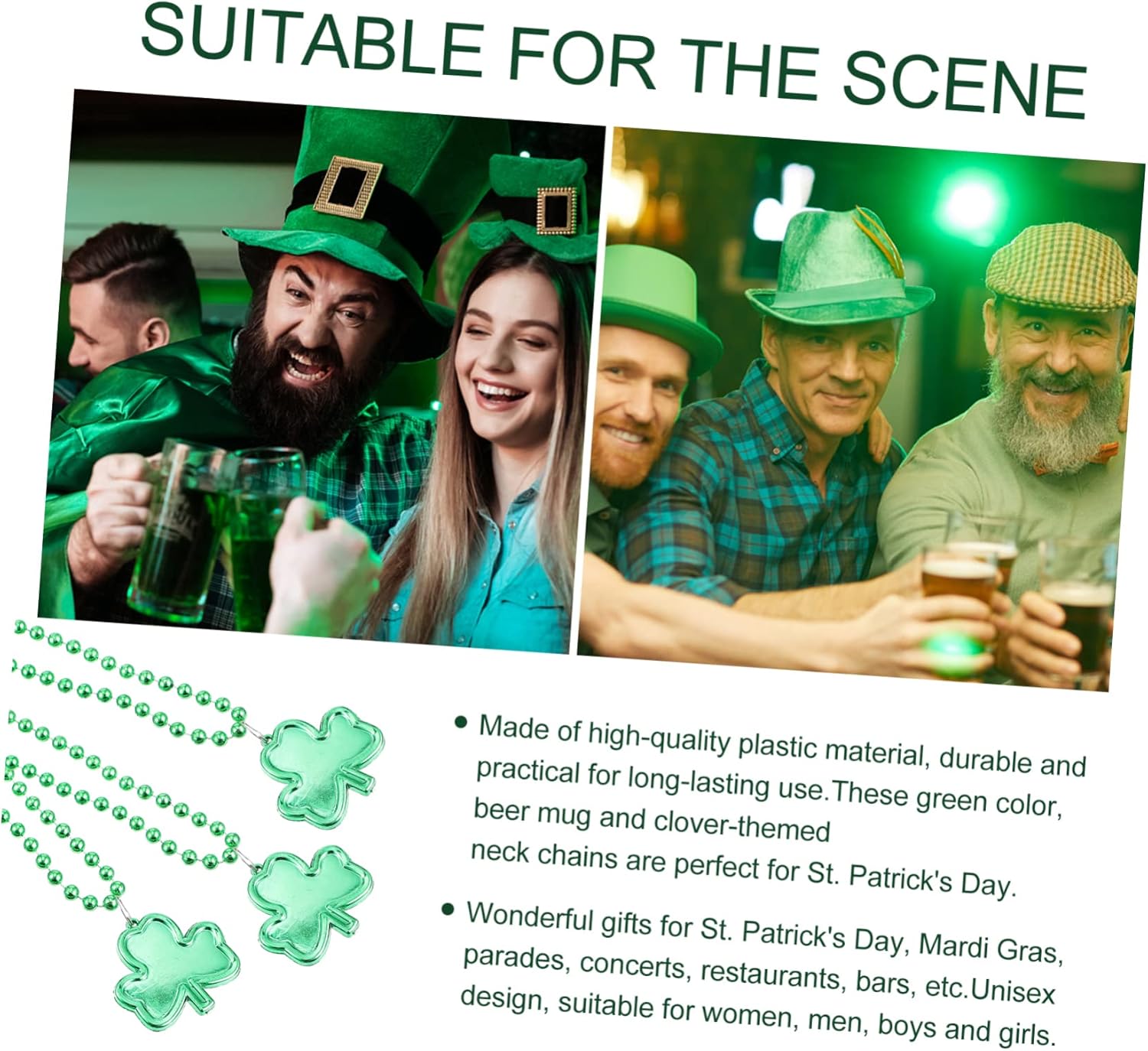dei pacchetti 8 x Collana Caratteristiche - Materiale: collana rotonde plastica. - Dimensioni: circa 44,00X4,00X0,30 cm/17,29X1,57X0,12 pollici Collana San Patrizio. - Colore: Decorazione per . -Informazioni prodotto: set per collana - La taglia è adatta maggior parte degli adulti e dei . Collana decorativa perfetta per feste in maschera, travestimenti e altri festival, o come decorazione quotidiana. - e colore ne garantiscono la popolarità. Ciondolo con - prodotto è resistente e durevole, creando un'atmosfera suggestiva per San Patrizio. Collana creativa per festival. - Leggero e indossare. danno per . Ciondoli creativi per . - prodotto è e , può utilizzato come decorazione per festival o come accessorio per costumi e foto. Informazioni sulle Collana con ciondolo a . Stai ancora cercando decorazioni per San Patrizio? Queste collane con con a sono accattivanti e straordinarie. Decorazioni per San Patrizio? ti mancano nostre collane a con ciondolo a , resistenti e qualità.
