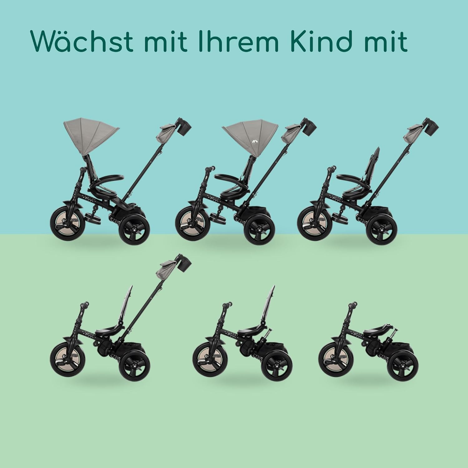 TRICICLO PER NEONATI/BAMBINI: È regolabile in base alle dimensioni del bambino e continua a svilupparsi - mentre inizialmente i genitori lo controllano, in seguito diventa un triciclo per bambini indipendente CONTROLLO DA PARTE DEI GENITORI: Con il cursore regolabile e i due pedali del freno, i genitori prendono il controllo, mentre possono regolare il sedile reversibile in modo che il loro bambino possa vederli SICUREZZA: Goditi ogni momento perché il tuo bambino è al sicuro grazie alla cintura a 5 punti, alla barra di sicurezza e ai poggiapiedi per proteggere le gambe del bambino ben protetti da i pedali se non riescono ancora a pedalare REGOLABILE PER OGNI BAMBINO: Windy può essere facilmente trasformato da triciclo per bambini con barra di spinta in bicicletta per bambini - cintura a 5 punti, barra di sicurezza, poggiapiedi e schienale sono rimovibili SEDILE E BARRA DI SICUREZZA REGOLABILE: Affinché tu e il tuo bambino possiate godervi ogni giro in modo rilassato, Windy ha un sedile regolabile con morbida imbottitura e una comoda barra di sicurezza COPERTURA PROTETTIVA: La capottina con UPF 40 protegge anche il tuo bambino dal vento, dalla pioggia e dal sole, affinché il tempo non rovini i vostri viaggi avventurosi insieme. PIEGHEVOLE COMPATTO: Windy si piega in modo così compatto (L81 x A42,5 x P53 cm) che il veicolo per bambini può essere facilmente portato con sé durante i viaggi del fine settimana e in vacanza o riposto
