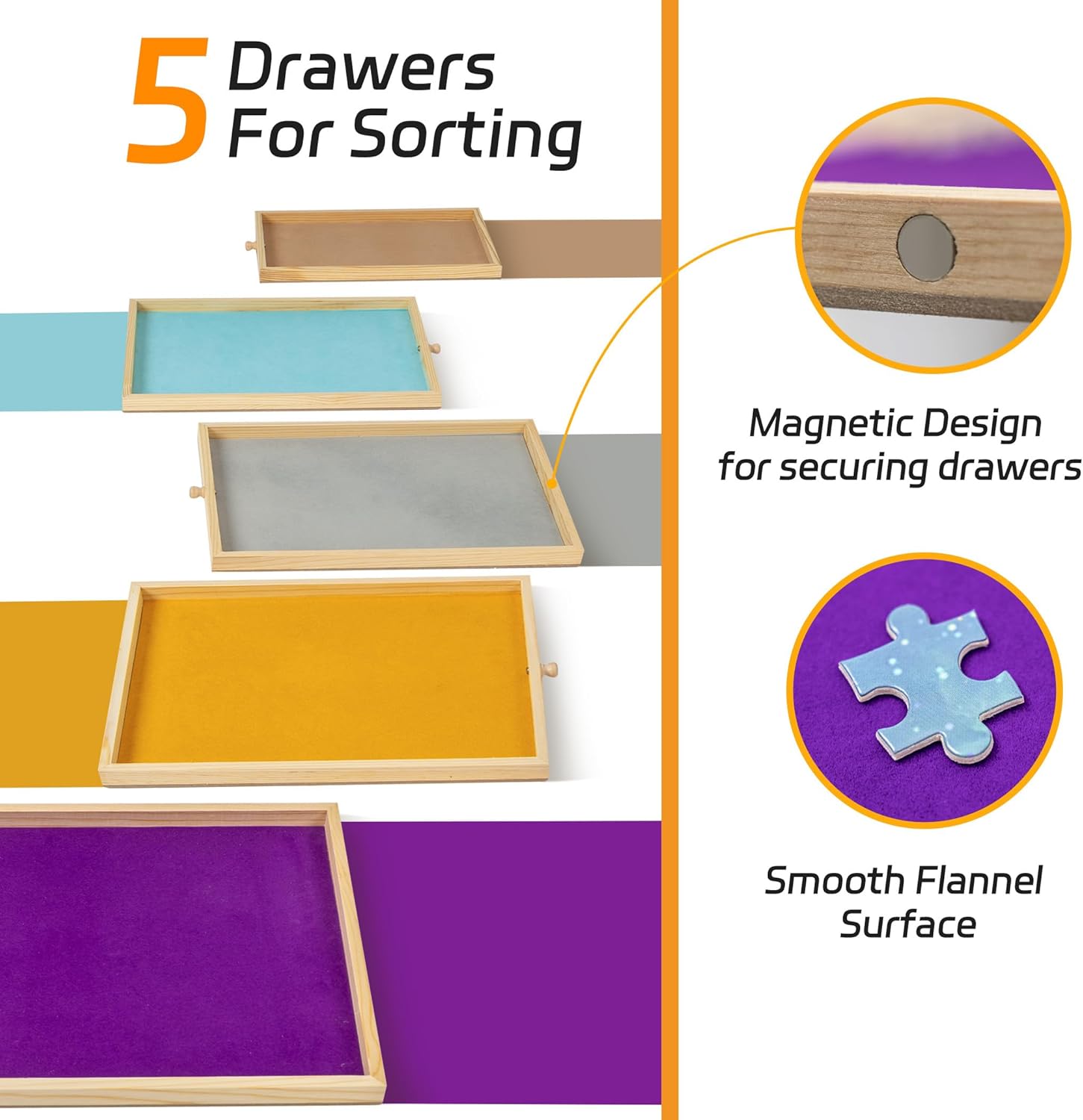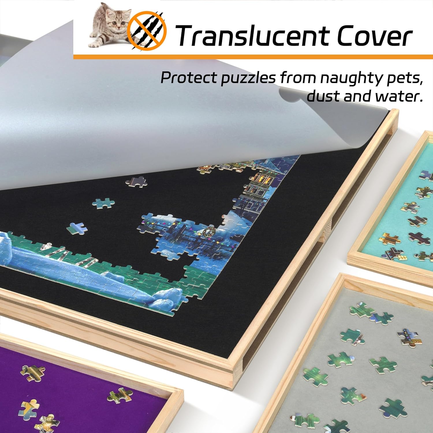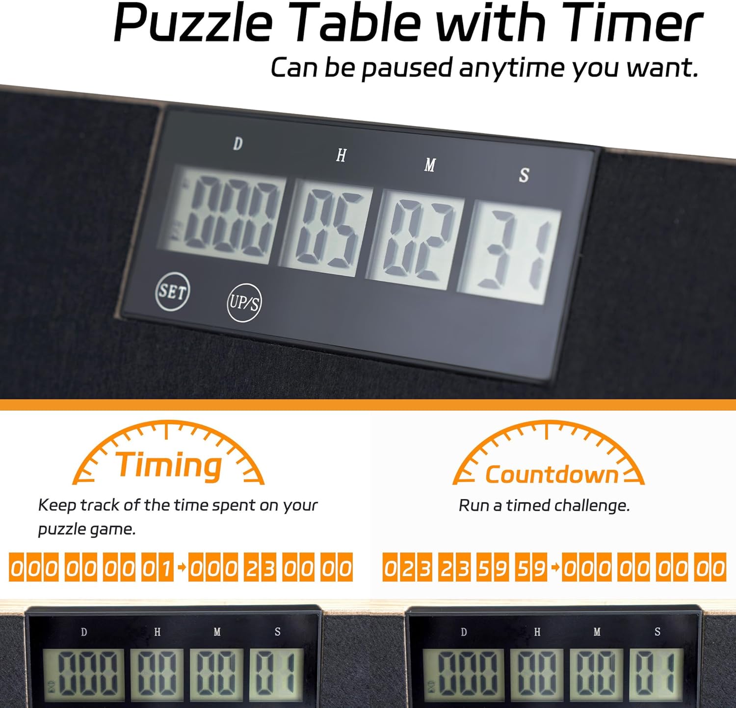 Timing / Countdown Design - Il puzzle board Becko US è progettato con un timer con il quale i giocatori possono cronometrare o mettere in pausa il gioco e conoscere quanto tempo ci vuole per finire il gioco di puzzle. Il timer ha anche la funzione di conto alla rovescia per le sfide del puzzle con limiti di tempo. 5 Cassetti: è possibile ordinare e conservare i pezzi del puzzle con i 5 cassetti, ognuno dei quali dispone di un piccolo magnete che assicura che i cassetti rimangano chiusi e i pezzi del puzzle non cadano durante il trasporto. I cassetti sono rivestiti con flanella colorata per una facile distinzione. Copertura traslucida - Racchiuso con una copertura traslucida per stere a polvere, acqua e animali domestici. Impedisce ai gattini cattivi di graffiare i tuoi puzzle e impedisce la scomparsa dei pezzi del puzzle. Facile trasporto: il puzzle board pesa 7,5 kg e lo rende facile da spostare in soggiorno, studio o camera da letto per giocare comodamente. Quando hai bisogno di spazio extra sul posto o sul tavolo, basta coprire i puzzle con la copertura inclusa, chiudere i cassetti e quindi spostare la tavola puzzle sotto il divano o il letto per risparmiare spazio e sicurezza. Ideale per gli amanti dei puzzle - Progettato con funzioni di temporizzazione e conto alla rovescia e rivestito con tessuto in feltro che dà una consistenza morbida per ai giocatori una migliore esperienza di gioco e più divertimento. Un regalo ideale per gli appassionati di puzzle come regalo di compleanno o di festa.