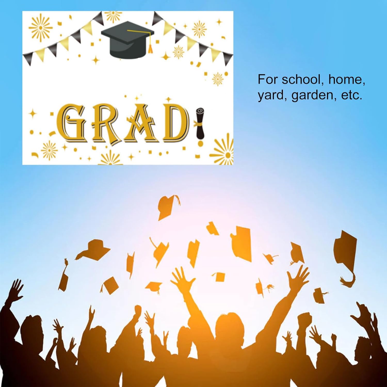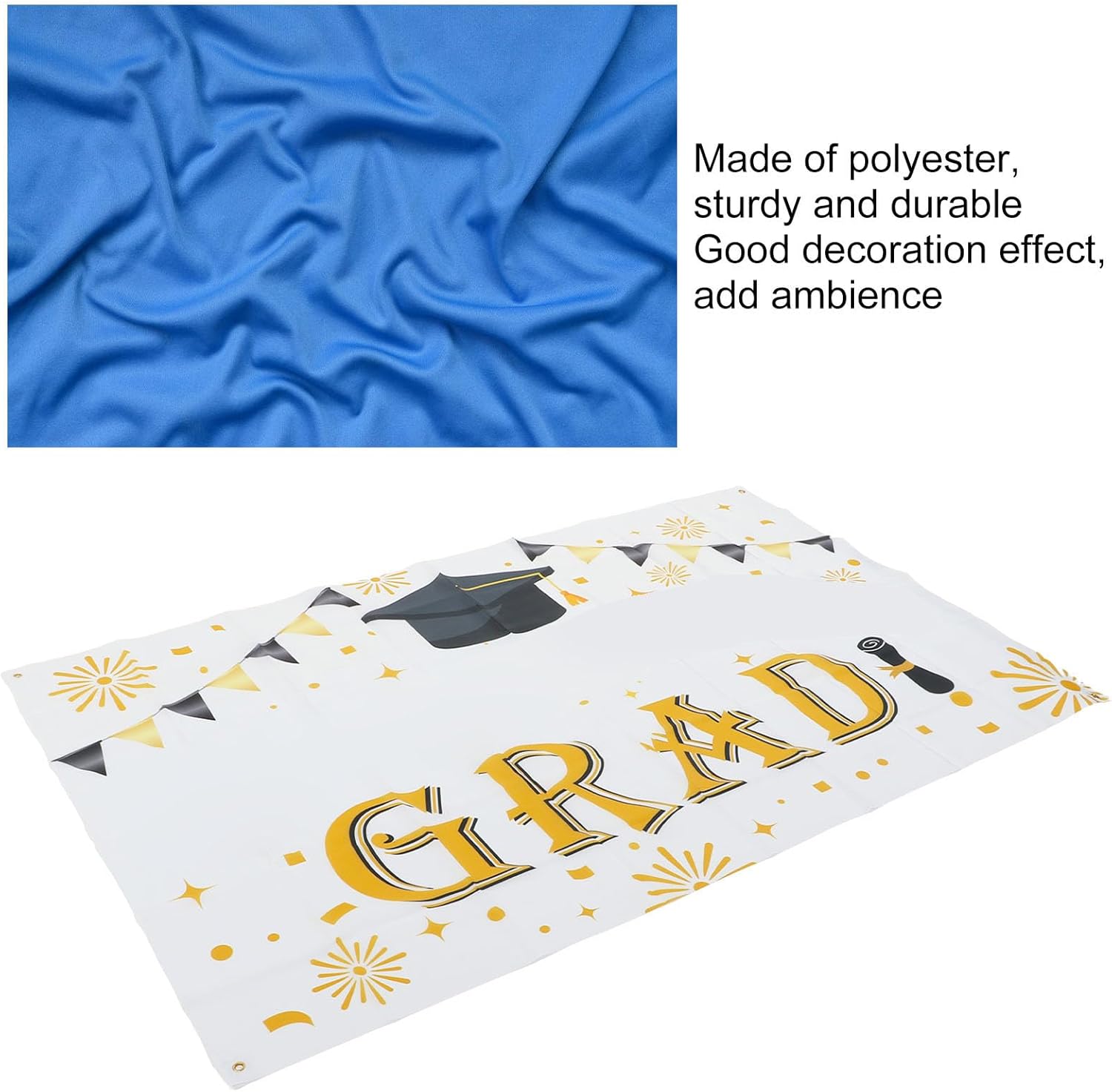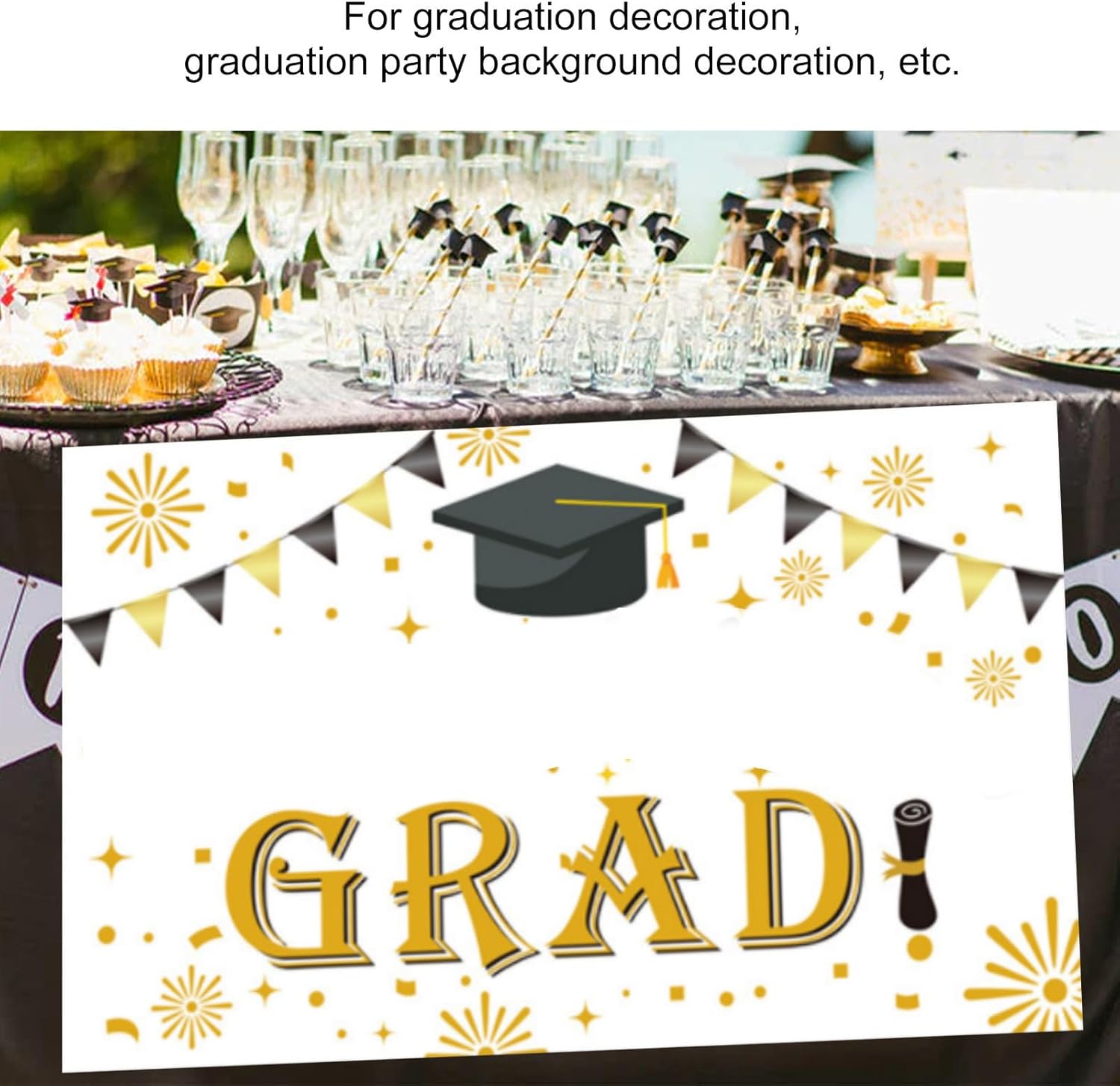 MULTIUSO - Gli striscioni di congratulazioni per i laureati possono essere utilizzati come decorazioni per la laurea, decorazioni per lo sfondo della laurea e altro ancora. Materiale in poliestere: gli striscioni di laurea sono realizzati in poliestere spesso per una maggiore durata. Gli striscioni di congratulazioni possono essere tagliati alla lunghezza della corda secondo necessità e sono facili da appendere e utilizzare. Design vivace: questo striscione di laurea presenta un design vivace che aggiungerà un tocco festoso alla tua festa di laurea. I colori audaci e accattivanti lo rendono una decorazione perfetta per celebrare questo traguardo speciale. Buona decorazione: gli striscioni di laurea decorano bene e aggiungono atmosfera alla festa di laurea o alla festa di laurea. Serve come sfondo perfetto per le foto e crea un'atmosfera allegra che renderà la cerimonia di laurea ancora più memorabile. Ampia applicazione: gli striscioni di laurea possono essere posizionati a scuola, a casa, in cortile, in giardino e altro ancora per creare una festa di laurea indimenticabile. Può essere facilmente appeso a pareti, finestre o recinzioni e trasforma istantaneamente qualsiasi stanza in un'atmosfera festosa.