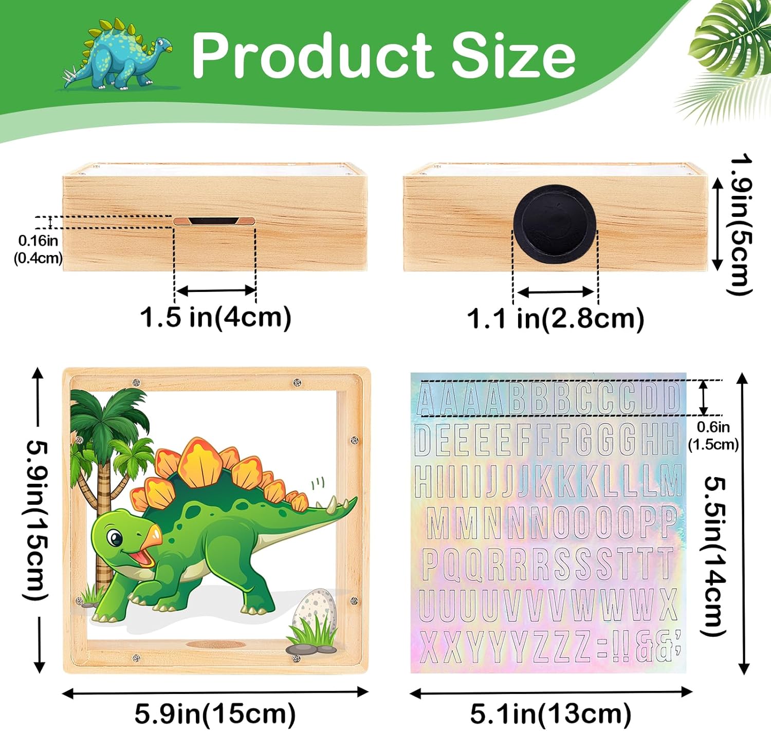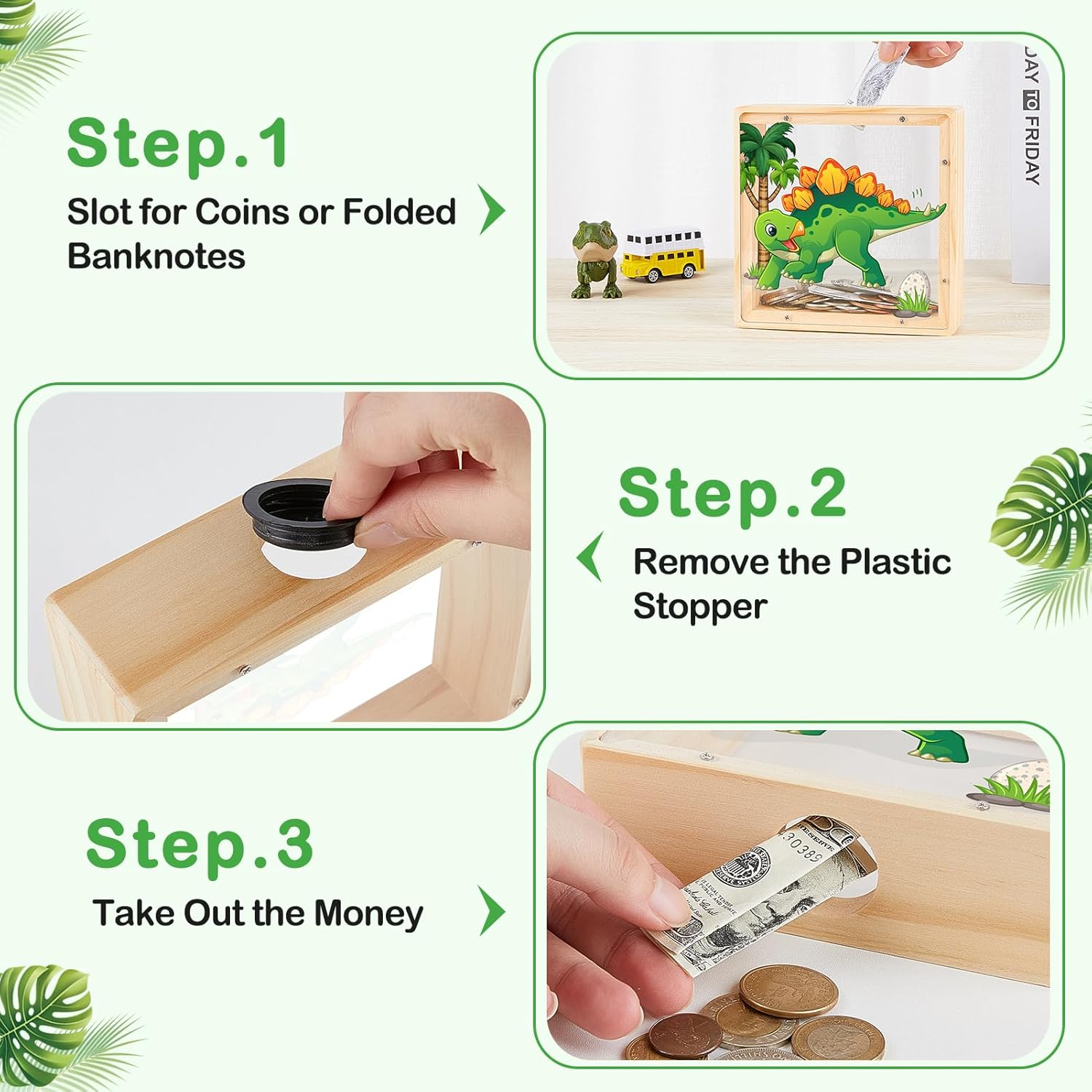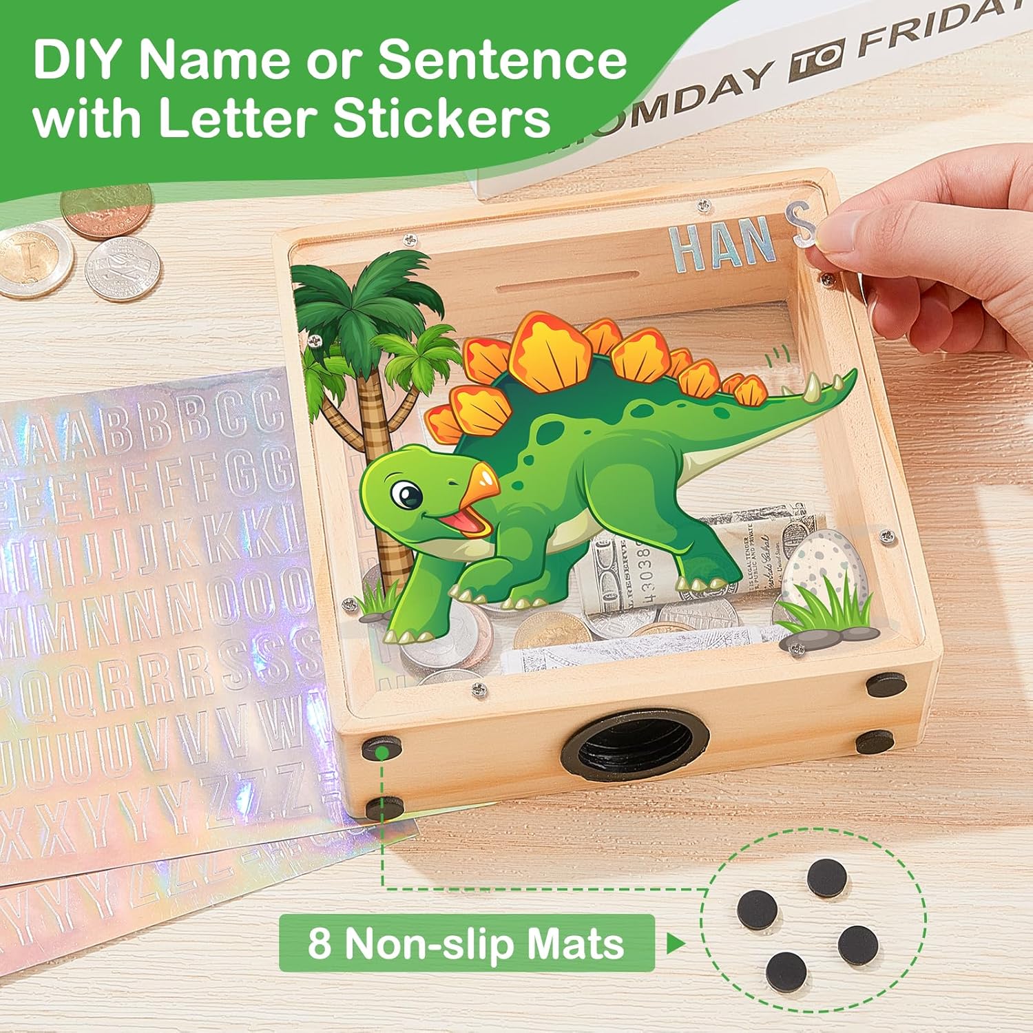 【SVEGLIO SALVADANAIO】 Questo salvadanaio ad altezza di maiale con corona semplice dai colori vivaci, motivi a sirena e dinosauro, pannello acrilico trasparente, si trova sullo scaffale come una decorazione perfetta. Può facilmente catturare gli occhi dei tuoi bambini. 【MATERIALE DI QUALITÀ】 Realizzato al 70% in legno naturale + 30% in acrilico, ecologico e durevole, non facile da rompere come il tradizionale salvadanaio in vetro e porcellana. 【IMPORTANZA EDUCATIVA】 È importante spiegare ai bambini il valore di ogni centesimo e sviluppare l'abitudine di risparmiare denaro fin dalla giovane età. Attraverso la lavagna acrilica trasparente, tuo figlio può osservare chiaramente la crescita delle monete e intrattenere il parom per risparmiare denaro. 【ADESIVI CON LETTERA FAI DA TE】Confezionato con 2 bastoncini con lettere da 26 pezzi, puoi aggiungere il tuo nome o gli auguri su di esso. È un regalo significativo per ragazze, ragazzi e adulti come regalo per il compleanno, Natale o il Giorno del Ringraziamento. 【FACILE DA USARE】 Metti le monete dal lato della pentola. Dimensioni 15x15x5 cm, abbastanza grande da contenere monete e contanti. Se vuoi prelevare i soldi, rimuovi semplicemente le viti e apri la piastra acrilica, quindi potrai prendere le monete.