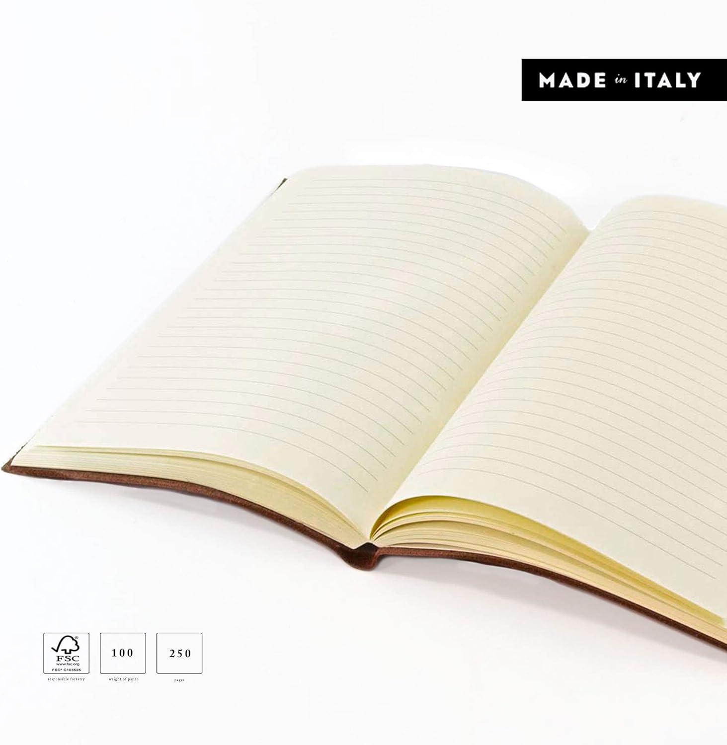 Formato: A5 (15x21 cm) Composizione: Pelle riciclata italiana Il Quaderno contiene Pagine: 125 pagine (250 fronte-retro) in carta a righe priva di acidi, ideale per scrivere le Nuove collezioni 2019. Fatto a mano da Artigiani Italiani Venduto nella sua speciale confezione regalo. Ideale per sorprendere i tuoi cari e i tuoi amici