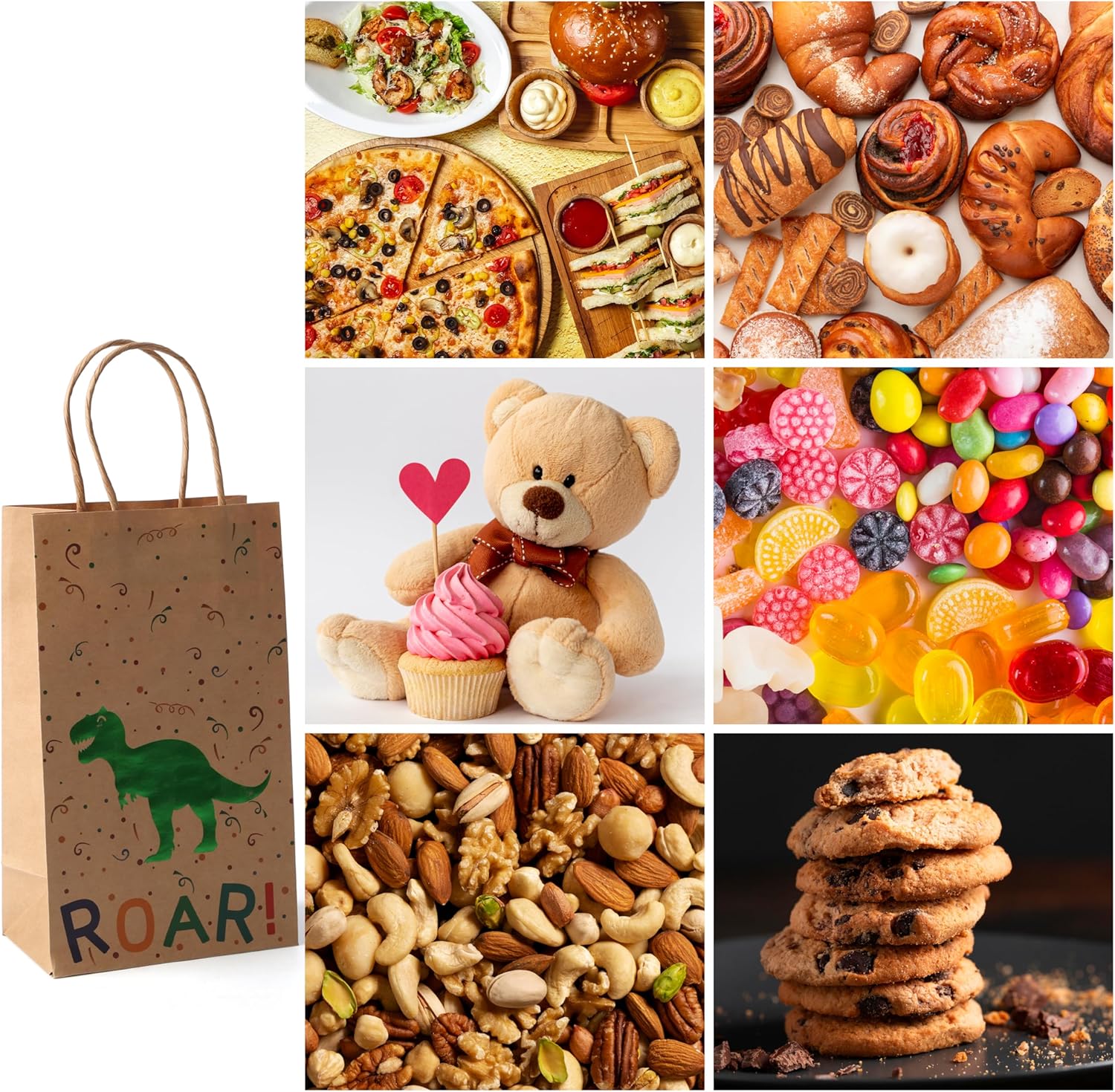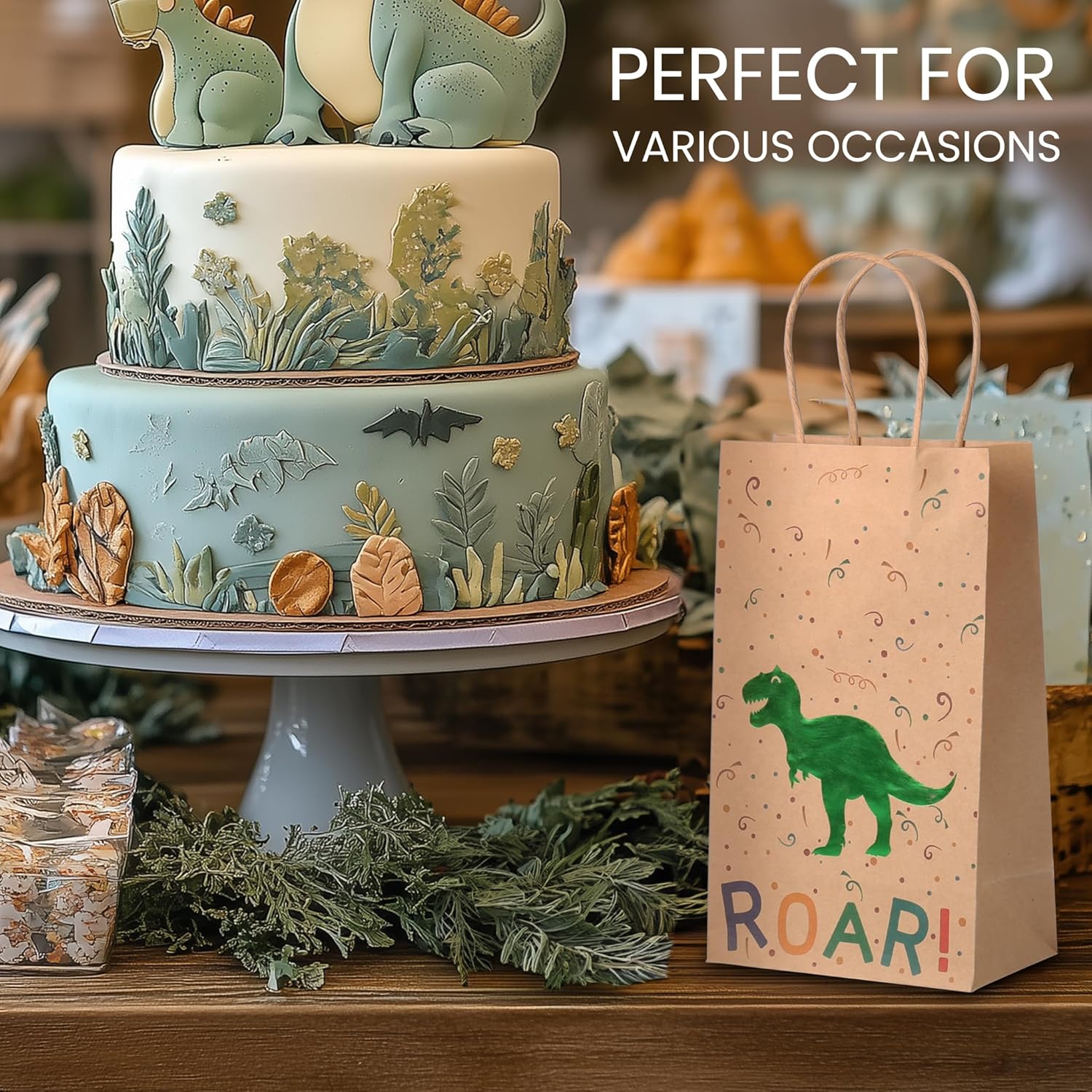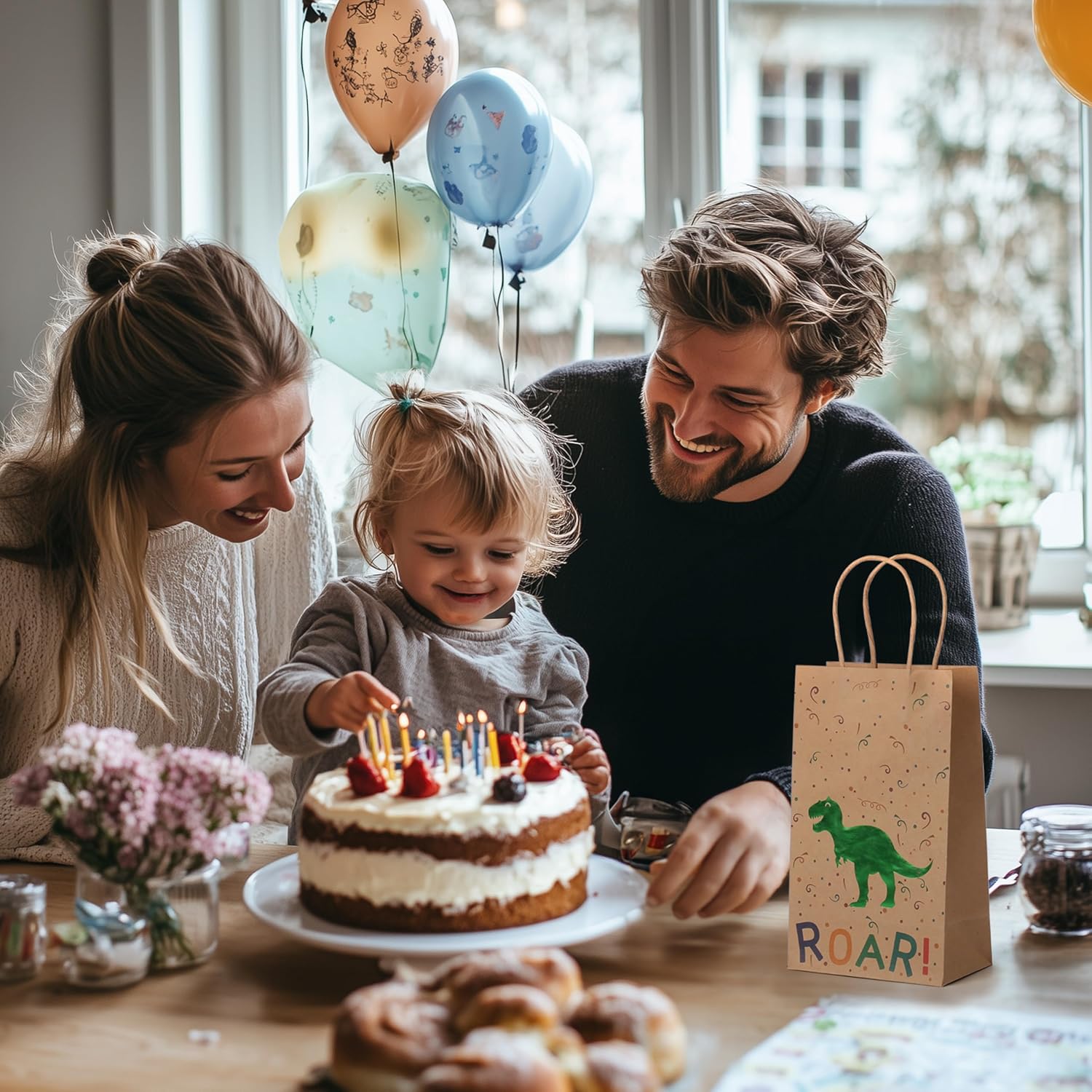 SACCHETTI DI CARTA PER COMPLEANNO BAMBINI: questa confezione contiene 24 sacchetti regalo con dinosauri per bambini. Ogni sacchetto regalo è realizzato in carta kraft marrone di alta qualità con una stampa T-Rex, che lo rende perfetto per una festa di dinosauri per bambini. Tutti i piccoli sacchetti di carta vengono consegnati smontati; una volta aperti sono lunghi 13,5 cm, larghi 7,9 cm e alti 22,8 cm. Queste borse da festa ecologiche hanno una base robusta e 2 robuste maniglie sulla parte superiore delle borse. DECORAZIONE CON DINO: I nostri piccoli sacchetti di carta sono perfetti per il compleanno di un dinosauro. Il design è adatto a ragazzi e ragazze. Sul lato di ogni borsa kraft è stampato un dinosauro T-Rex verde brillante. Sotto questa immagine c'è "RUGGITO!" leggere. I bambini adoreranno queste borse con dinosauri e non vedranno l'ora di scoprire cosa troveranno al loro interno. Combina questi sacchetti di carta in modo colorato con altre decorazioni per il compleanno dei dinosauri come palloncini, piatti dinosauri e tovaglioli dinosauri. BORSE DA COMPLEANNO ECOLOGICHE: queste piccole borse regalo per bambini sono realizzate in materiale ecologico e riciclabile. Si piegano rapidamente e facilmente e mantengono il contenuto al sicuro. Quando la festa è finita, puoi appoggiare i sacchetti di compleanno dei bambini in piano e piegarli per riutilizzarli. Puoi anche scrivere i nomi dei bambini sui sacchetti di caramelle con una penna. Oppure puoi decorare ulteriormente la superficie della carta con adesivi. MOLTE OCCASIONI: Usa questi piccoli sacchetti per caramelle per feste con dinosauri alle feste di compleanno dei bambini, battesimi o baby shower a casa. Puoi anche usare queste borse colorate in classe. Metti regali e caramelle nei sacchetti da distribuire agli ospiti all'inizio o alla fine di una festa. Posiziona le borse da festa sui tavoli come decorazioni per la stanza. Confeziona dolci come caramelle incartate, cioccolatini e piccoli giocattoli nei sacchetti regalo. Grandi aiutanti quotidiani: i nostri prodotti sono costruiti in modo funzionale e combinano funzionalità e stile. Grazie al nostro design accurato, sono costantemente affidabili e pratici quando necessario, ideali per ogni occasione.