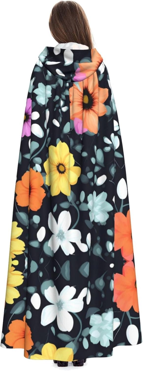Bellissimi fiori colorati con cappuccio Cloakfull larghezza stampa \r Descrizione del materiale: 100% fibra di poliestere (poliestere). \r Prestazioni del prodotto: il mantello con cappuccio oversize è realizzato in tessuto lungo, resistente e non pruriginoso, senza cravatta, senza cerniera, comodo mantello con cappuccio e tessuto lungo, resistente e non prurito) \r Scenari applicabili adatti per Halloween, costumi cosplay, costumi da palco, feste in maschera, feste a tema, balli, convegni di fumetti, ecc. Può essere utilizzato per feste, carnevale, Halloween, feste in costume, ecc. \r Istruzioni di lavaggio: lavabile in lavatrice a mano, facile da pulire e durevole