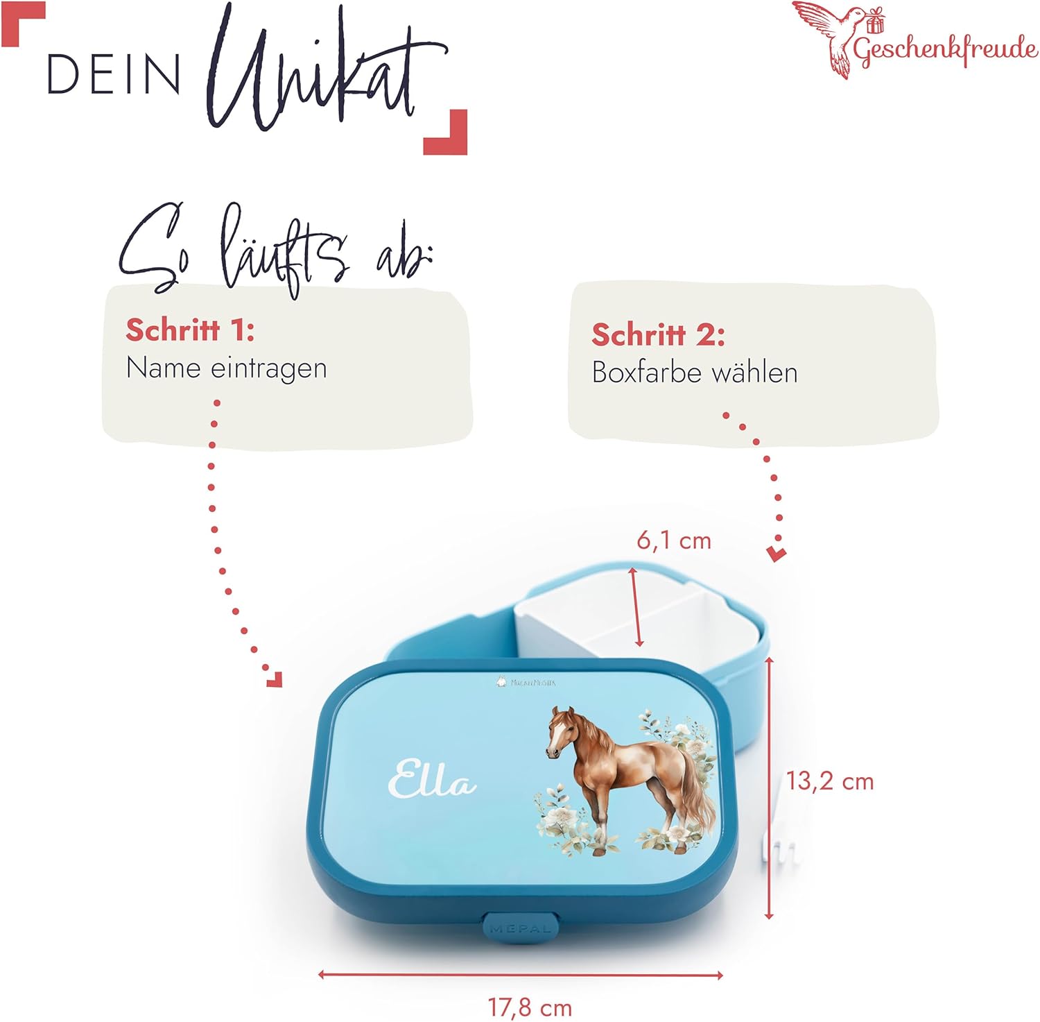 RAGAZZA PORTA PANE: il regalo ideale per tutti gli appassionati di cavalli, il compagno quotidiano per l'equitazione, per le lezioni di equitazione o per trascorrere del tempo nella scuderia. Porta sempre con te i tuoi snack preferiti! BENTO BOX PER BAMBINE: Il portapranzo per bambine per la scuola, l'asilo o la scuola può essere personalizzato da te con un nome univoco. Un portapranzo distintivo per la vita quotidiana del bambino. LAVABILE IN LAVASTOVIGLIE: la stampa all'avanguardia ti consente di pulire rapidamente e facilmente il nostro contenitore per il pranzo Bento Box personalizzato in lavastoviglie. VESSEL BOX CON DIVISORI: Pratico portapranzo Bento Box con inserto Bento e forchetta salvaspazio. Con 750 ml il contenitore per il pranzo offre spazio sufficiente per pane, frutta, verdura o snack. TROVATO: Probabilmente hai cercato "portapranzo personalizzato", "portapranzo per bambini", "portapane per bambini", "cavaliere regalo", "portapranzo con nome", "portapranzo con nome", "portapranzo per cavalli" o "portapranzo per bambini". Allora abbiamo il regalo ideale per le cavalline.