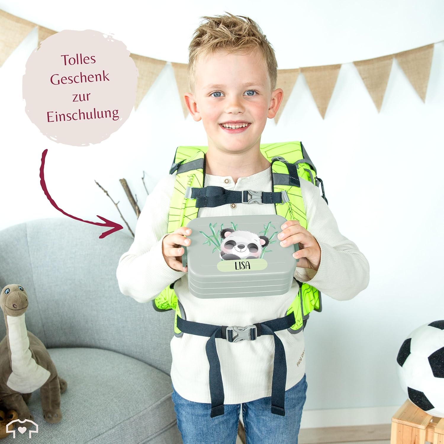 Inserti Bento e forchetta snack: Il contenitore per il pranzo Bento ha due diversi inserti Bento che consentono di separare cibo e snack. Grazie alla pratica forchetta snack, mangiare in viaggio è particolarmente semplice e soprattutto igienico. Questo rende il bento box ideale come compagno durante le vacanze scolastiche o quando hai fame, non importa se sei in viaggio, a scuola o all'asilo. Spazio sufficiente: questo fantastico contenitore per il pranzo con stampa offre spazio sufficiente per un massimo di quattro panini o altri piccoli snack, come verdure tritate o frutti di bosco. Questo lo rende ideale per un pasto abbondante ed equilibrato durante le vacanze scolastiche o all'asilo. Grazie alla fantastica stampa a motivi potrete regalare ai vostri piccoli un regalo davvero speciale! Lavabile in lavastoviglie: la pulizia della bento box può essere facilmente eseguita in lavastoviglie. Anche il materiale della lattina stampata è privo di BPA. Ciò significa che il contenitore per il pranzo è privo di sostanze chimiche nocive. Ciò significa che puoi goderti lo spuntino della pausa senza preoccupazioni e nulla ostacola un utilizzo sano e sicuro. Ideale per la scuola e l'asilo: il contenitore per il pranzo Bento con una bellissima stampa è ideale per il pranzo a scuola o all'asilo. La lattina è compatta e facile da trasportare. I vari inserti bento permettono inoltre al tuo bambino di gustare un pasto vario e sano. Varietà di snack: i due inserti bento di cui è dotata la bento box offrono un'ampia varietà di possibilità di utilizzo del lunch box. Pezzi di mela, frutti di bosco, ecc. possono essere conservati separatamente nei propri scomparti oppure è possibile rimuovere gli inserti per avere più spazio per il pranzo. Non importa come usi il portapranzo: il cibo rimane sempre fresco e appetitoso.
