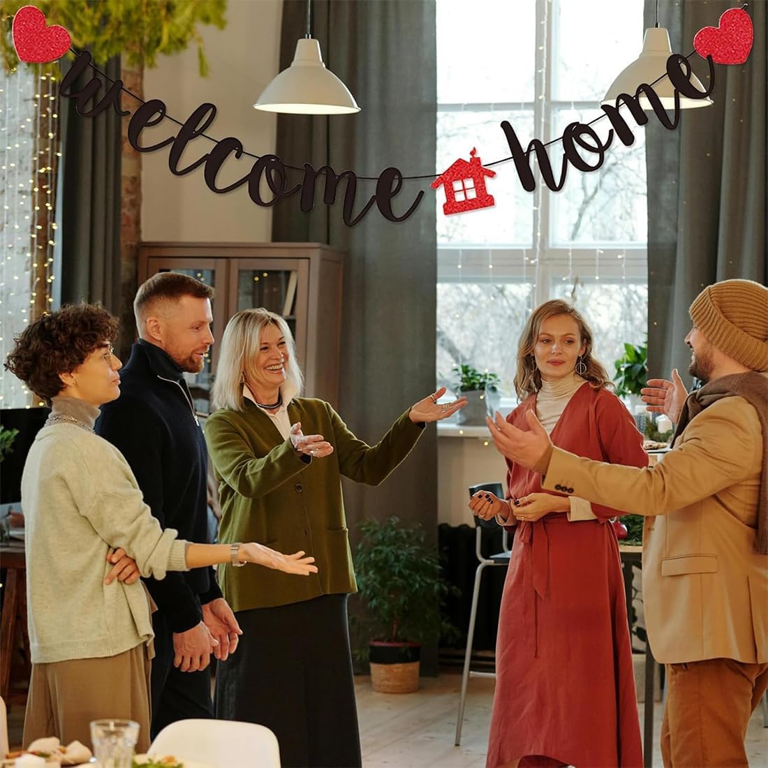 Design accogliente: la scritta “welcome home” abbinata a un cuore e alla forma di una casetta trasmette un'atmosfera calda e accogliente, aggiungendo un tocco di cerimonia alla scena di benvenuto, adatta a riunioni di famiglia, ritorni a casa di amici e parenti e altre occasioni. Materiali di alta qualità: realizzato in cartoncino lucido di alta qualità, ha una buona consistenza, è resistente e l'effetto lucido ne aumenta l'attrattiva visiva. Una volta appeso, mostra tutta la sua raffinatezza, contribuendo a creare una scena decorativa di alta qualità. Facile da appendere: design a catena, non richiede installazioni complesse, si appende facilmente a pareti, telai di porte e altre superfici, creando rapidamente l'atmosfera desiderata e risparmiando tempo ed energie. Dimensioni adeguate: lunghezza totale 150 cm, font e decorazioni di dimensioni coordinate, non occupa troppo spazio e mostra chiaramente il tema, adatto a diverse esigenze di decorazione di spazi interni ed esterni. Ambienti versatili: adatto a vari scenari di “benvenuto a casa”, come riunioni familiari, ritorno a casa dei militari, traslochi in una nuova casa, ecc. Può anche essere utilizzato come sfondo fotografico per aumentare il calore e la narratività dell'immagine.