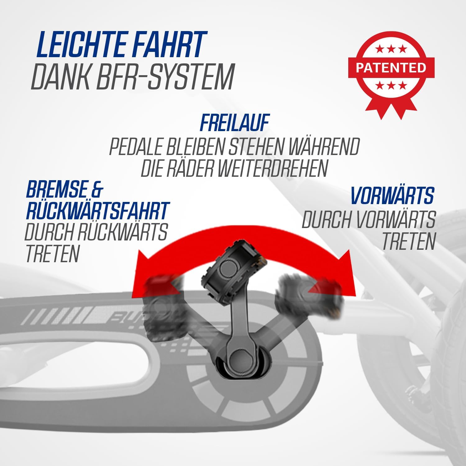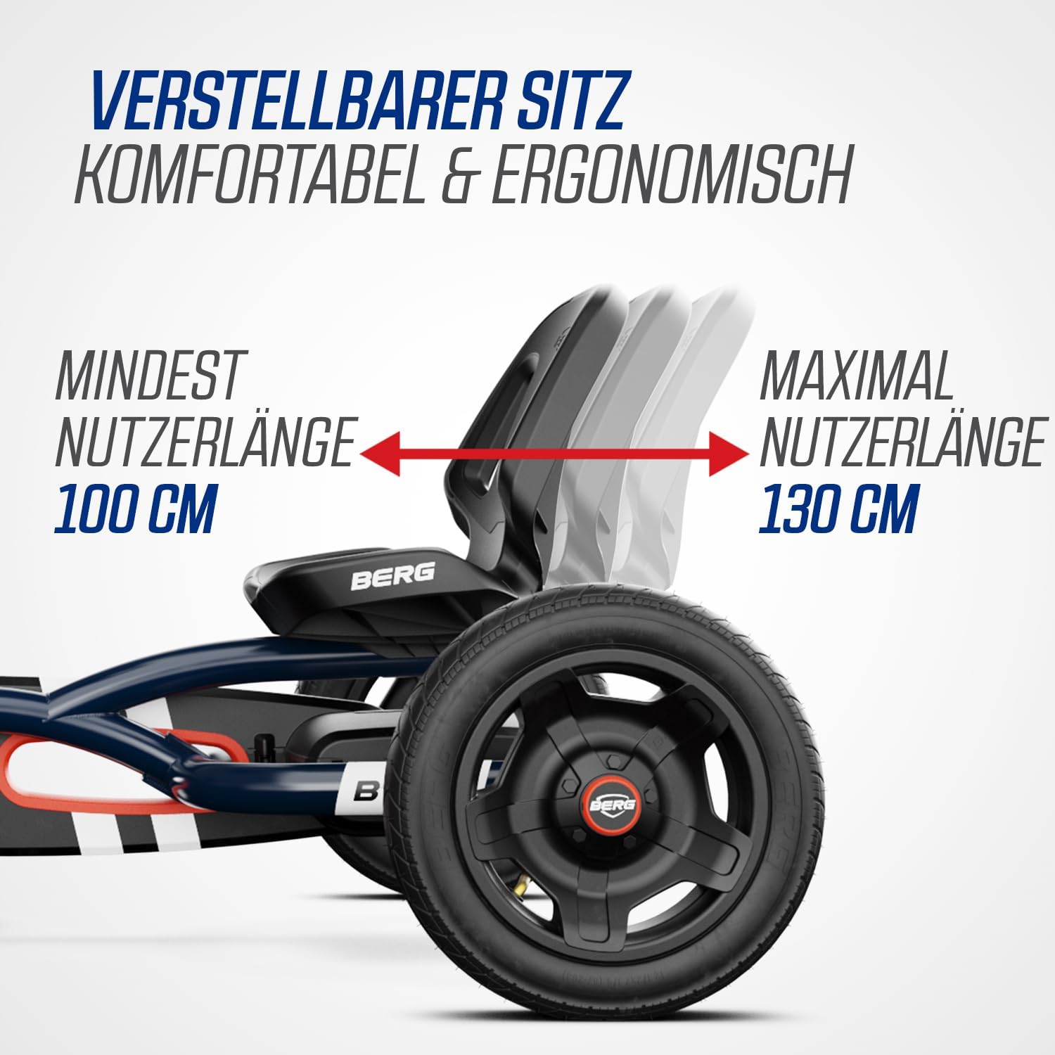 Design iconico: ispirato al primo go-kart BERG con dettagli blu e rossi. Massimo comfort di guida: i pneumatici e l'asse oscillante garantiscono corse fluide e stabili. Cresce con te: sedile regolabile per anni di divertimento! Guida e frenata intuitive con il sistema BFR: frena con i pedali e fa facilmente retromarcia dopo una sosta.