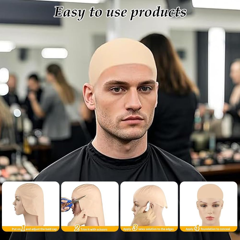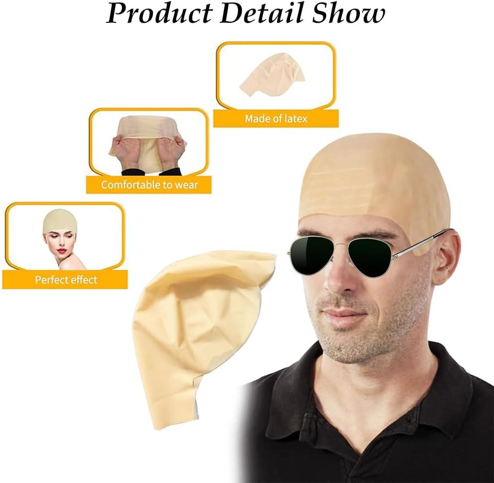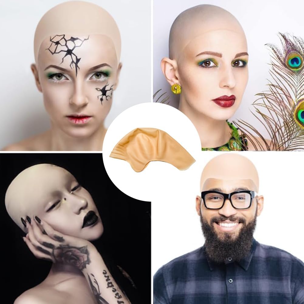 Berretto calvo per abito, cosplay, colore della pelle, parrucca calva per adulti, berretto per testa calva, per uomini e donne