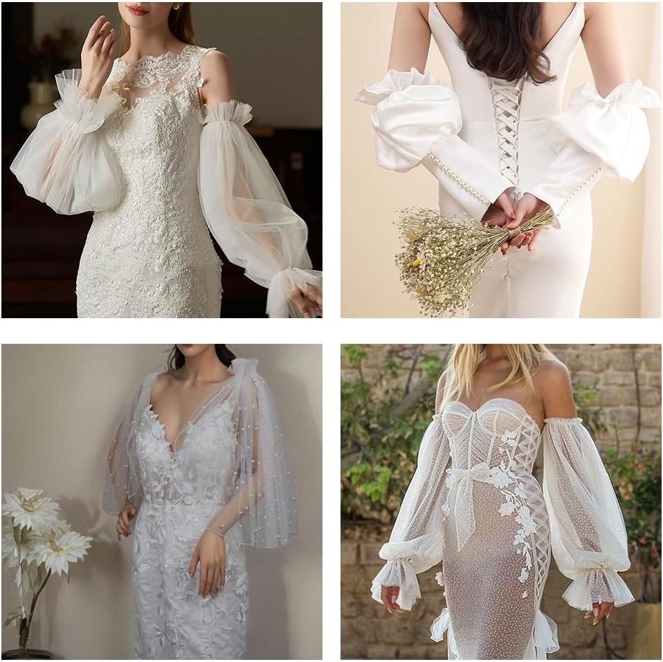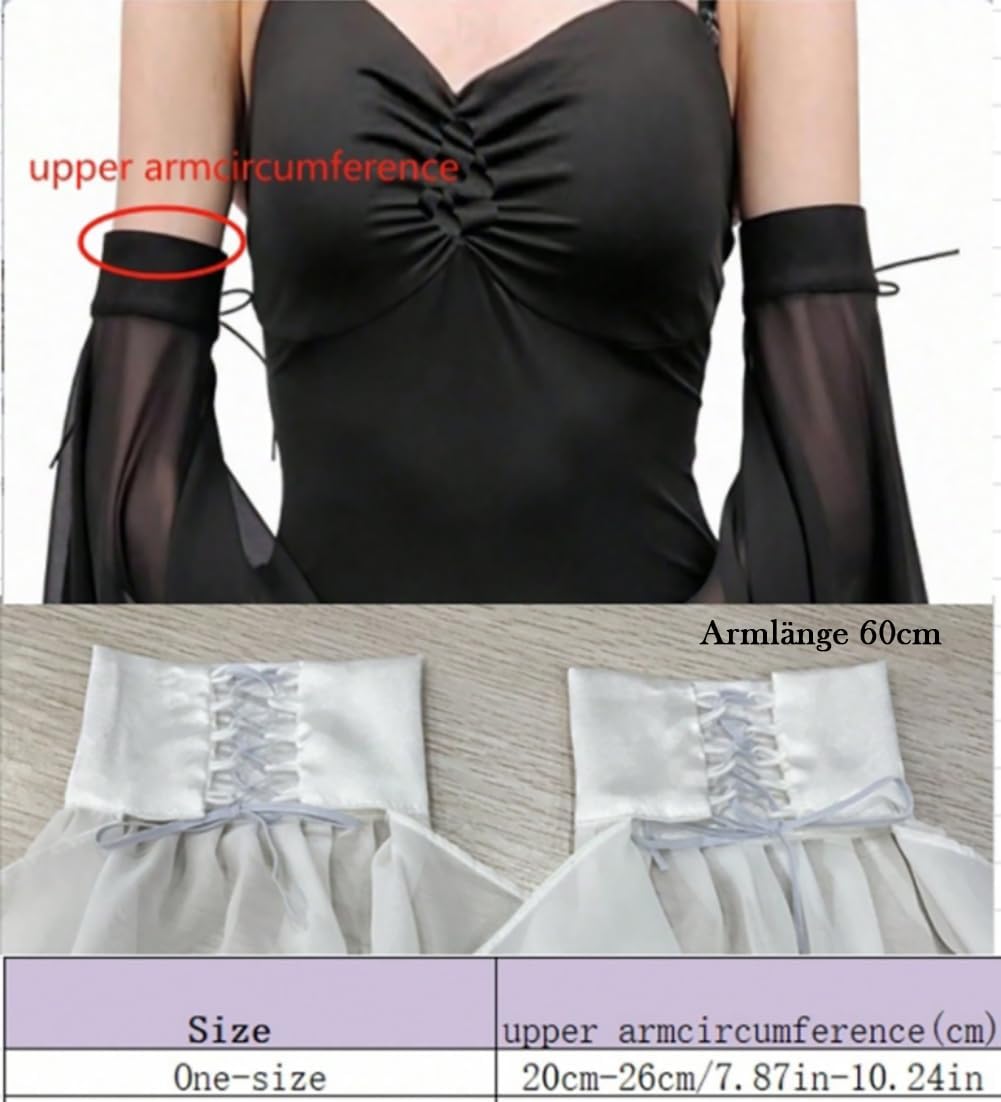 Cuffia in chiffon Materiali di alta qualità: il tessuto chiffon di alta qualità è noto per la sua eleganza e leggerezza, è piacevole sulla pelle e ha una lucentezza discreta. Maniche protettive in chiffon. Taglia unica: è stata progettata in una taglia media che si adatta alla maggior parte delle donne con circonferenza media del braccio. Le maniche sono dotate di una fascia regolabile in modo che si adatti a quasi tutte le donne. Berretto da sposa facile da usare: si può tirare rapidamente e facilmente sul braccio, senza dover sforzare. L'apertura con lacci assicura che la manica si adatti saldamente al braccio e si possa indossare e togliere facilmente e senza danni. Decorazione da sposa versatile: sono ideali per abiti da sposa e completano un design discreto ed elegante. Possono essere indossati anche in occasioni festive come cene o feste, per un look classico e glamour. Protezione in chiffon per le braccia. Il regalo perfetto: sono perfetti come regalo per le damigelle d'onore che cercano qualcosa che completi il loro abito da sposa, o per amici e parenti che cercano un regalo speciale per il loro matrimonio o un'occasione speciale.