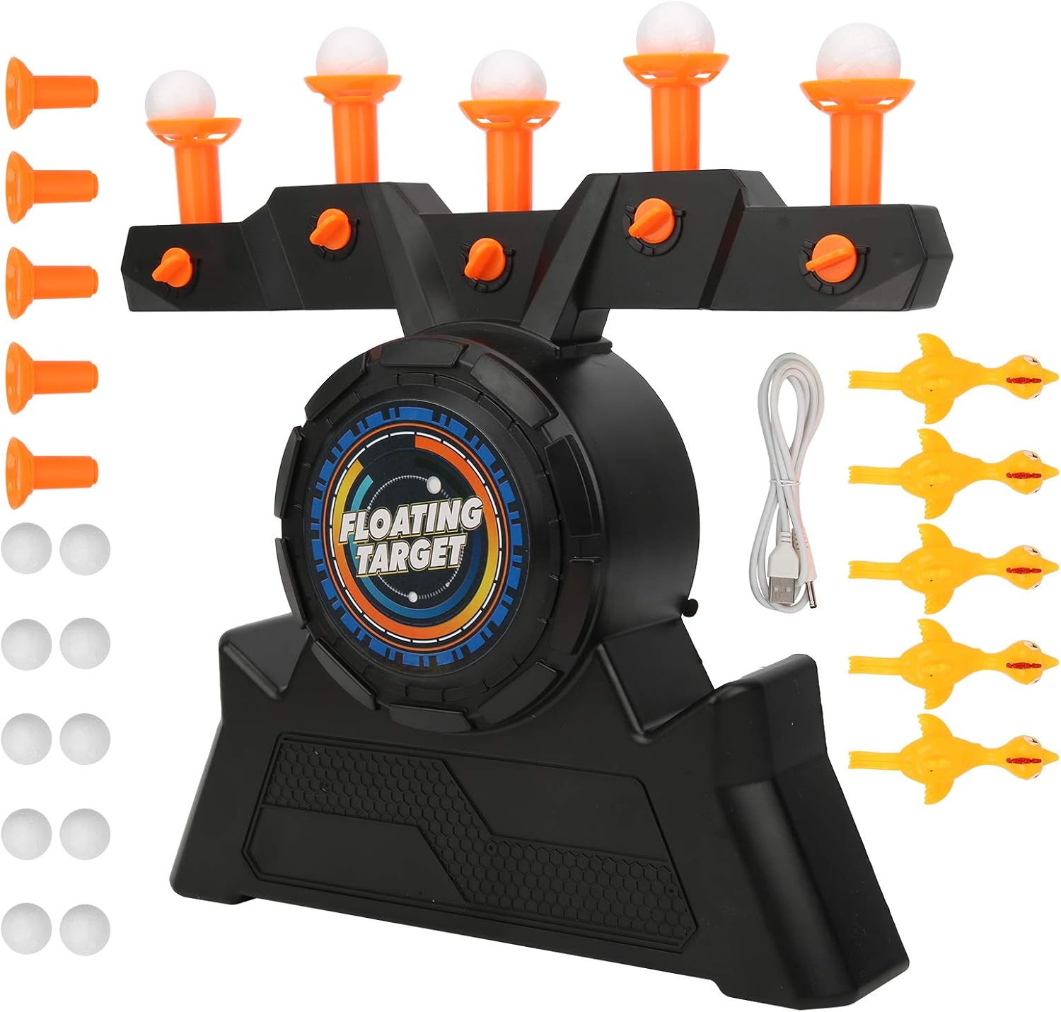 Materia di Qualità e Sicuro per I Bambini: Il Bersaglio da Tiro al Passaggio del Mouse è Realizzato in Materriale Abs Di Alta Qualità, Atossico, Liscio e Rotondo Senza Sbavature. La Sicurezza e il Divrintimento Dei Bambini sono la prima considerazione. Non causerà danni al corpo umano e può essere utilizzato in sicurezza per i bambini di eth superiore a 3 anni DESIGN DEL REGOLABILE: I giocattoli per bambini con bersaglio da tiro a palla galleggiante regolabile possono installare 5 tubi 'aria sul supporto per far galleggiare le palle, e puoi girare la manopola per regolare il flusso d'aria e far galleggiare i bersagli galleggianti più in alto o più in basso per aumentare la difficoltà di tiro al livello successivo Pratica con il bersaglio a Sfera Gallegiante: La Pratica del Gioco con il bersaglio al Volo è un Livello completamentE Nuovo di Diverimento con Bersagli a Palla fluttunti sospesi nulla! Includi Bersglio A Sfera Gallegiante, 5 Fissatori, 10 Palline Di Schium, 5 Trasmettitori a forma di pollO e un Cavo di alimentazione USB. Alimentatore tramite cavo usb o 4 batterie aa (non incluso) Grandi Regali: Il Bersaglio Galleggiate Può Essere Regalato A Ragazzi e Ragazze come Regali di Natale, Ringraziamento, Capodanno, Comprenno. per feste a tema e riunioni di famiglia, aiuta i bambini a sviluppare, intelligenza, memoria e coltivare la creativià! Sicuro per I Bambini e Qualità Garantita: Il Giocattolo Bersaglio Sospeso è ottimo per gicare da o con la famiglia e gli amici; Forniremo un rimborso completo senza alcuna motivazione se non saraite entusiasta di misti bersagli a sfera gallegianti per ragazzi e ragazze