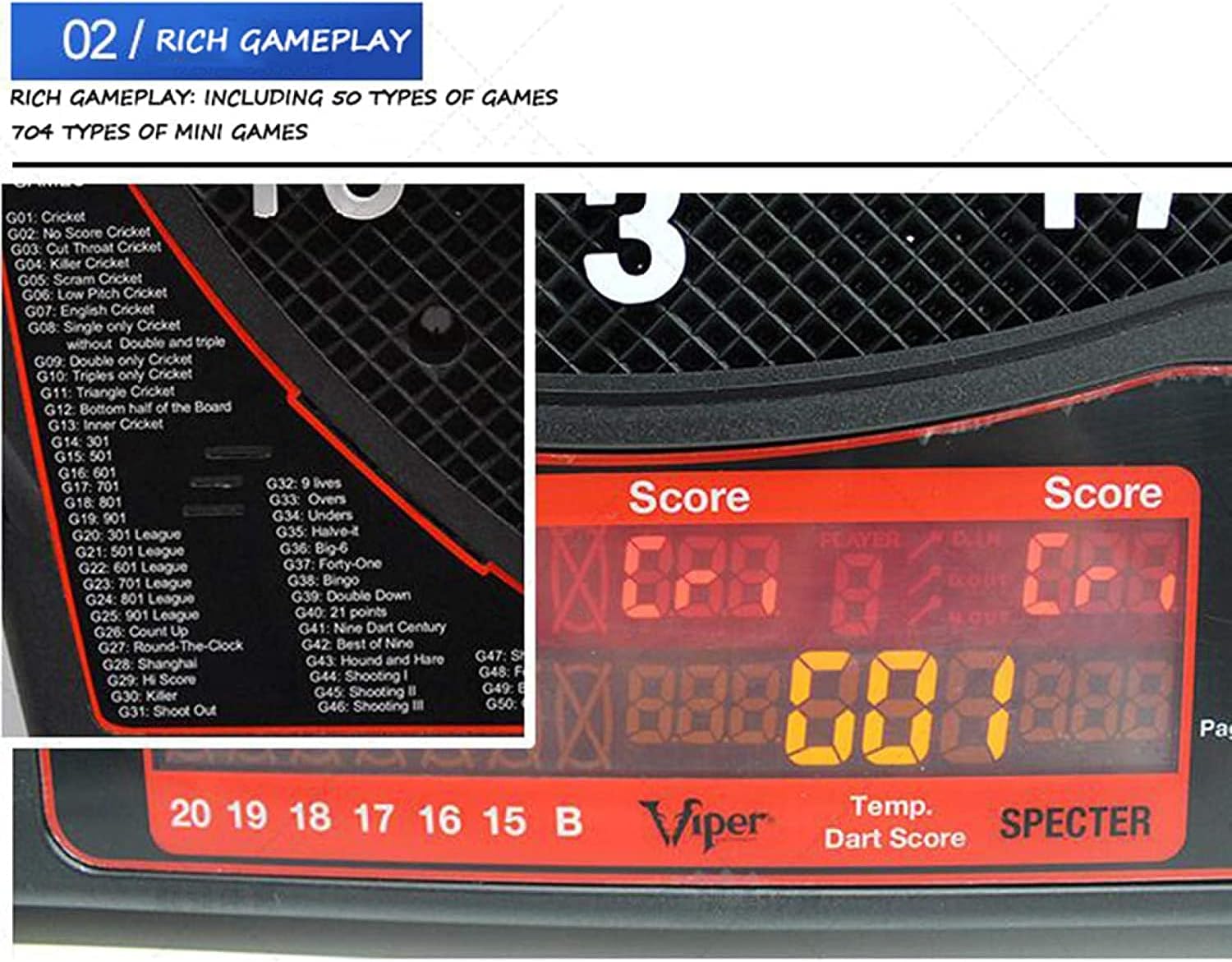 Tabellone segnapunti elettronico for freccette con area bersaglio da 19", ideale sia for feste che for allenamenti, e con punta morbida, che rende questo bersaglio digitale sicuro for bambini e adulti! Bersaglio elettronico for le freccette, I bersagli elettronici for freccette sono dotati di schermi LED, consentono di vedere chiaramente il punteggio anche da lontano, integrano 50 giochi con 704 varianti e possono ospitare fino a 16 giocatori. La superficie ben progettata cattura ogni lancio con precisione, non c'è bisogno di registrare il punteggio e il divertimento aumenta con i giochi integrati. Il bersaglio utilizza un sistema a spirale in acciaio ad alta resistenza, che combina durata e precisione.