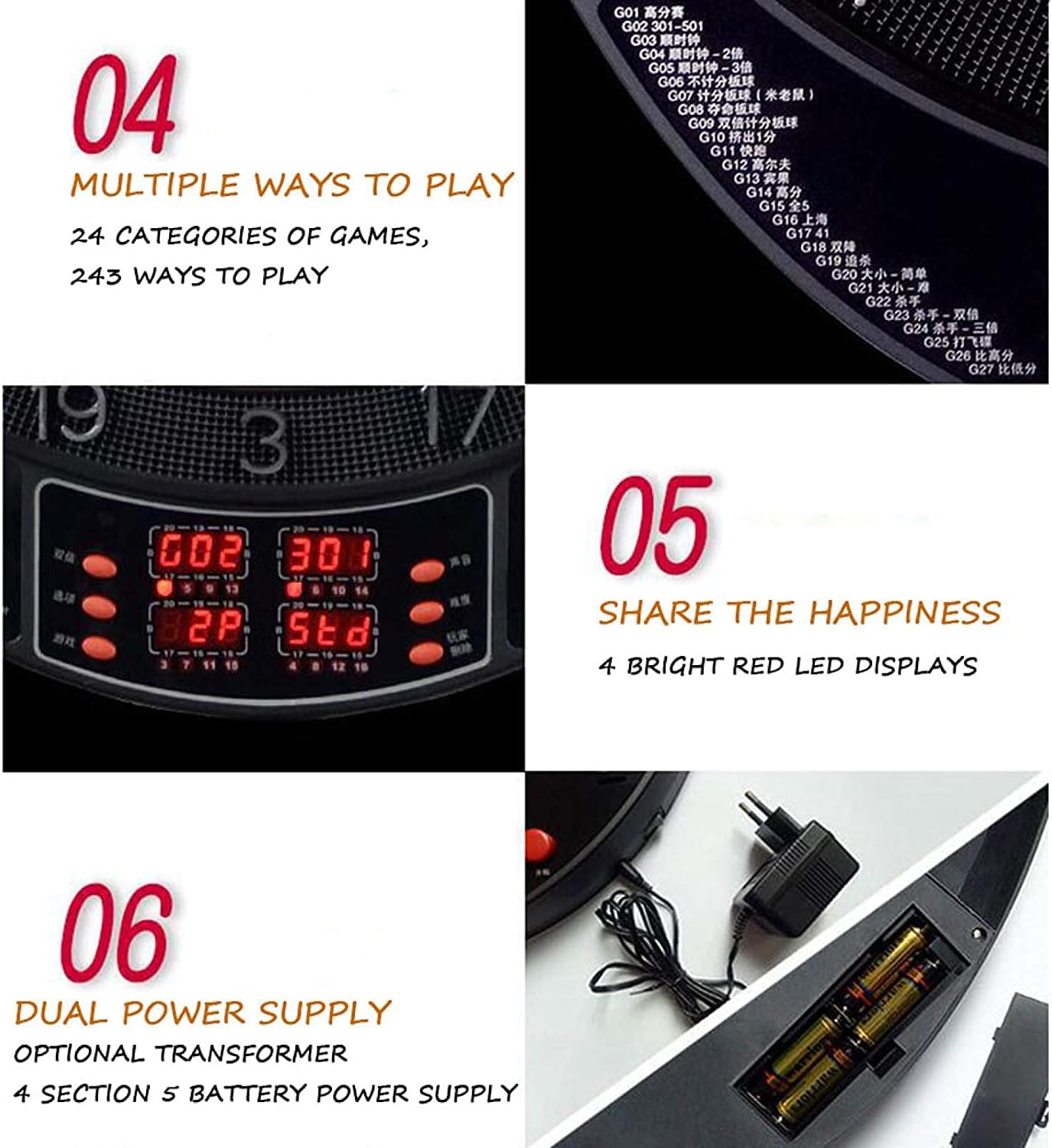 DIMENSIONI STANDARD: Bersaglio for freccette da 19 pollici. Questo set di bersagli for freccette è sicuro for i bambini dai 6 anni in su e molto divertente for adolescenti e adulti. Bersaglio elettronico for le freccette, BERSAGLIO for FRECCETTE: Resistenti e riutilizzabili, più sicure delle tradizionali freccette con punta in acciaio, le freccette con punta morbida non danneggiano la superficie del bersaglio. Garantiscono un'esperienza di gioco eccellente, indipendentemente dall'età o dall'ambiente. E DIVERTIMENTO: Viene fornito con 6 freccette morbide con punta in gomma, che non danneggiano il corpo o i mobili. Il bersaglio è adatto for giocare a casa, in ufficio for ridurre lo stress e for i giochi di società. Il bersaglio utilizza un sistema a spirale in acciaio ad alta resistenza, che combina durata e precisione.