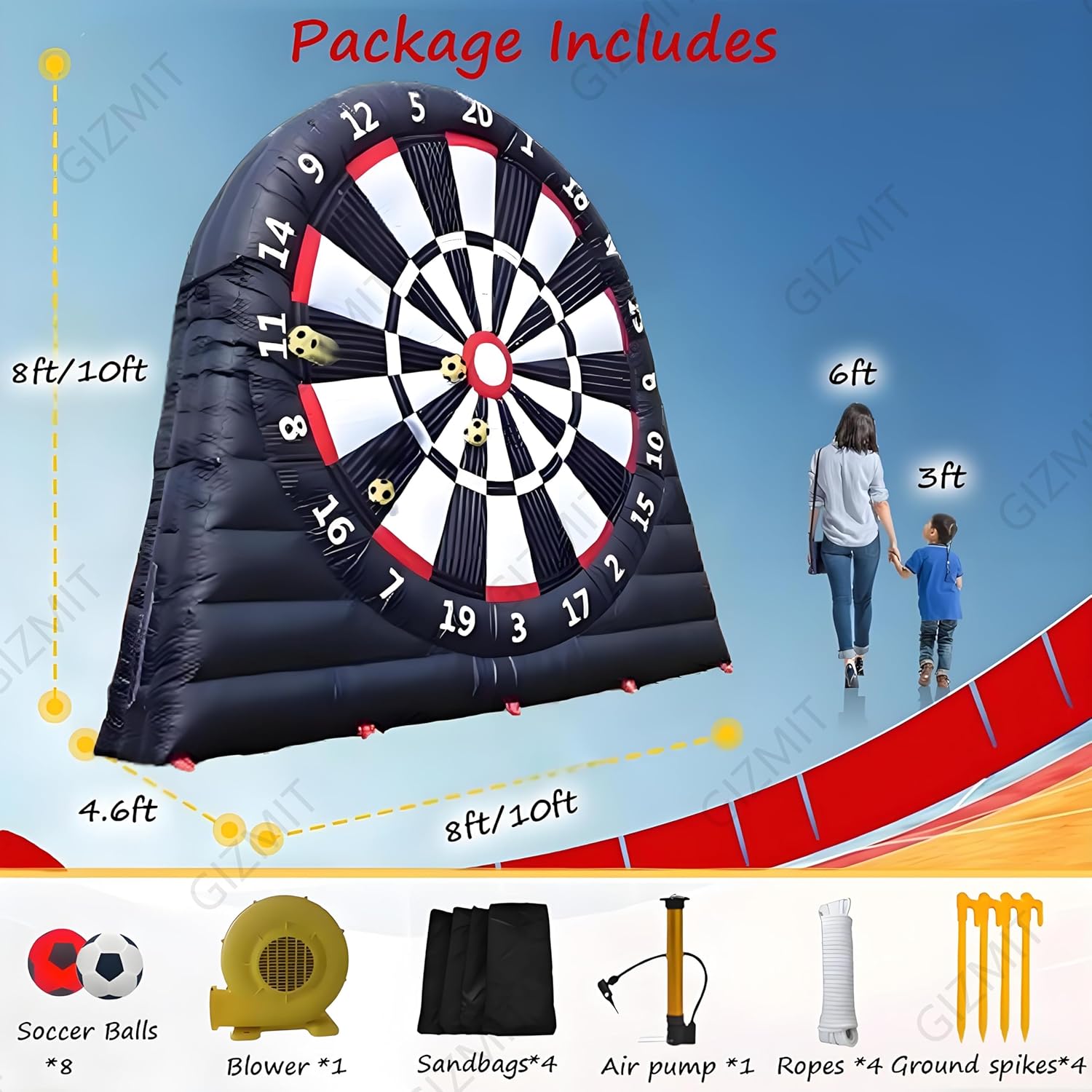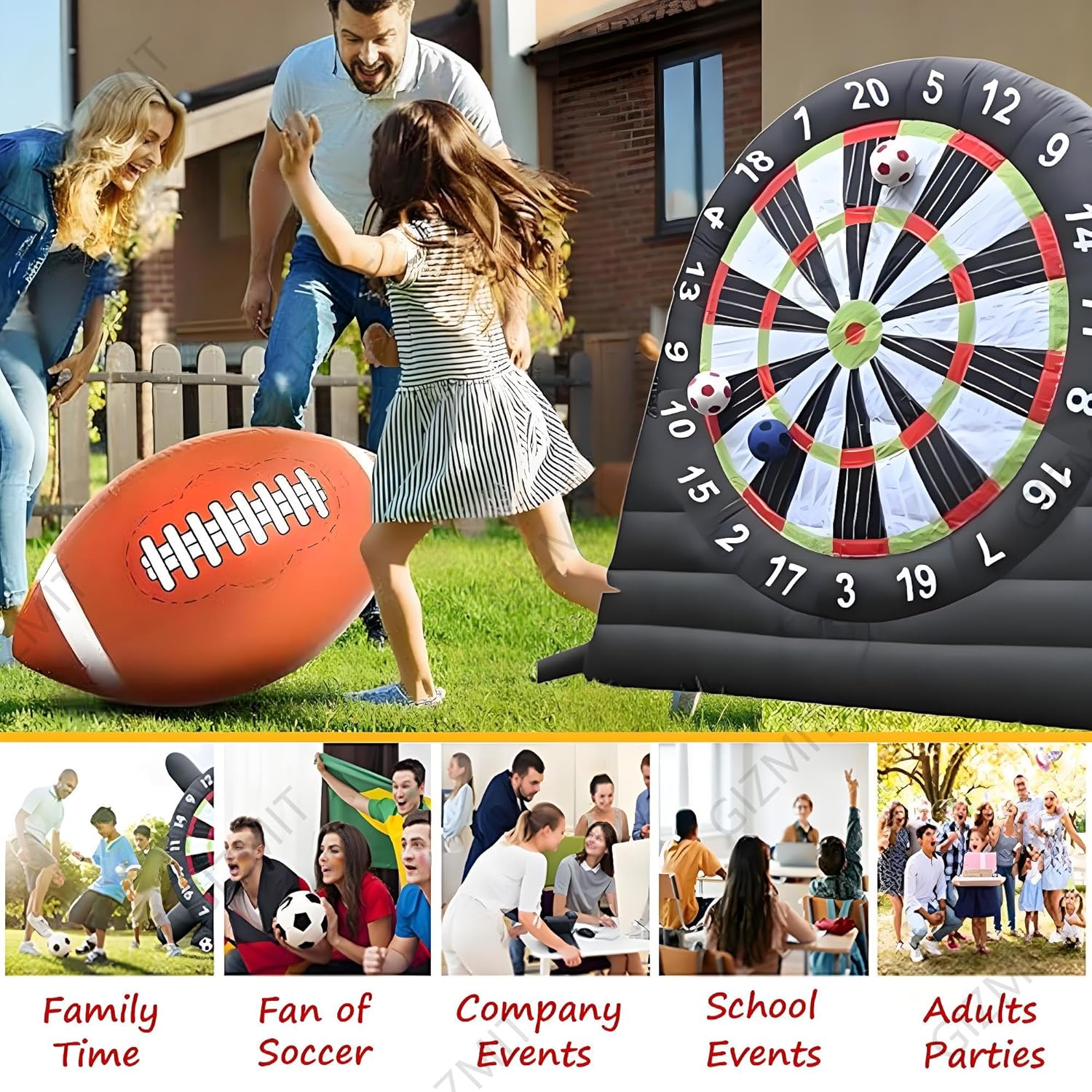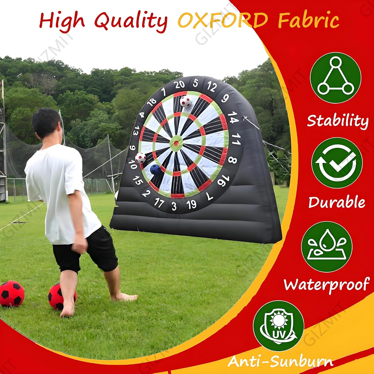 ▲【GONFIAGGIO RAPIDO】: Questo bersaglio gonfiabile per freccette da calcio non richiede lunghi tempi di attesa per il gonfiaggio. Guarda il tuo viso illuminarsi mentre questo gigantesco gioco, alto più di 2,4 metri, si gonfia. Nonostante le sue dimensioni enormi, si gonfia in meno di 5 minuti! (Nota: è necessario continuare a gonfiare durante l'uso) ▲【RICCHI REGALI】: Include 8 palloni da calcio in feltro (colori casuali) e una pompa ad aria. Questo bersaglio gigante da calcio è l'ultimo arrivato tra gli sport, che combina calcio e freccette. La sua forte aderenza e la presa extra rendono facile anche per i giocatori più piccoli staccare il bersaglio. ▲【OLTRE 15 ESPERIENZE DI GIOCO】: Hai finalmente trovato un divertente gioco per attività all'aperto e una scelta perfetta come regalo. Il divertimento non finisce mai con i nostri giochi originali ESCLUSIVI. Il nostro bersaglio gonfiabile per freccette è adatto per Kick Ball, Long Ball, Shoot, D-A-R-T-S, Home Run Derby, Golf, solo per citarne alcuni. ▲【BASE ULTRA-STABILE】: Il gioco Air Ball è realizzato in tessuto Oxford, che può prevenire l'elettricità statica ed è più resistente all'usura. La base del bersaglio gonfiabile per freccette e calcio è stata notevolmente migliorata, quindi non verrà danneggiata nemmeno dai venti forti. Rendi speciale la tua festa con il nostro gioco di calcio gonfiabile, accendi una competizione amichevole, crea ricordi indimenticabili, divertiamoci! ▲【AMPIE APPLICAZIONI】: I bersagli per freccette da esterno sono adatti per gli appassionati di calcio e calcio e per le aziende di noleggio, scuole, giornate in spiaggia, campi estivi, eventi aziendali, gruppi comunitari, feste in giardino e amici e familiari che amano uno stile di vita attivo e promuovono il lavoro di squadra.