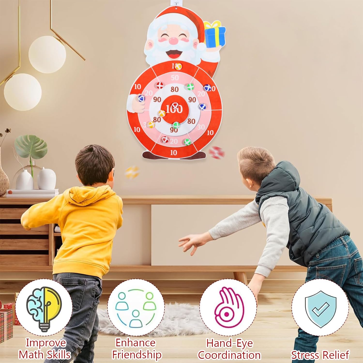 La confezione include: il set include un bersaglio in feltro da 50 x 76 cm con 1 gancio adesivo e 12 palline adesive. Le palline contengono 4 diversi colori, in modo che i bambini possano giocare con i loro amici e trascorrere indimenticabili vacanze di Natale in un'atmosfera piacevole. Design natalizio: il bersaglio mostra una simpatica forma di Babbo Natale con colori vivaci e motivi vivaci che creano una forte atmosfera natalizia, una scelta divertente per feste festive e interazione familiare. Giocattolo di sviluppo: il bersaglio è realizzato in feltro e le piccole sfere appiccicose hanno una chiusura in sulla superficie, che può essere fissata saldamente al bersaglio. I giochi di freccette possono allenare la capacità di coordinazione occhio-mano dei bambini, migliorare la loro concentrazione e velocità di reazione e consentire loro di sfidarsi costantemente nel gioco. Sicuro e divertente: un gioco pasquale sicuro e felice. Le palline e il bersaglio si attaccano insieme e lo rendono più sicuro rispetto alle freccette tradizionali. Questa leggera palla è facile da lanciare e non danneggia pareti o mobili. Scena: il bersaglio di Natale è un gioco di famiglia che combina intrattenimento, interazione e sfida, che non solo migliora il rapporto, ma rende anche il tuo Natale pieno di divertimento e sfida!