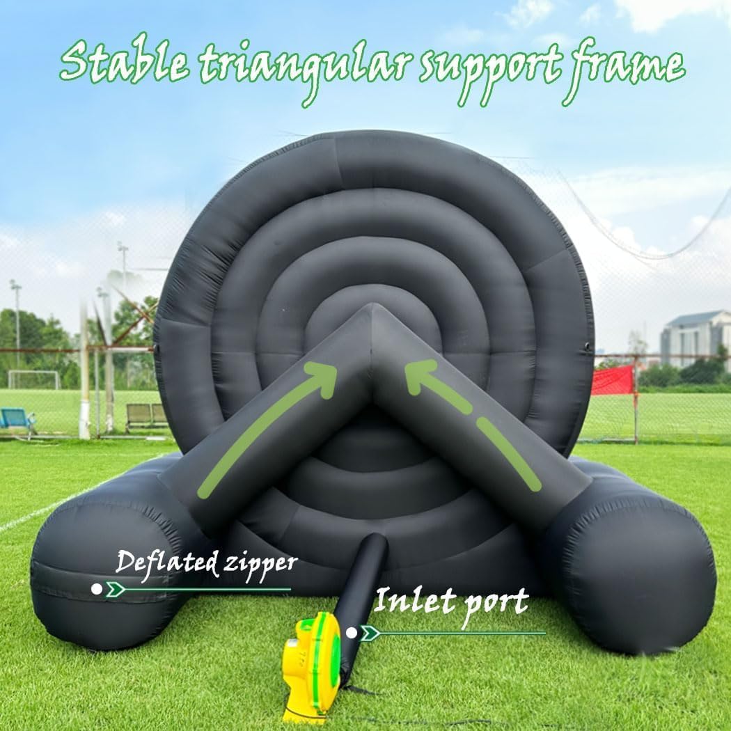 Caratteristiche: pallone da calcio in feltro incluso. Kick Darts è l'ultimo sport per andare dove calcio e freccette sono collegati tra loro. Il bersaglio da calcio di grandi dimensioni è adatto per bambini e adulti; tutti i bersagli gonfiabili con superficie autoadesiva; design gonfiabile per un divertimento morbido e sicuro; calci i palloni da calcio sfocati sull'enorme bersaglio in velcro alto 3 m, molto semplice e molto divertente. Mantieni il punteggio o crea il tuo gioco. Più durevole e stabile: il nostro bersaglio per freccette Dimensioni: 3 x 3,4 m (larghezza x altezza). Il bersaglio gonfiabile è realizzato in tessuto Oxford 210D, può prevenire l'elettricità statica e una maggiore resistenza all'usura. Tutte le giunture delle freccette da calcio sono dotate di tecnologia a doppia cucitura per una migliore tenuta d'aria e durata. Il dardo adotta un design triangolare del telaio, che è più stabile rispetto ad altre freccette. Installazione rapida, facile da riporre: la palla gonfiabile da calcio è facile e comoda da installare in 2 minuti o meno. Ricorda di chiudere la cerniera prima di gonfiarla. Le freccette da calcio lo rendono facile da gonfiare e sgonfiare, piegarle in un piccolo pezzo dopo lo sgonfiaggio per un facile spostamento e conservazione. Tuttavia, ricordarsi di evitare oggetti appuntiti intorno e sollevarli prima di spostarli per evitare l'usura. Applicazione: questa è un'attività fantastica per gli individui che affinano le loro abilità o squadre di giocatori che competono per il miglior punteggio. Che si tratti di trasmettere rivalità familiari o costruire squadre sul posto di lavoro, questo divertimento offre ore di divertimento in cortili, palestre, scuole, festival della comunità o parcheggi aziendali. Accessori completi, basta godere: un soffiatore elettrico, una pompa da calcio, un ago per palloni, un chiodo di terra, corde, panno di riparazione, borsa e sacchi di sabbia.