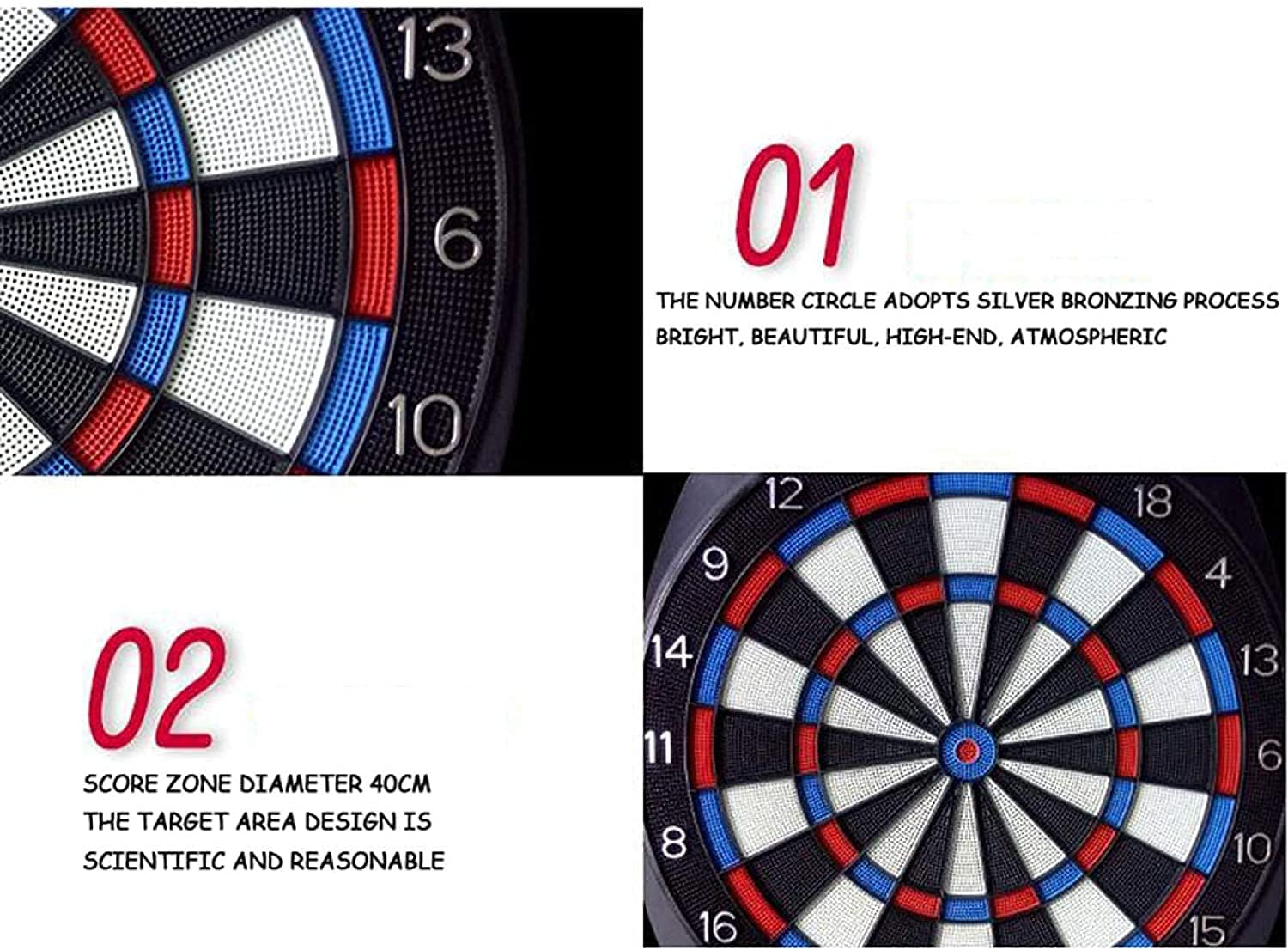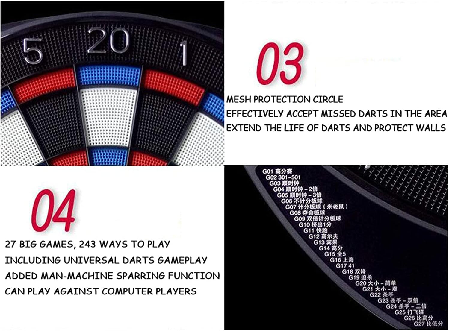 DIMENSIONI STANDARD - Questo set di freccette è sicuro for i bambini dai 6 anni in su e molto divertente for adolescenti e adulti. Bersaglio elettronico for le freccette, E DIVERTENTE - Viene fornito con 6 freccette morbide con punta in gomma, che non danneggiano il corpo o i mobili. Il bersaglio for freccette è adatto for giocare a casa, in ufficio for ridurre lo stress e for i giochi di società. DISPLAY LED - Il luminoso display LED offre una visione nitida e chiara del punteggio, eliminando la registrazione manuale del punteggio, punteggio automatico for ogni segmento, controllo del volume, può soddisfare le diverse esigenze delle persone Il bersaglio utilizza un sistema a spirale in acciaio ad alta resistenza, che combina durata e precisione.
