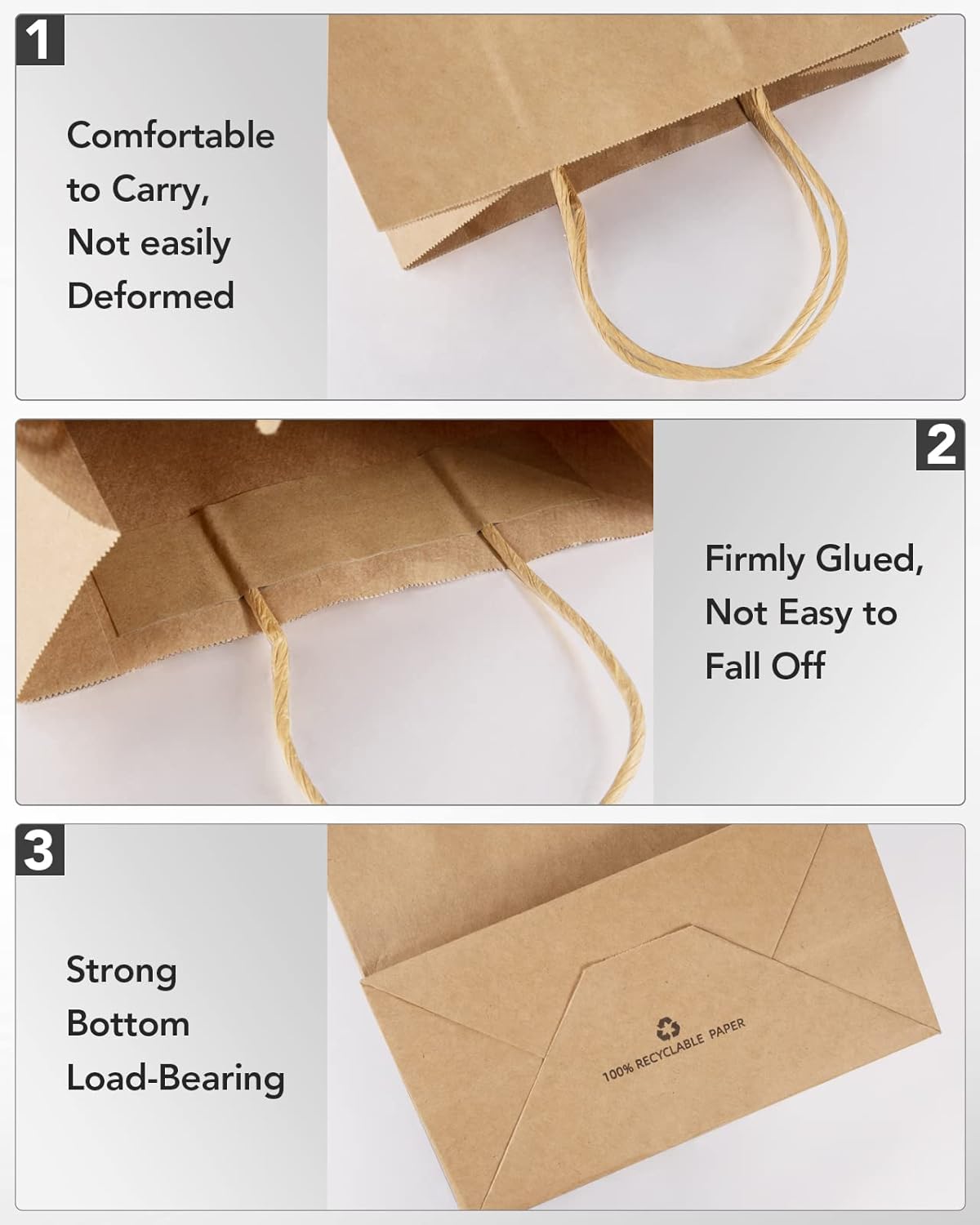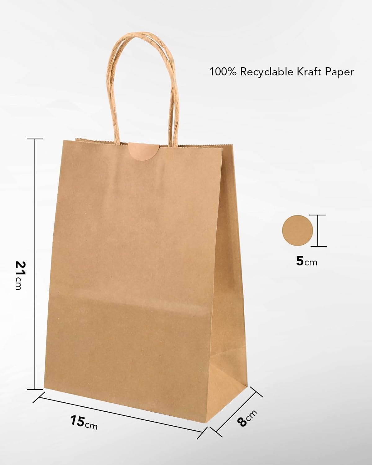 Materiale cartaceo di alta qualità: il sacchetto di carta è realizzato in carta kraft marrone di alta qualità riciclabile e degradabile, fine e liscia, non candeggiante e priva di inquinamento. Forti e durevoli: i sacchetti di carta BESTOST sono spessi, resistenti e non facili da rompere. I sacchetti di compleanno sono realizzati in carta kraft di alta qualità con uno spessore di 130 g per metro quadrato, che è più spessa dei sacchetti di carta con uno spessore di 101 g per metro quadrato sul mercato. Forte legame: il fondo dei sacchetti regalo e la maniglia sono incollati con colla di alta qualità, solida e non facile da staccare. Il sacchetto di carta piccolo può contenere 3 kg, mentre il sacchetto di carta grande può contenere 5 kg. Design portatile della fune di sollevamento: la maniglia di carta ha una consistenza confortevole, non è facile da deformare e non pizzica le mani. Dimensioni del sacchetto regalo: la dimensione del sacchetto regalo è 15 x 8 x 21 cm, totale 40 pezzi. Abbiamo incluso anche 46 adesivi con sigillo di carta. Puoi creare tu stesso delle borsette e decorarle come preferisci per abbinarle al tema della tua festa. Puoi anche stampare il logo della tua azienda o del tuo gruppo sui sacchetti di carta kraft e usarli come sacchetti regalo per le feste. Ampia applicazione: i sacchetti regalo BESCOST sono adatti per feste di compleanno, matrimoni, lauree, Natale, Ringraziamento, Halloween, Natale, anniversari e altre occasioni. Può essere utilizzato anche per contenere caramelle, torte, biscotti e piccole crostate.