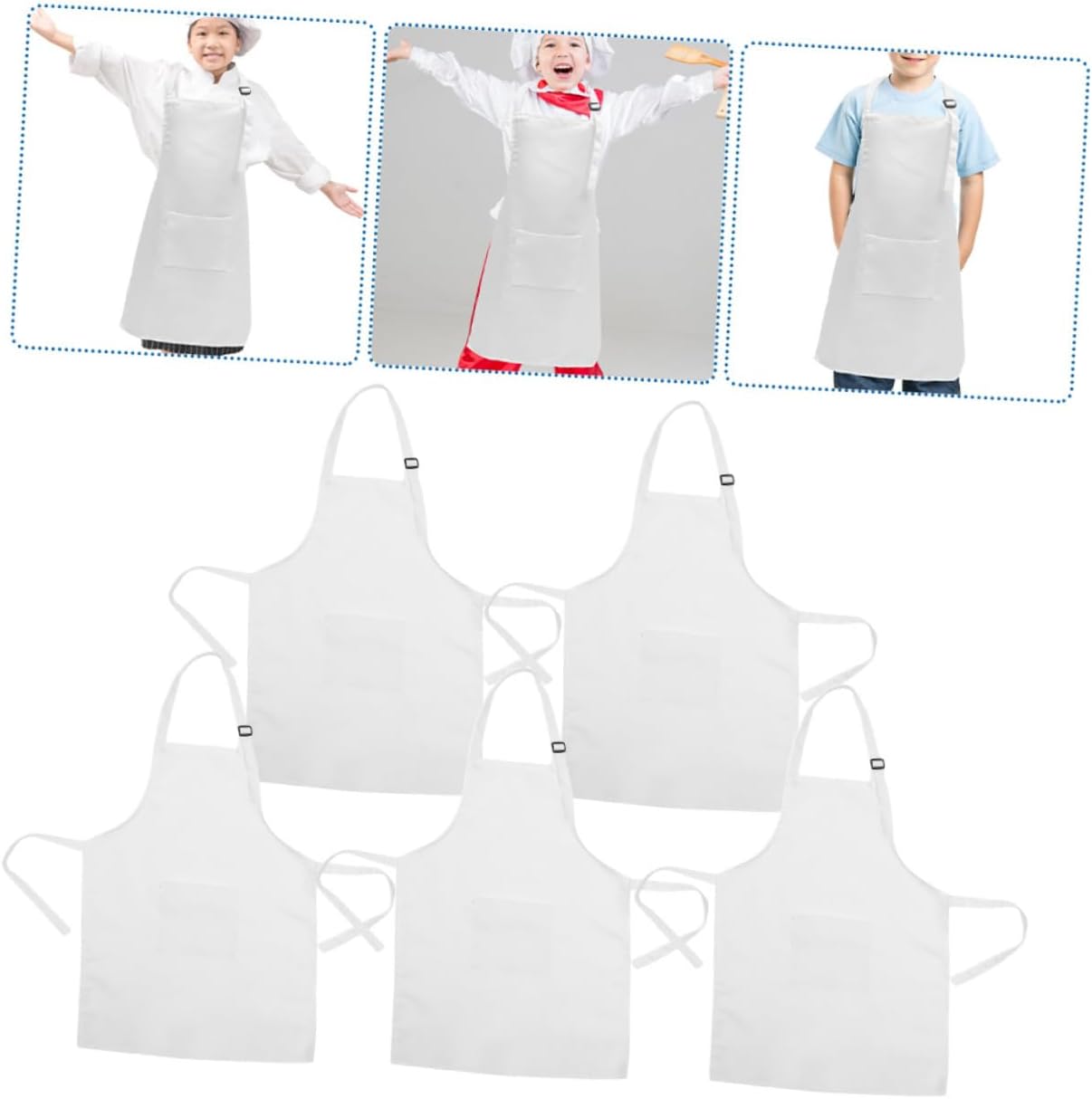 dei pacchetti 5 x piccoli grembiuli Caratteristiche -Materiale: grembiule da pittura per bambini in poliestere -Colore: grembiule da pittura per bambini bianco -Nota: grembiuli da pittura adatti a bambini dagli 8 ai 12 anni. -Dimensioni: 60,00X45,00X0,20 cm/23,58X17,68X0,08 pollici grembiule da pittura per bambini -Realizzati in tessuto, questi grembiuli sono progettati per resistere all'usura tipica dei grembiuli per bambini utilizzati durante le attività di pittura e bricolage. -Questo set include un numero sufficiente di grembiuli piccoli, perfetti per i giovani artisti e un grembiule multifunzione per bambini. -Il colore bianco di questi grembiuli conferisce un aspetto pulito e senza tempo, rendendoli adatti a vari progetti artistici e creativi grembiule portatile per bambini. - Grembiule regolabile in tessuto per bambini per dipingere e fare lavoretti, adatto per età 8-12 anni, disponibile in un versatile colore bianco. -La caratteristica regolabile di questi grembiuli garantisce una vestibilità comoda per i bambini dagli 8 ai 12 anni. Informazioni sulle merci grembiule regolabile per bambini Progettato appositamente per i bambini, farà sì che il tuo bambino lo indossi. grembiule da pittura multifunzione Questo grembiule è in tinta , è traspirante e leggero, facile da pulire, non si stropiccia e non si restringe facilmente. grembiule da pittura per bambini È un eccellente per i bambini in occasione di festività speciali come compleanni, giornate dei bambini, cene, ecc.