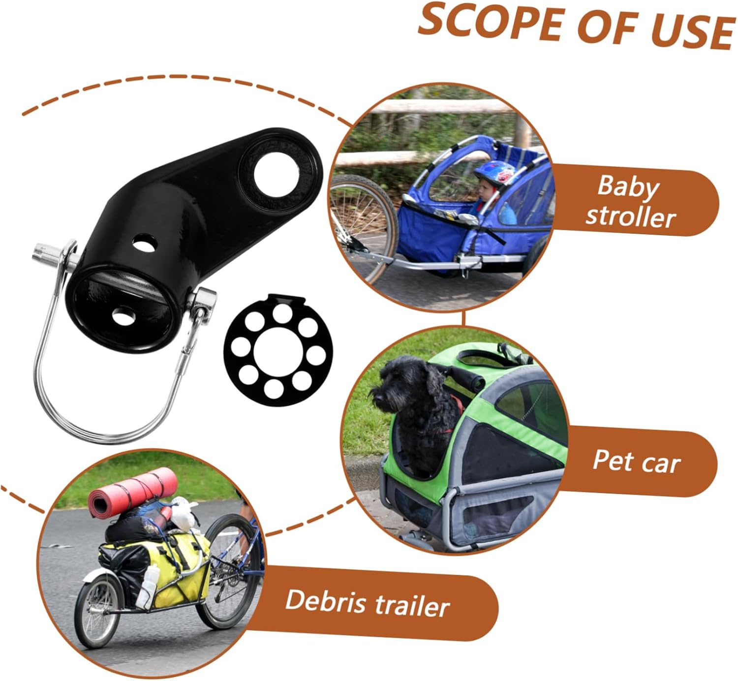 Attrezzo per bicicletta: rimuovendo stringendo un dado è facile allentare l'attacco per rimorchio per bicicletta alla ruota posteriore della bicicletta, accessorio per bicicletta Giunto per rimorchio per bicicletta: l'attacco per rimorchio per bicicletta è robusto, forte e durevole, resistente all'usura e non facile da danneggiare, Attacco per rimorchio per bicicletta Parte per bicicletta: vuoi divertirti all'aria aperta con i tuoi bambini e animali domestici, questo prodotto potrebbe essere la scelta giusta, accoppiatore adattatore per bicicletta Attacco per rimorchio per bicicletta: dopo l'installazione, non cadranno facilmente, il che può garantire la sicurezza del tuo bambino, accessorio per riporre l'adattatore per il montaggio del rimorchio - la lavorazione di questo prodotto è e avrai una buona esperienza nell'usarlo, connettore per rimorchio per bicicletta
