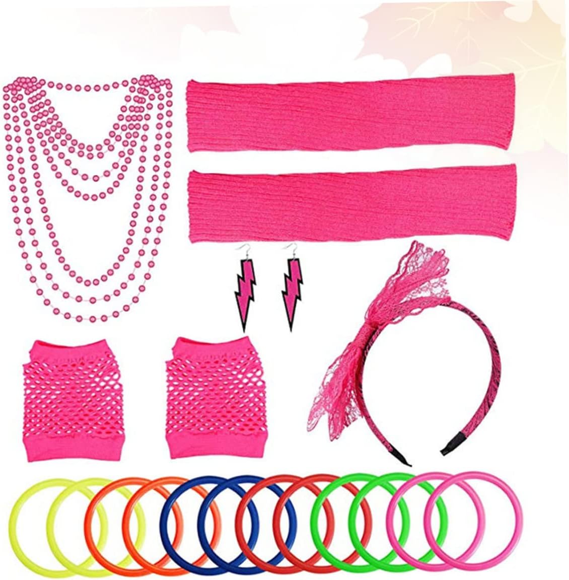 dei pacchetti 2 x Ciondolo 1 x Cerchietto per 1 x Paio di guanti 1 x Paio di orecchini 1 x Paio di manicotti per le gambe 12x Braccialetto Descrizione della merce Manicotti per le gambe da festa - Il design elegante e gradevole ti renderà e attraente. Guanti a rete Un abito così elegante e gradevole ti renderà più accattivante. Caratteristiche dei manicotti per le gambe in rete - Colore: assortiti - Materiale: pizzo, rete e plastica. Guanti da festa Se ti vesti in modo bello e attraente a festival, compleanni, feste o altre occasioni, devi essere felice, ? Questi guanti, manicotti per le gambe, bracciale, collana, orecchini e copricapo soddisferanno le tue esigenze. Ornamento per la festa - Incluso: 2 pendenti, 1 cerchietto per , 1 paio di guanti, 1 paio di orecchini, 1 paio di manicotti per le gambe, 12 braccialetti. Orecchini per feste -, come feste in maschera, compleanni, balli, fotografia, ecc. Accessorio per la festa - Viene fornito con un bellissimo design, bracciale, collana, coprigambe, guanti, orecchini e decorazioni per copricapo, più unici e attraenti. Collana per feste - Dimensioni della confezione: circa 20 x 18 x 3 cm. Cerchietto per per feste - Realizzato in, comodo e resistente per un uso a lungo termine.