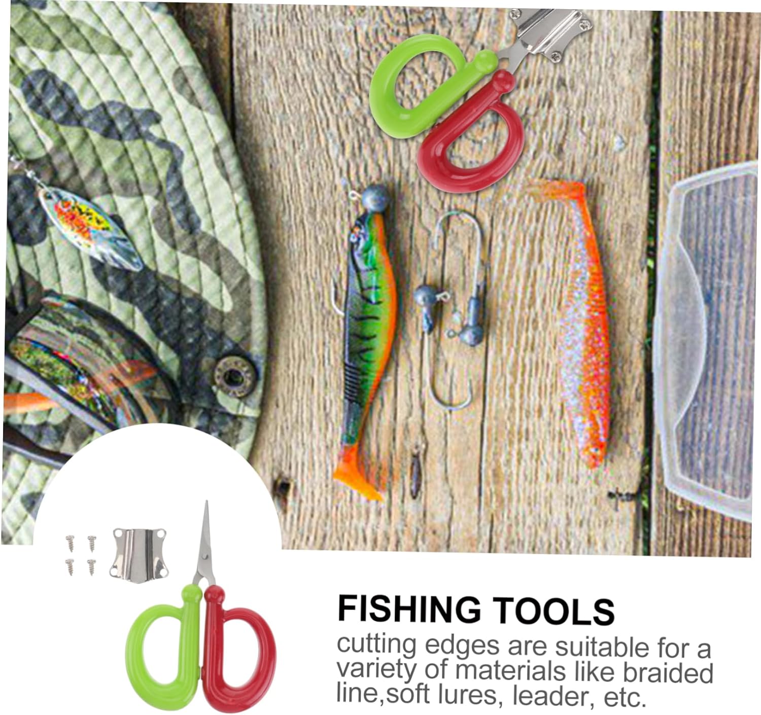 Forbici in acciaio inossidabile: design ambidestro per utenti destrimani e mancini. Forbici galleggianti: i taglienti sono adatti per una varietà di materiali come lenze intrecciate, esche morbide, leader, ecc. Forbici multifunzionali: realizzate in materiale di alta qualità, resistenti e pratiche. Forbici: materiali facili da impugnare grazie al taglio seghettato delle forbici. Piccolo: afferra facilmente i materiali con il bordo seghettato delle forbici.