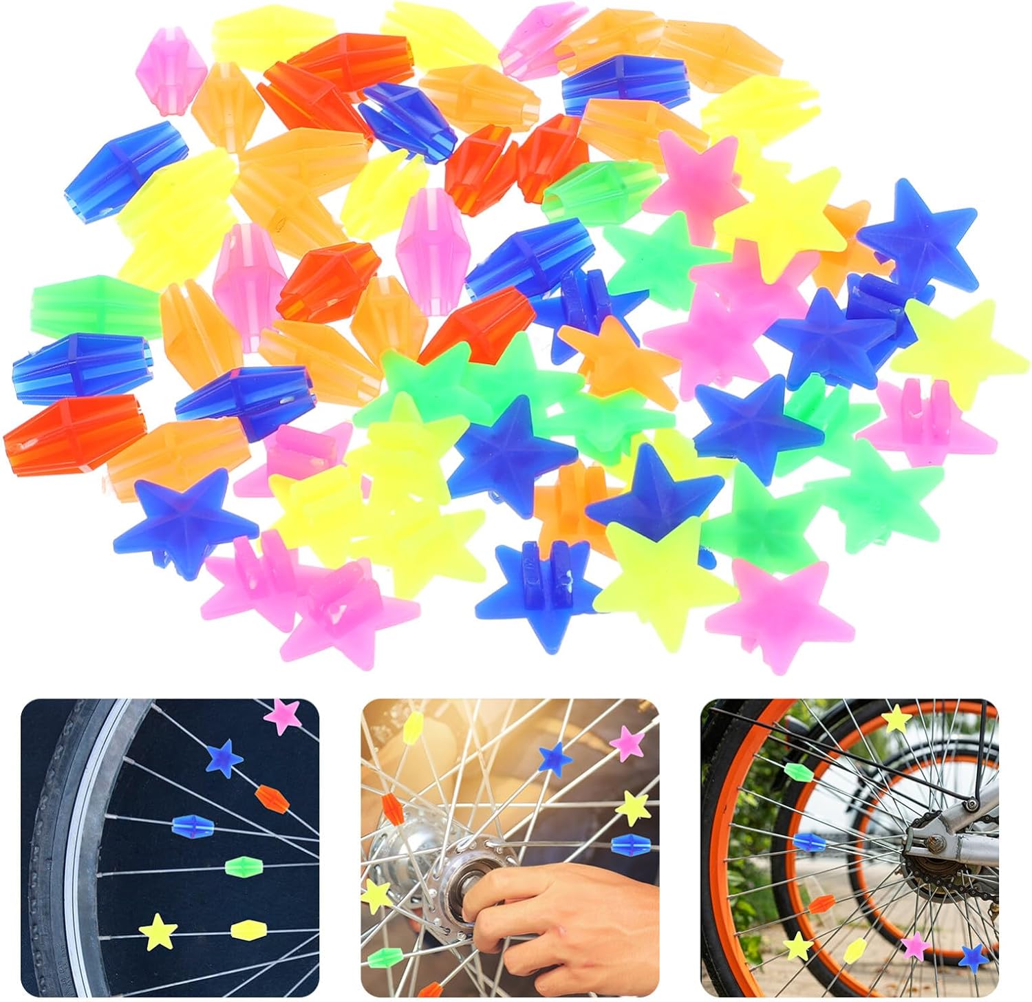 La lavorazione di queste perle a raggi è raffinata, l'attenzione ai dettagli e i bordi delle perle a raggi sono lisci e molto strutturati. Una varietà di colori, le perle a raggi sono semplici ma adorabili, apprezzate dagli adolescenti. Il design creativo e semplice lo renderà più bello e pratico e avrà un'ampia applicazione. I buoni materiali in resina PP lo rendono bello nel design, liscio e confortevole, sicuro e durevole. Con un buon effetto decorativo, può rendere la tua bicicletta più bella e bella.